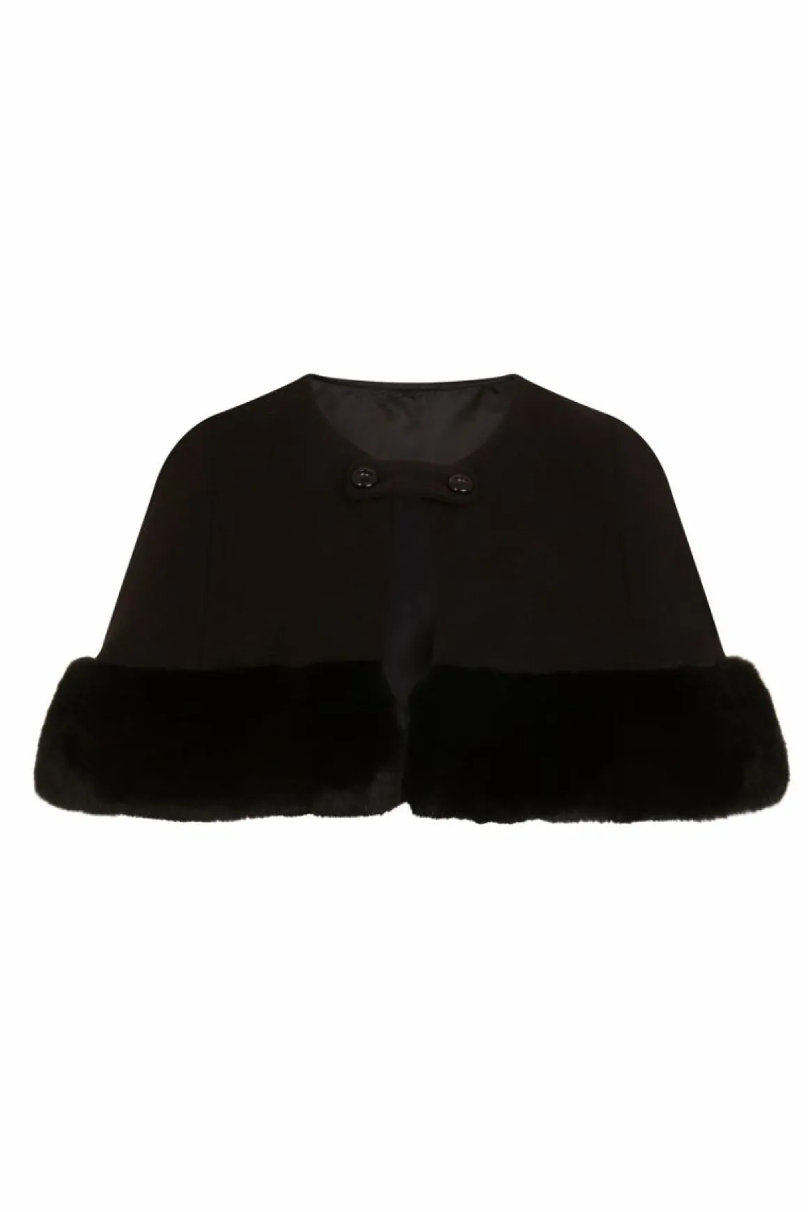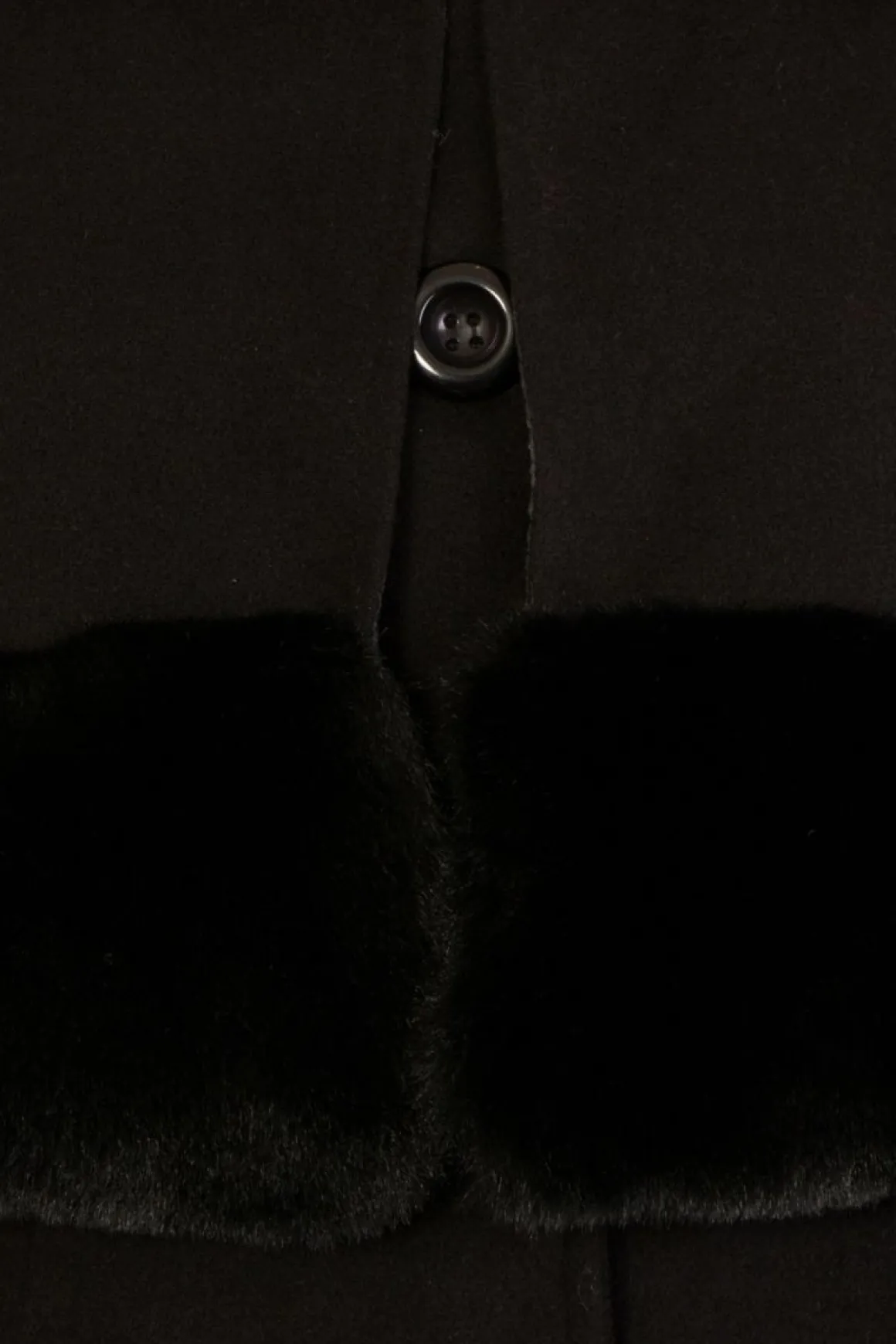 - Black Coat With Short Faux Fur Trims & Detachable Cape