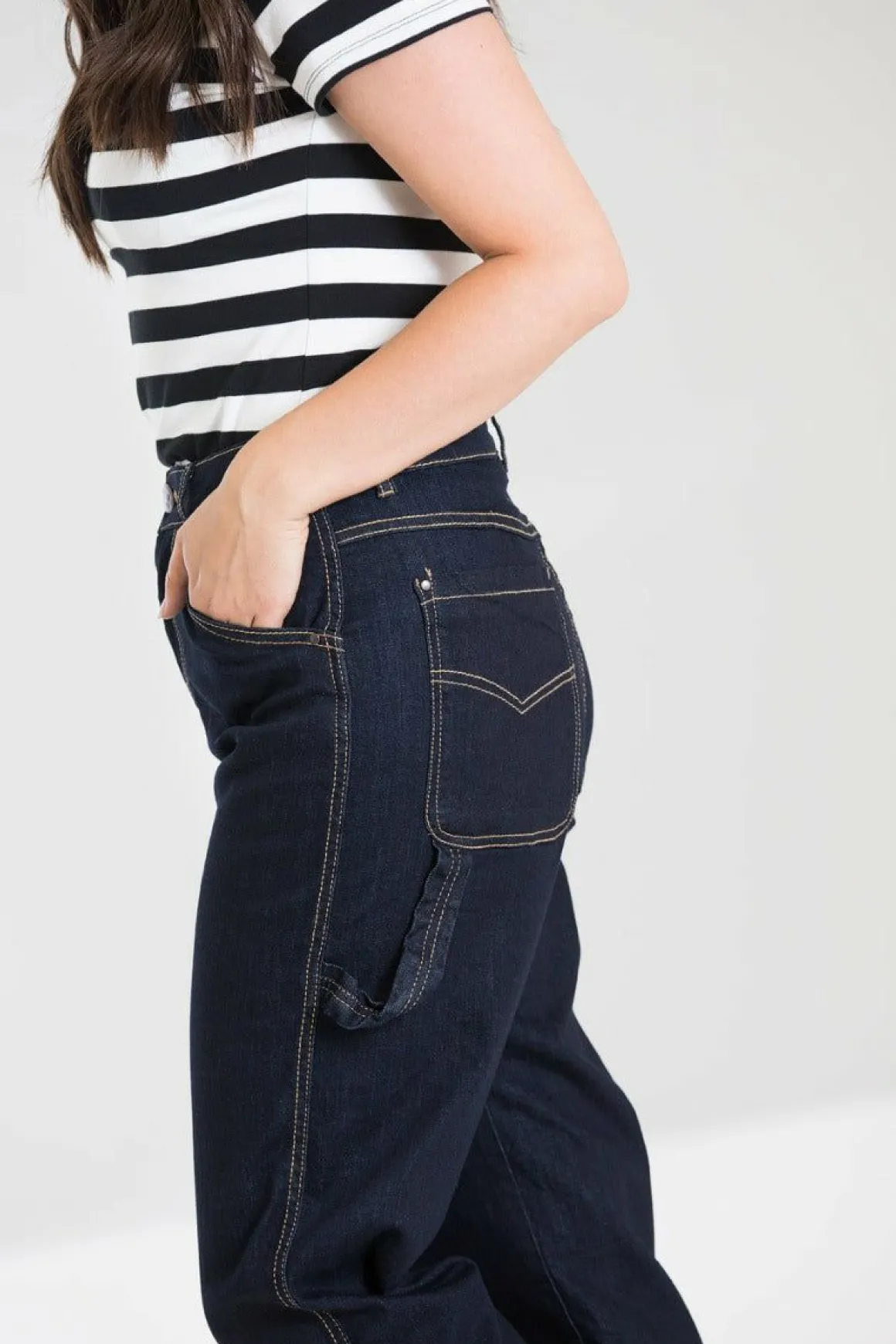 Stretch Denim.Decorative Hammer Loop.Embossed Button On The Waistband.Waistband In Self Fabric.High Waisted.Concealed Fl…