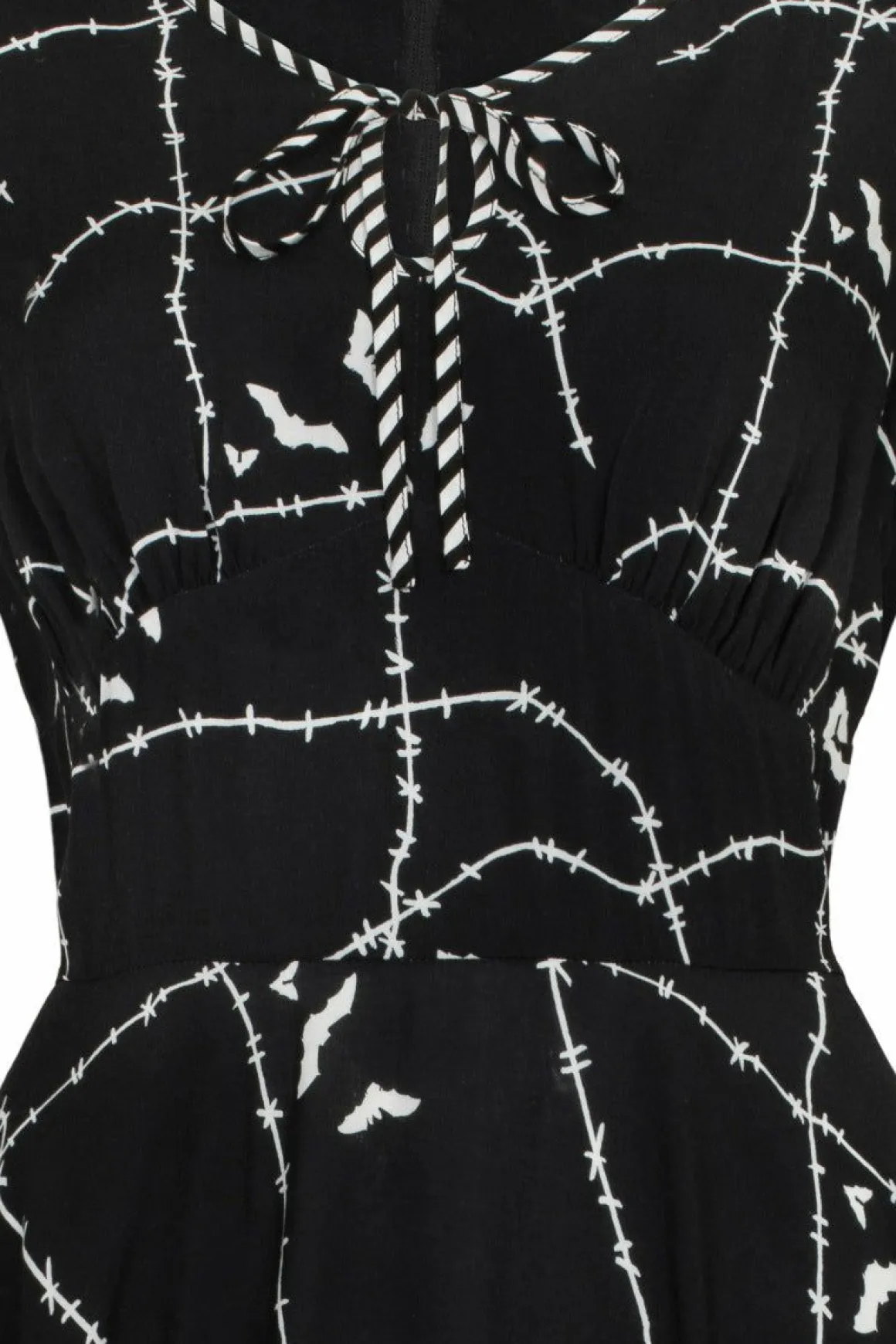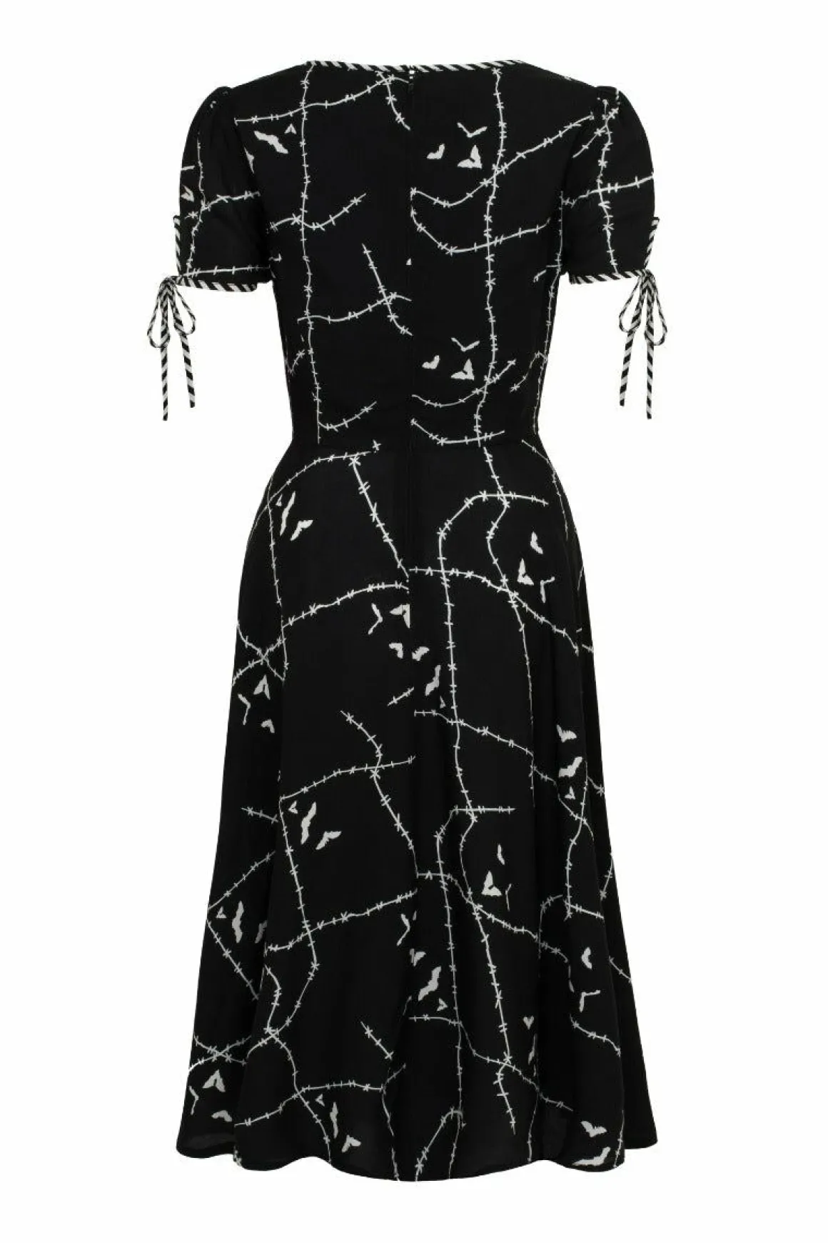 Viscose Printed Midi DressBlack Base Wih White Stitches And Bats Printed All OverV NecklineKeyhole Detail On ChestContra…