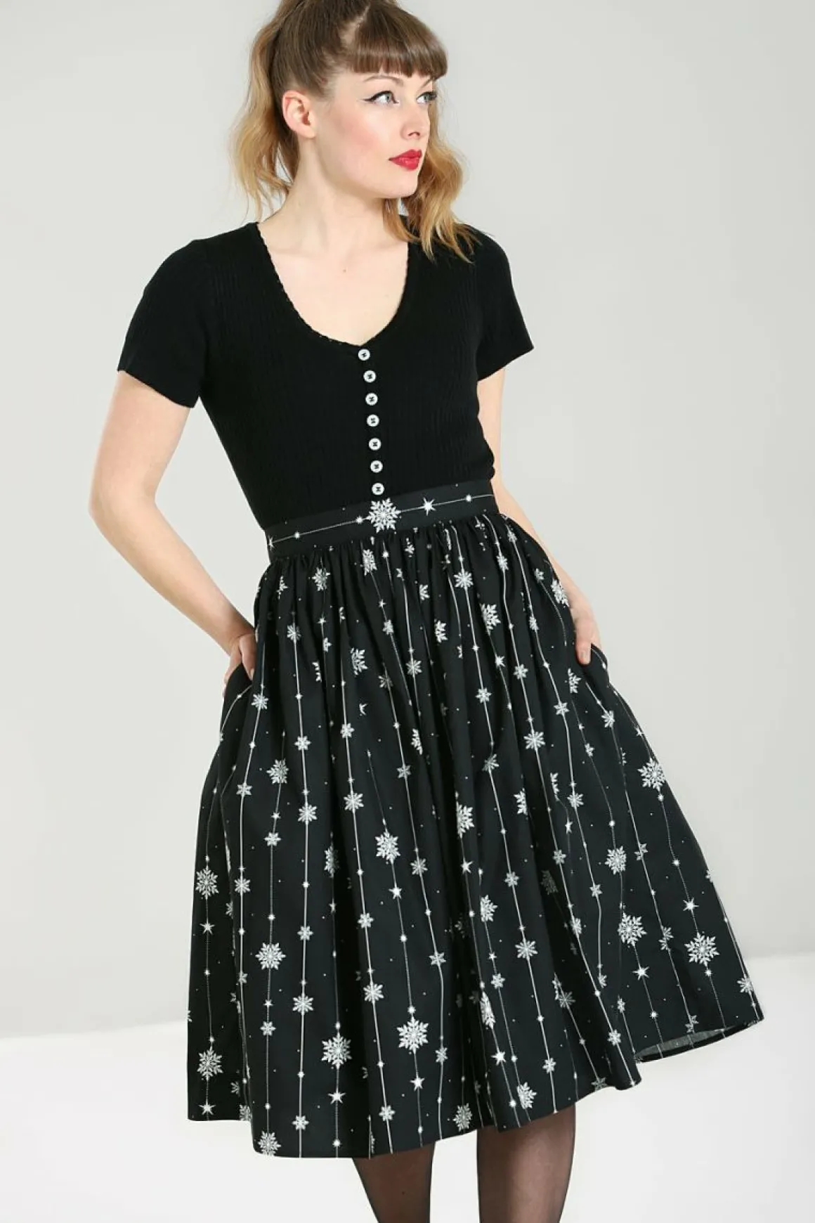 - Black Vintage Style 50’S Skirt Decorated With White Snowflakes, Stars And Stripes