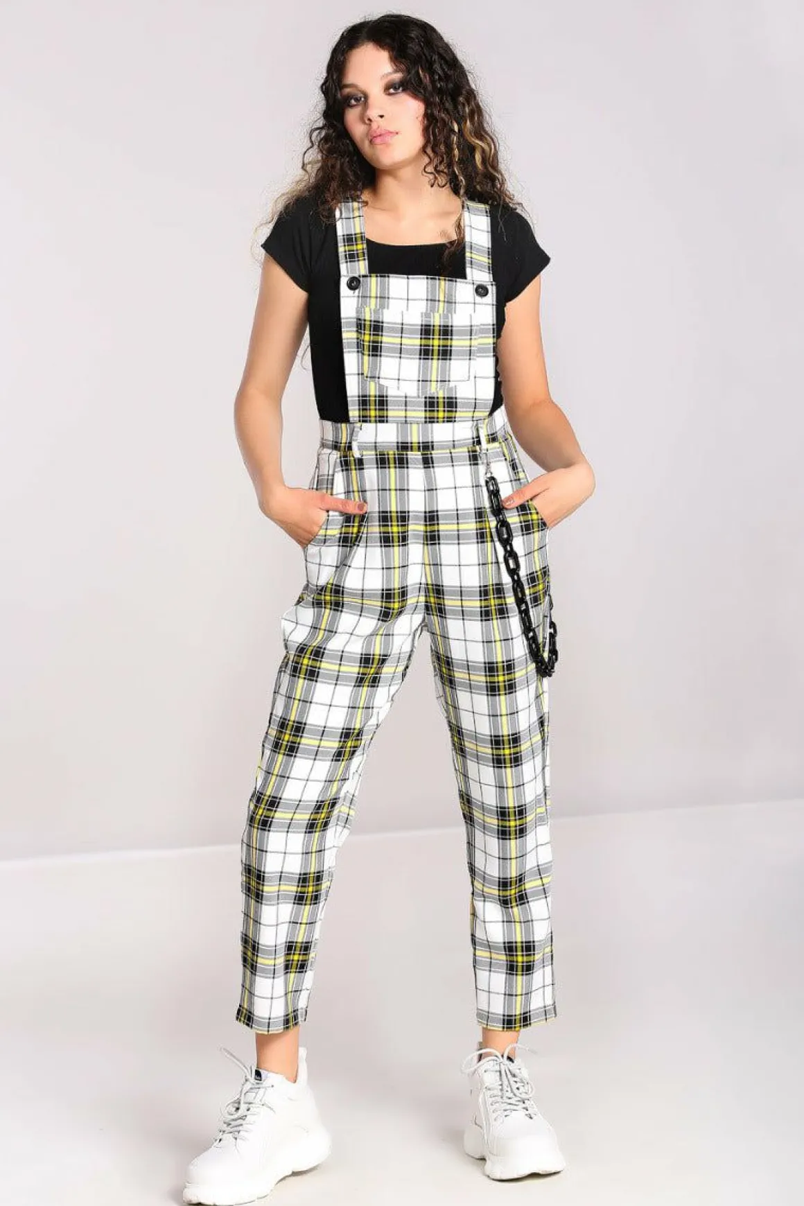 - Tartan Dungarees In White,Yellow And Black Tartan