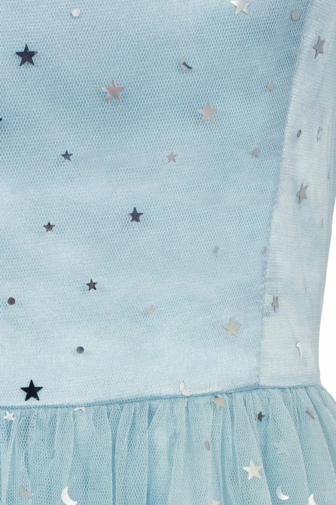 Tulle Mini Dress In Pastel BlueSilver Sparkley Stars & Moons On The Tulle Outer LayerDress Is Lined In Matching Satin Li…