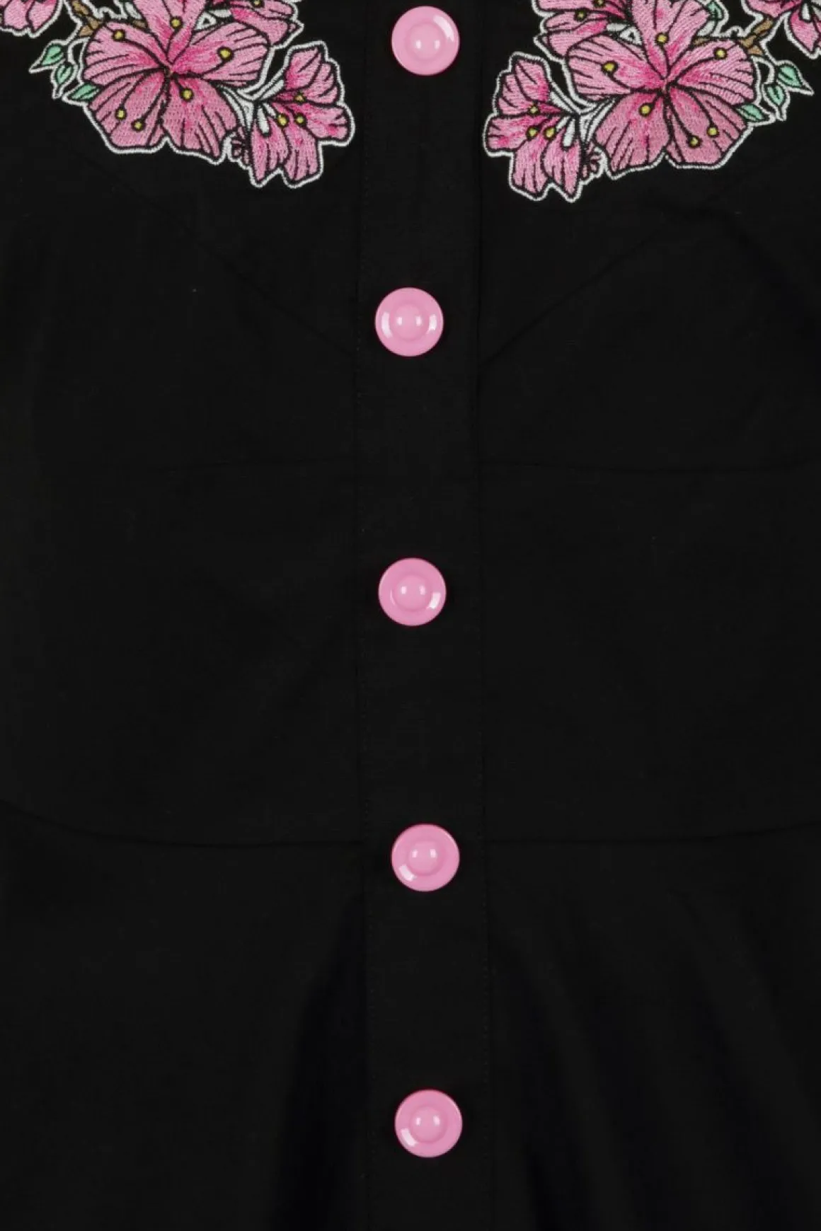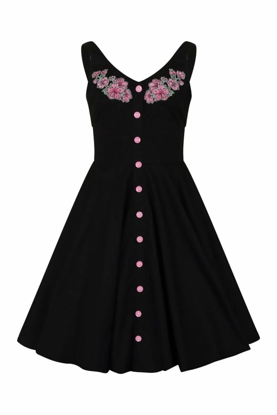 Dress With Flowers Embroidery On The Front BodiceAdjustable Straps With Buttons At The BackV-Shaped Seam Under The Embro…