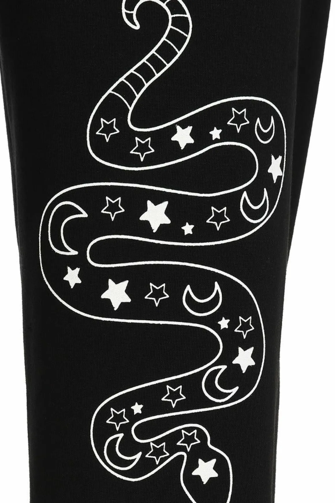 - Black Cuffed Joggers Decorated With White Ouija Symbols