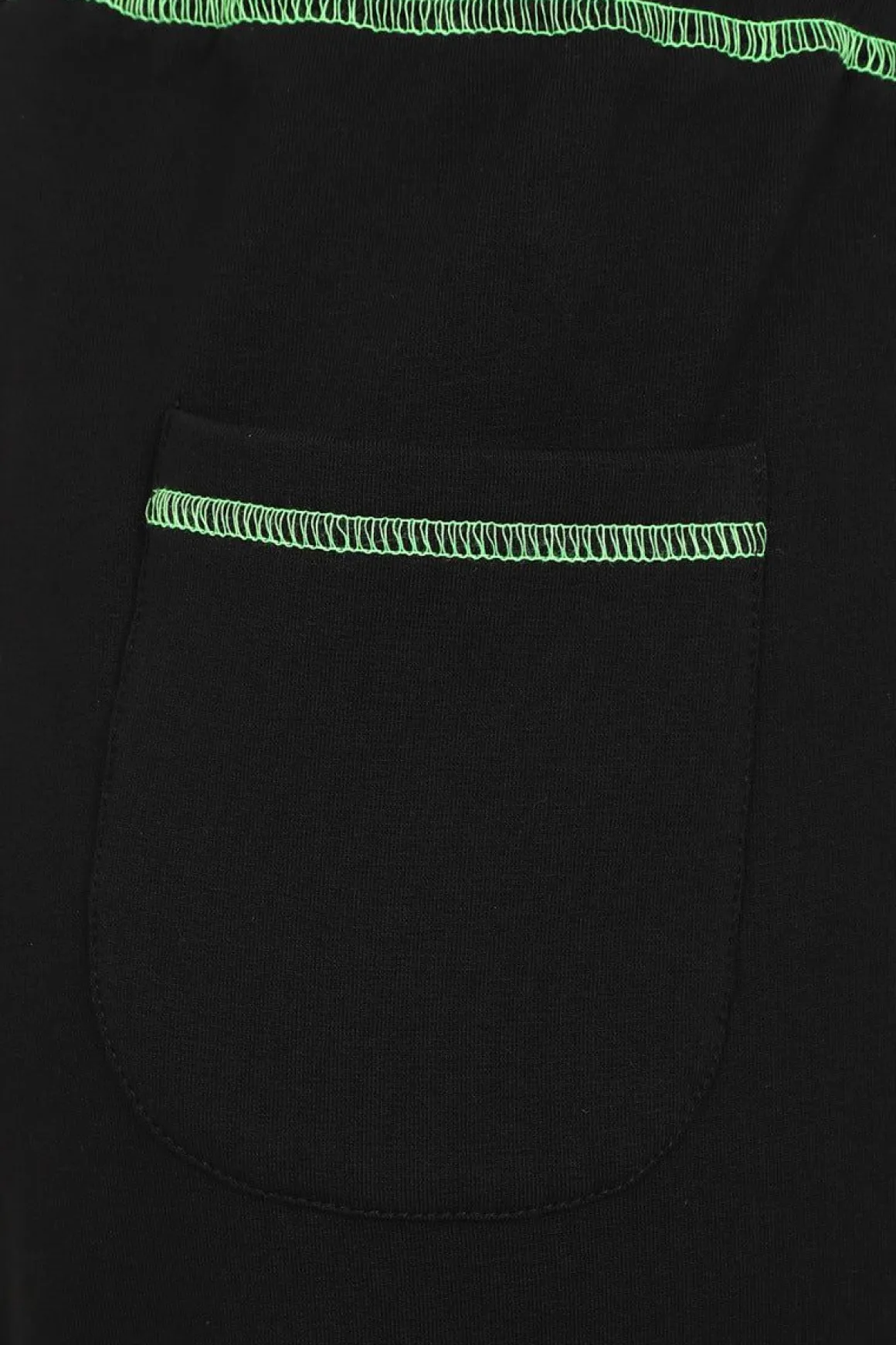 - Contrasting Neon Green Stitching Along The Waist, Pockets And Leg Cuffs To Add A Little More Spook!