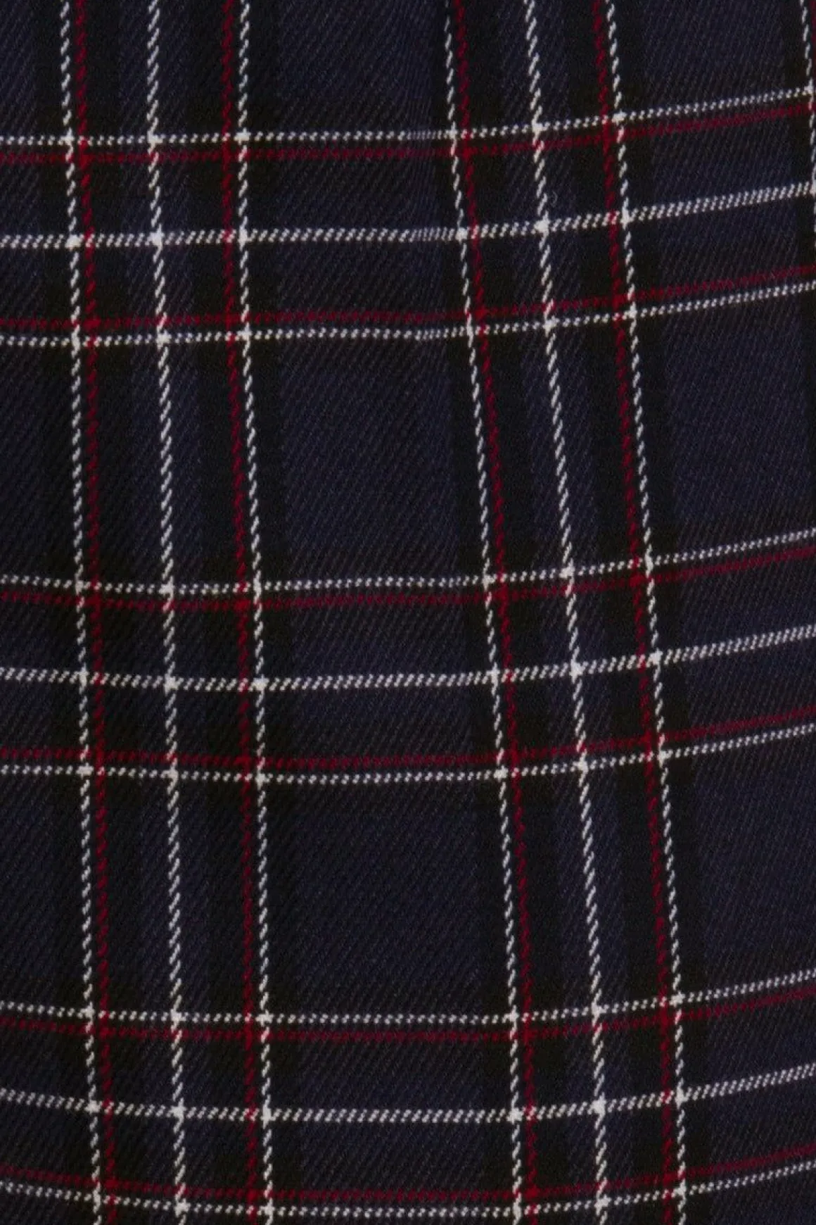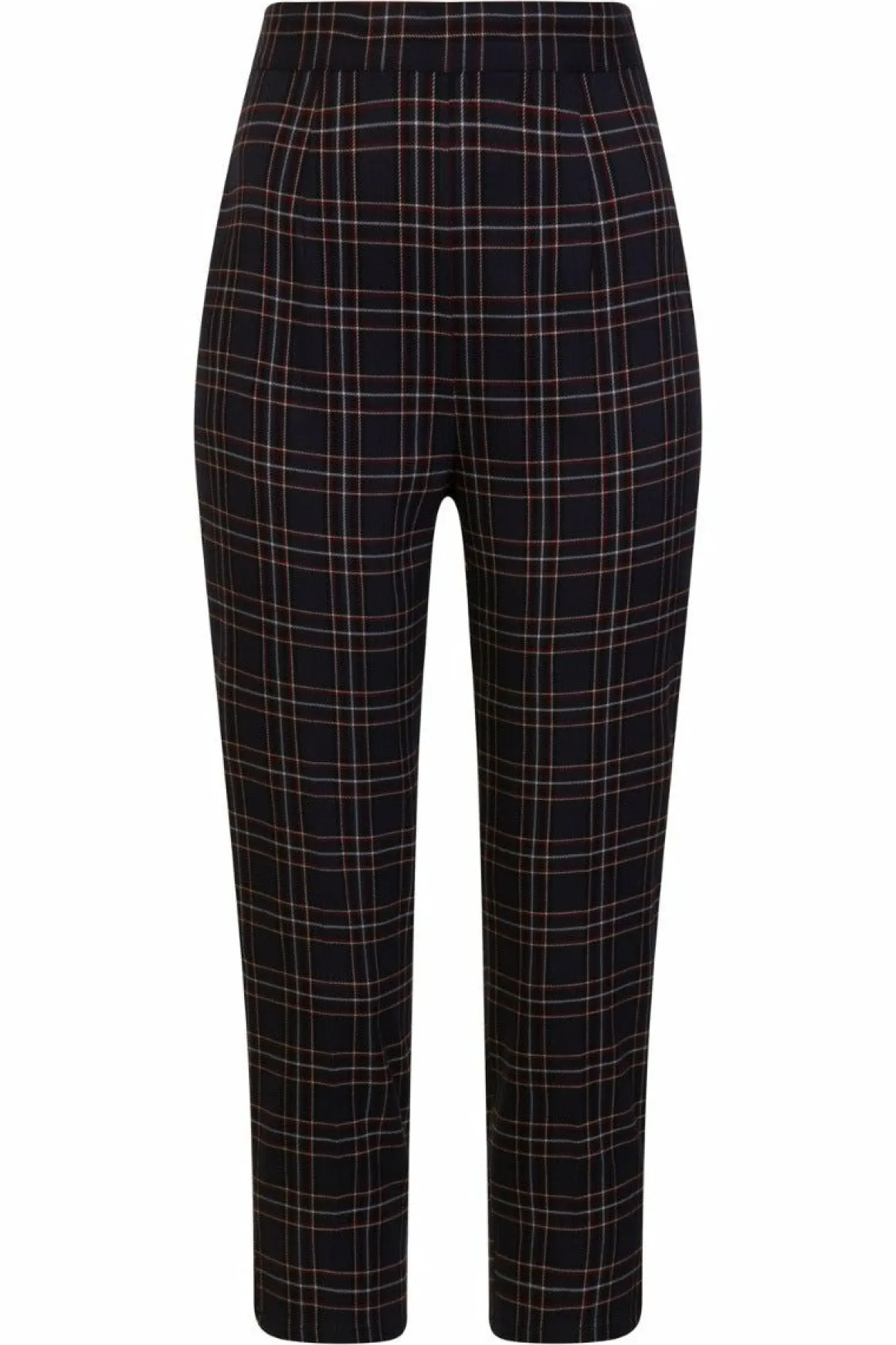 Trousers In Navy Tartan With White, Red Stripes.Darts At The Front Into The Waistband.Waistband In Self Fabric.Zip At Th…