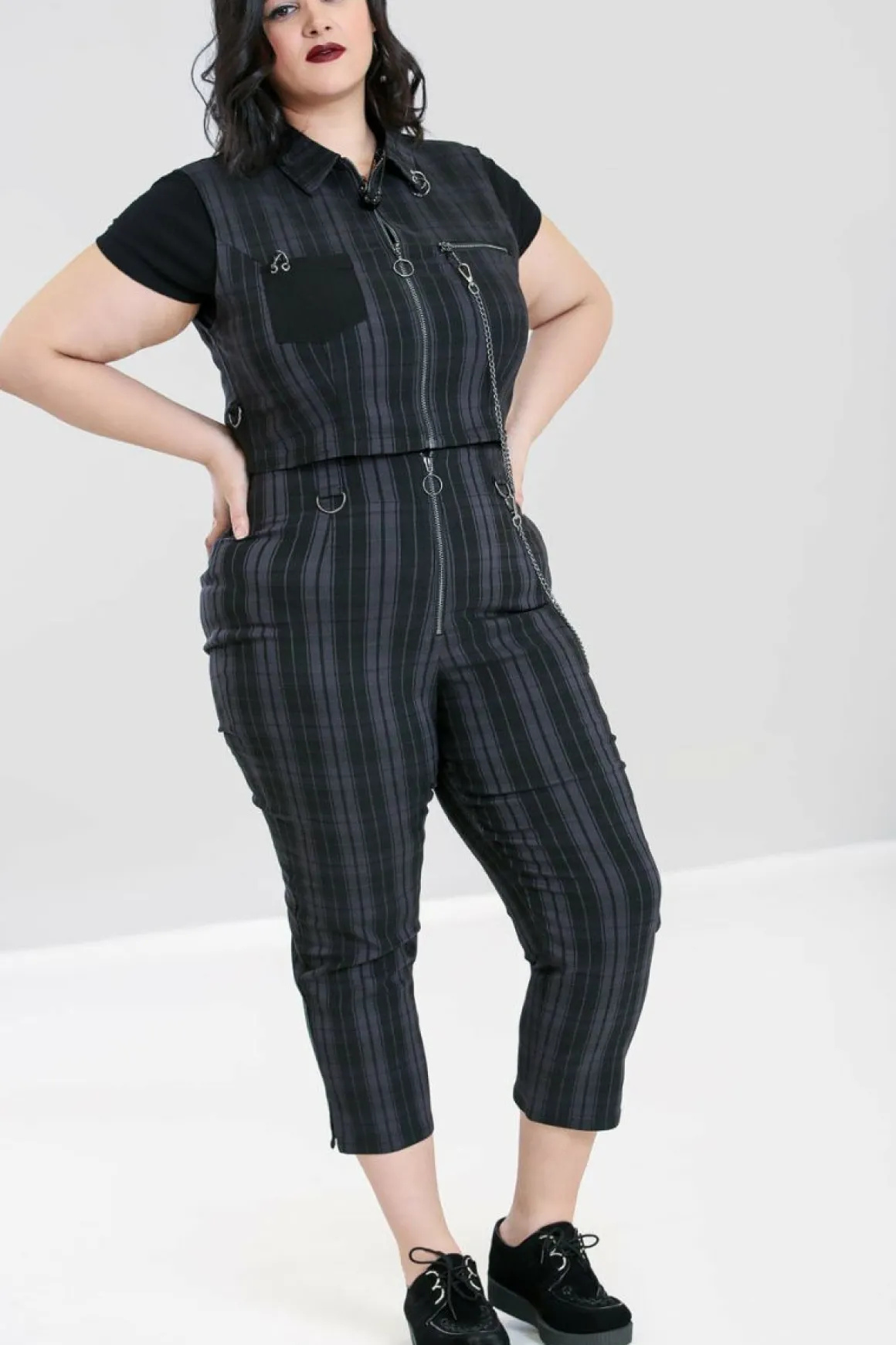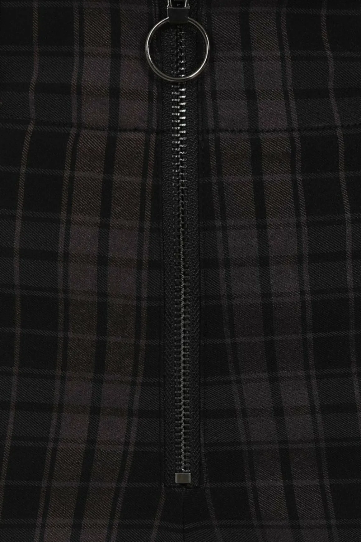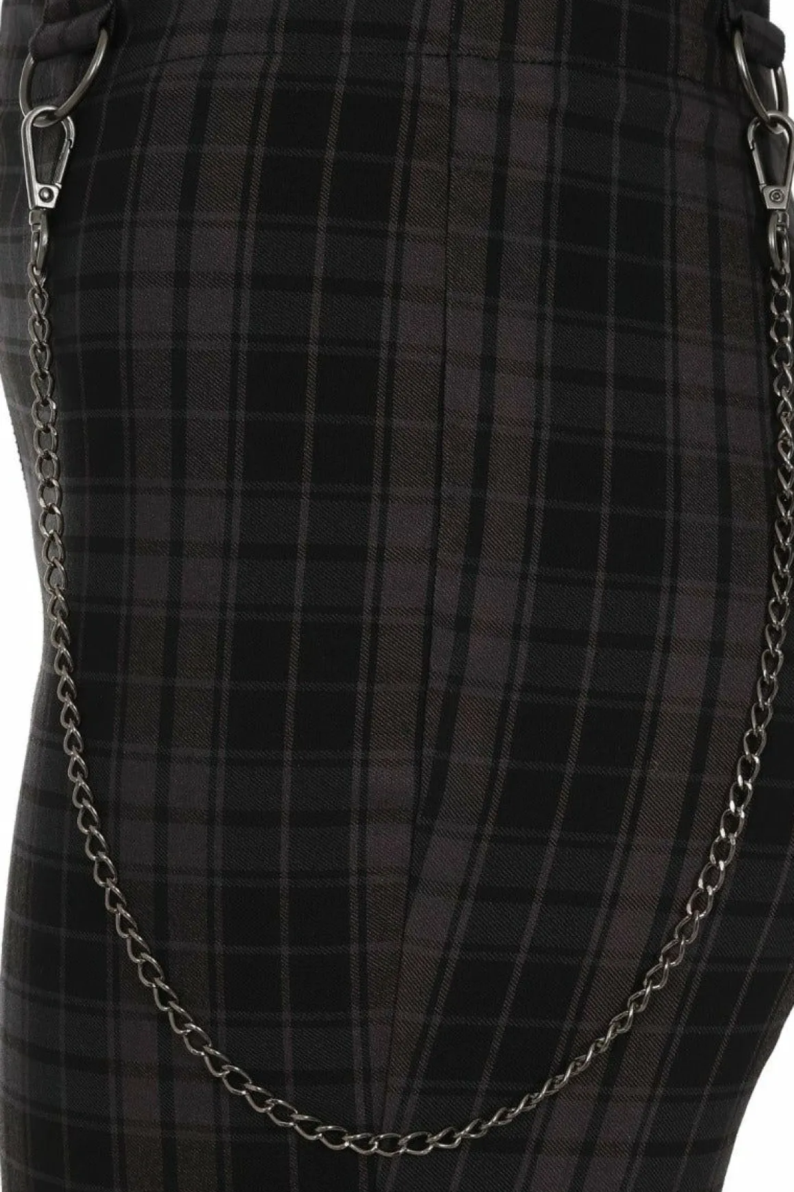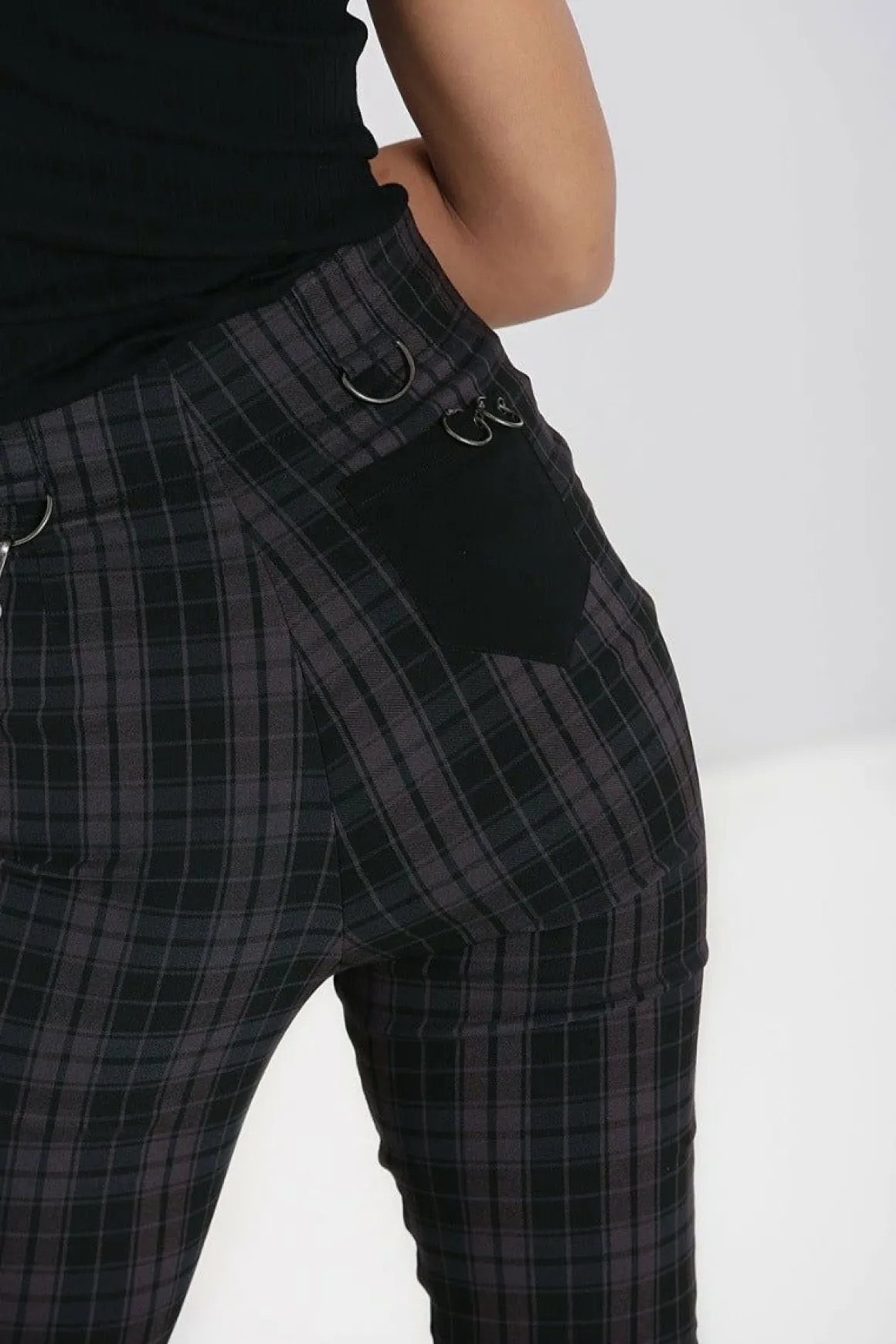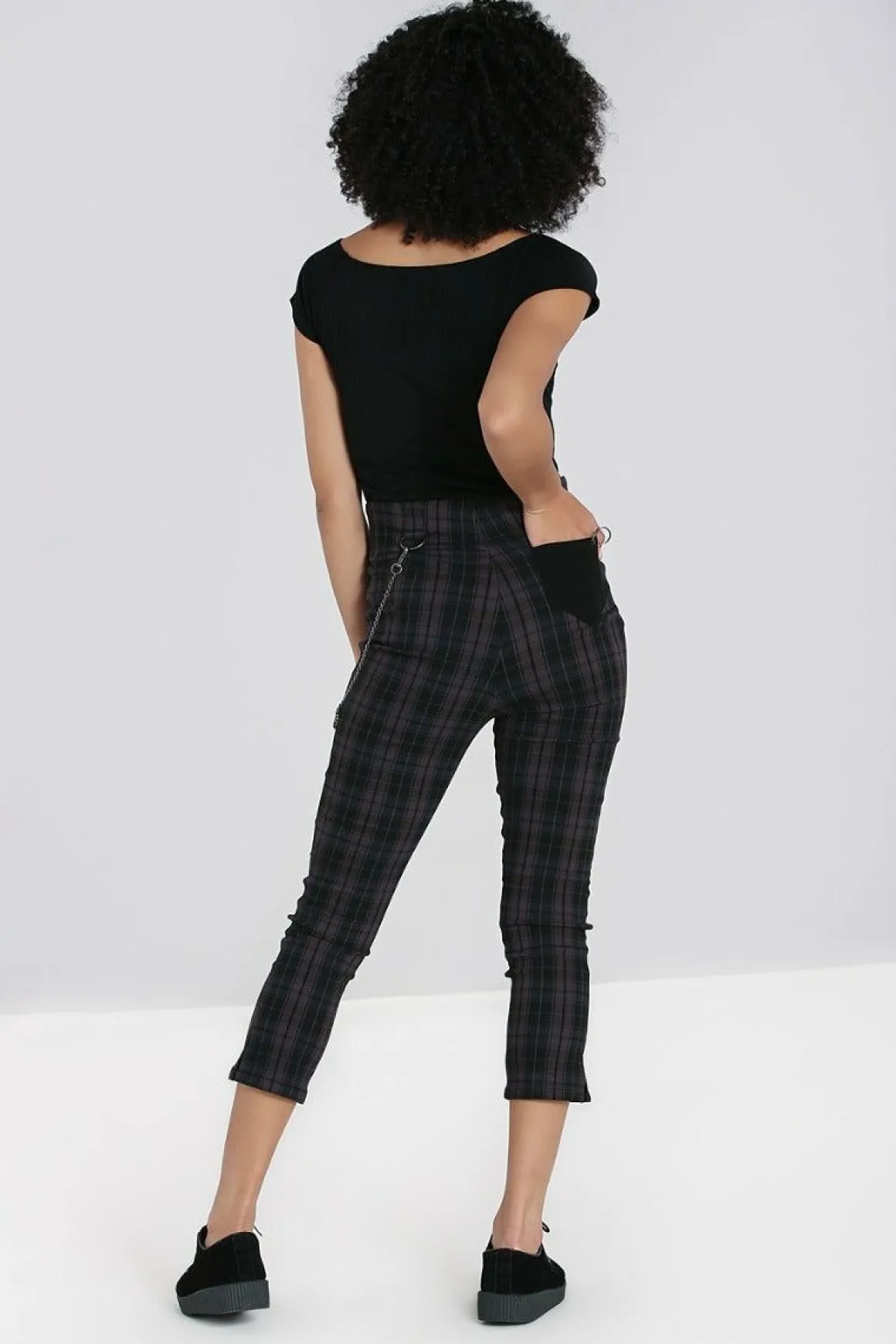 - Figure-Hugging Capri Trousers In Dark Grey & Black Tartan