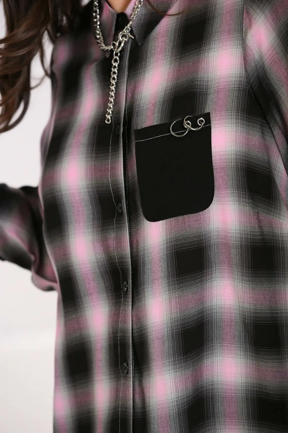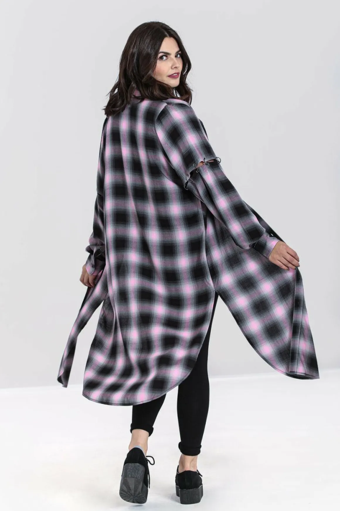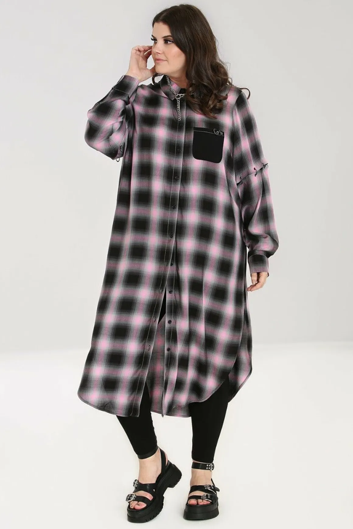 - Black, Grey & Baby Pink Tartan Long Shirt Dress