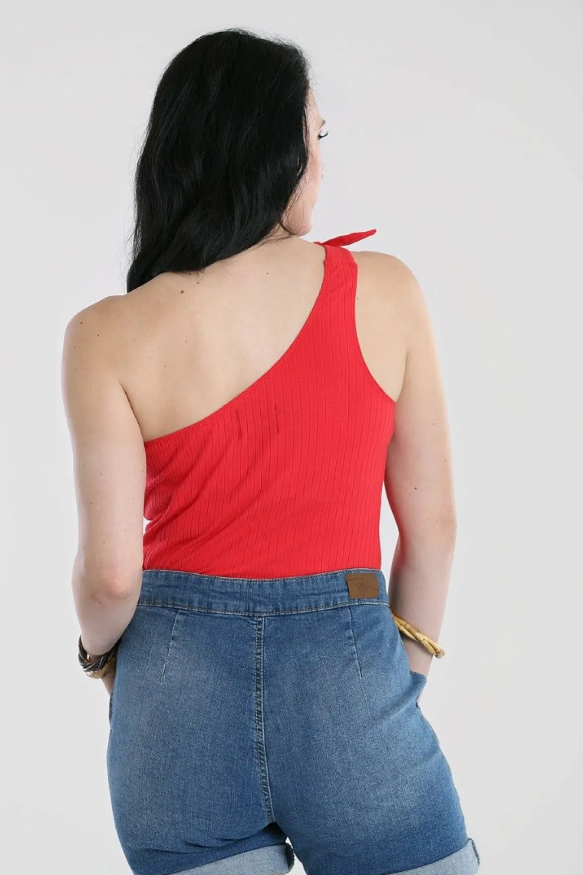 Stretch Ribbed Jersey Plain TopSleeveless Top With 1 StrapTied On ShoulderFitted Style , Length Down To The HipsFabric C…