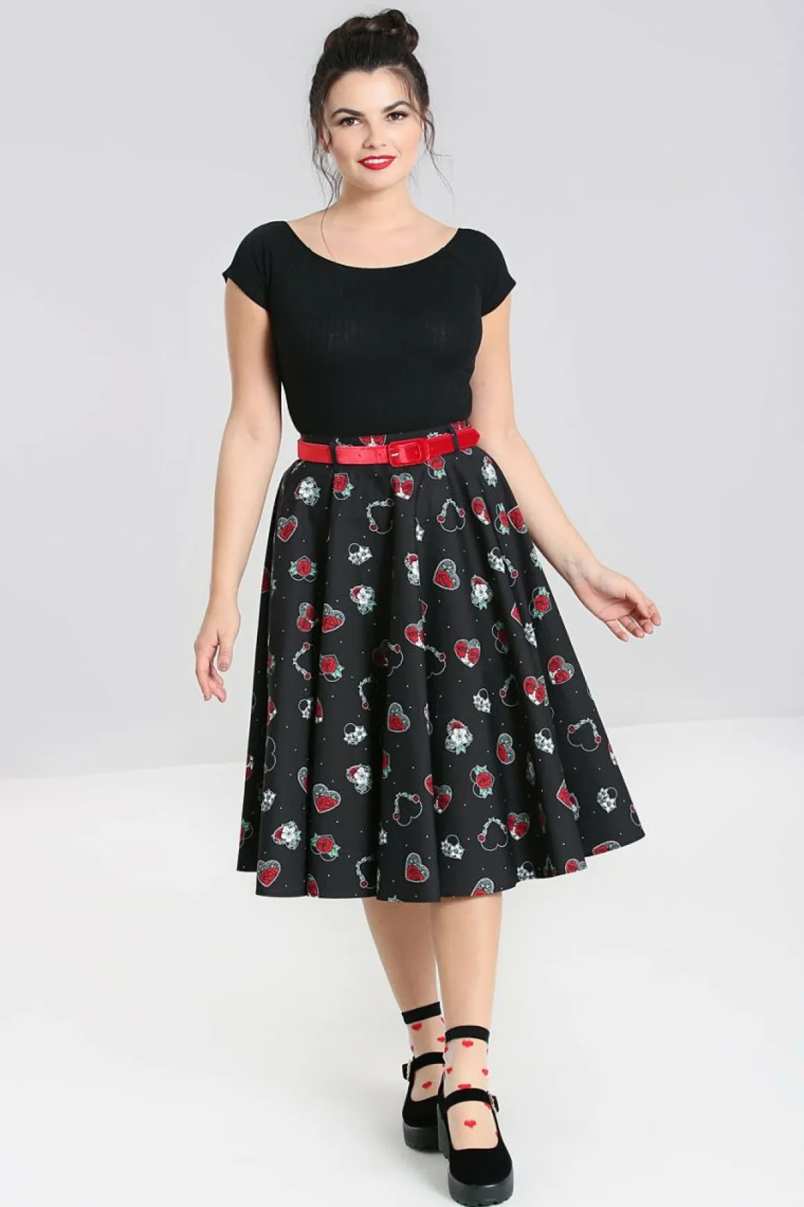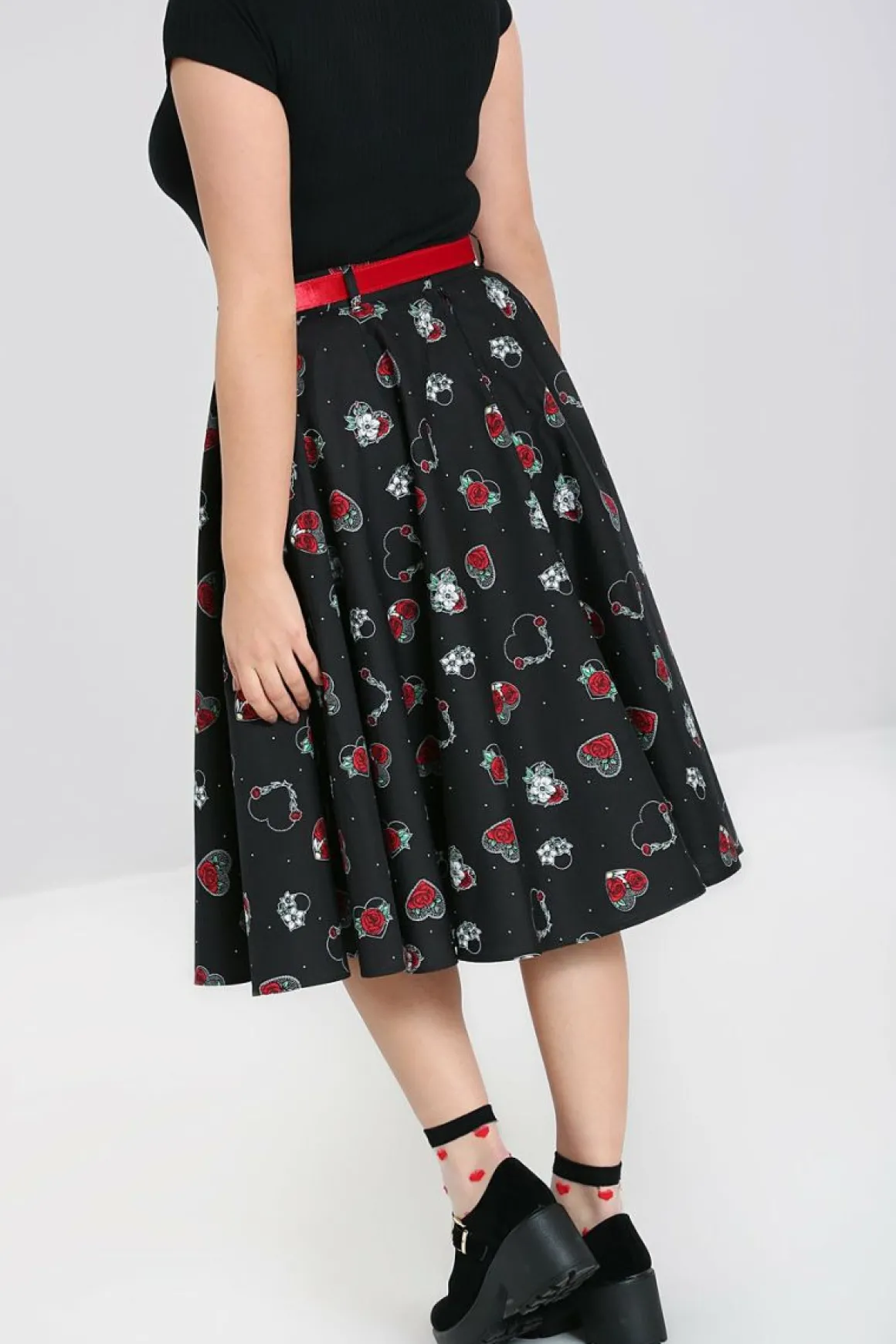 - Black Vintage Style 50’S Skirt Romantically Decorated With Flowers & Hearts