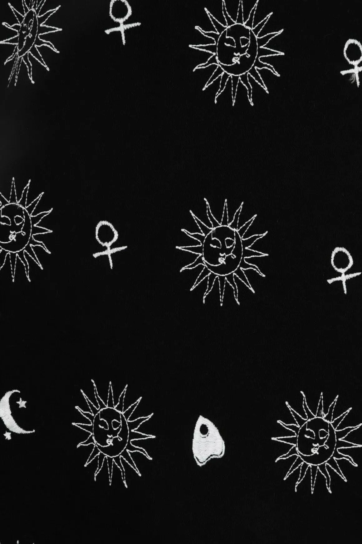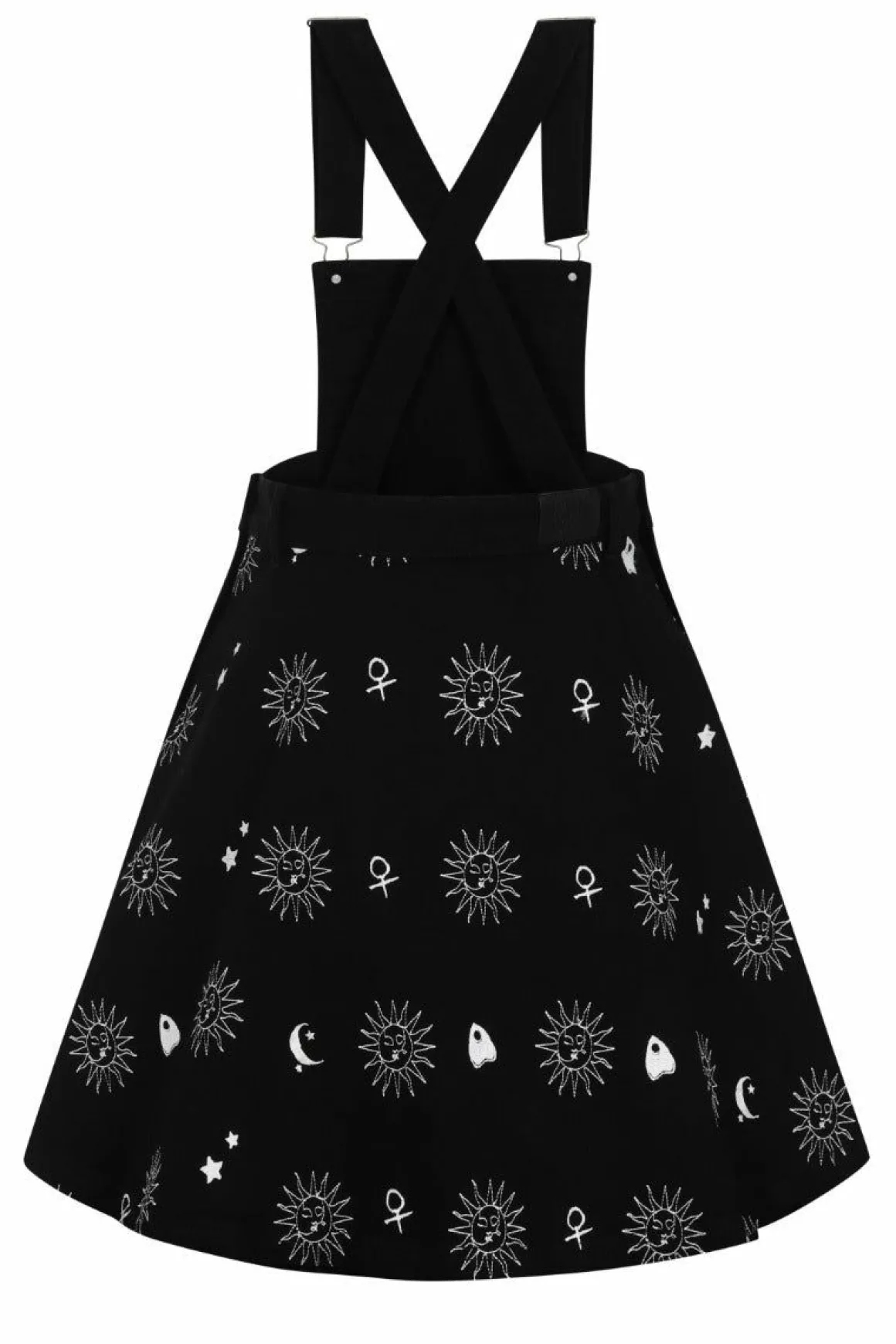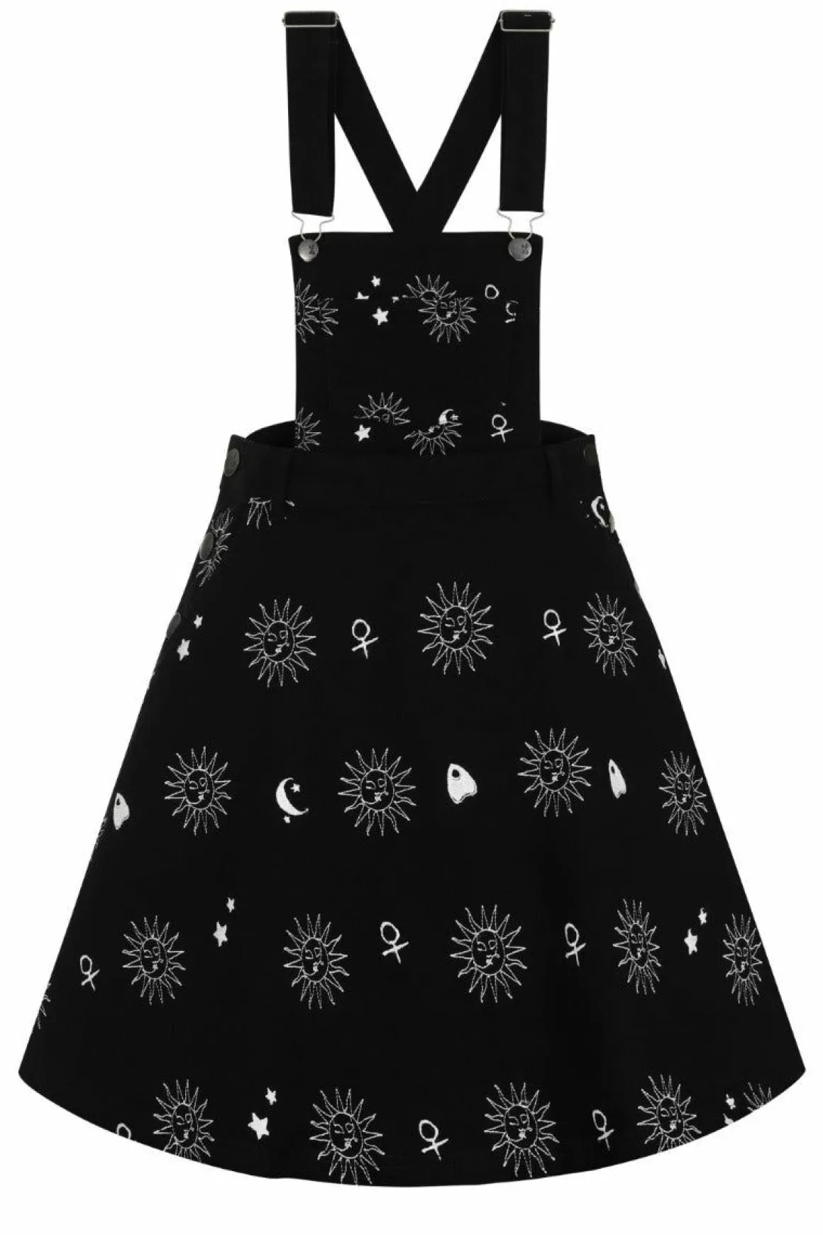 - Fit-And-Flare Black Denim Pinafore Dress With White Embroidered Ouija Symbols
