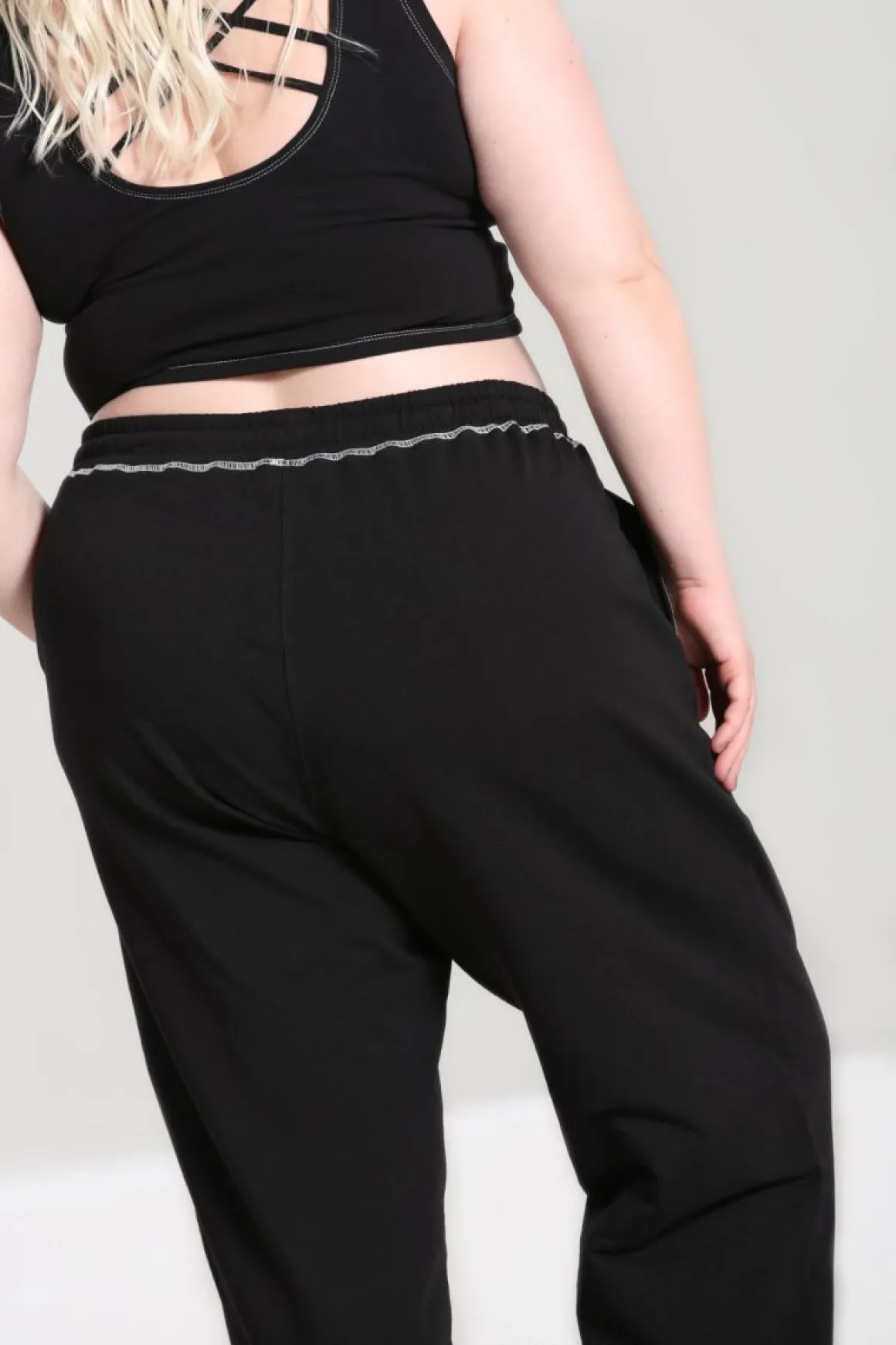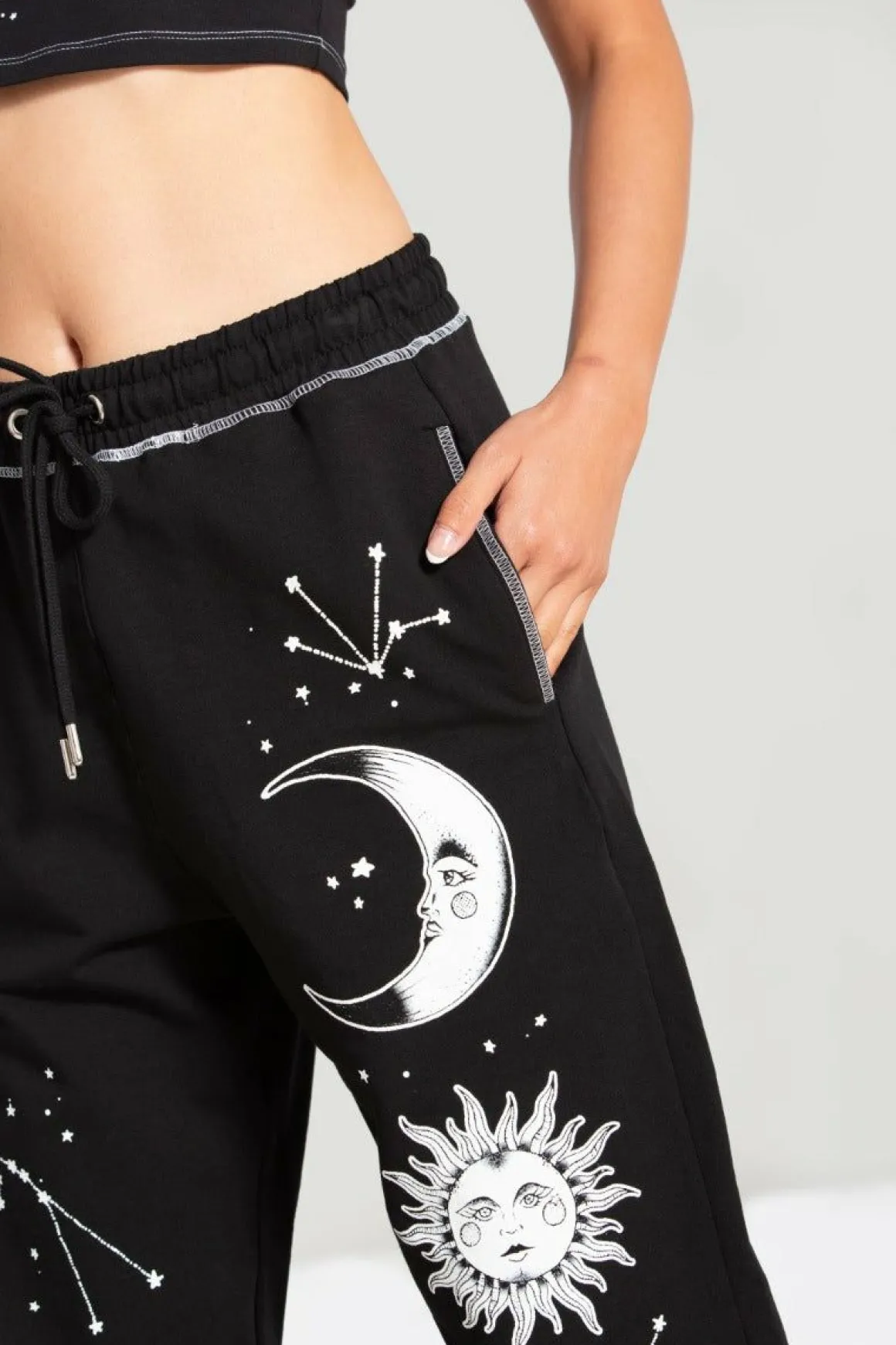 - Black Jersey Joggers Decorated With Large Celestial Artwork On Both Legs
