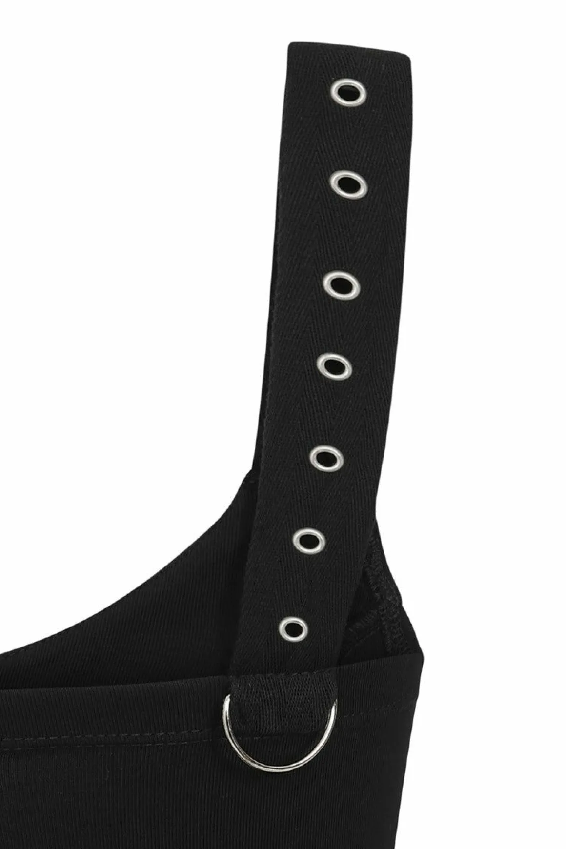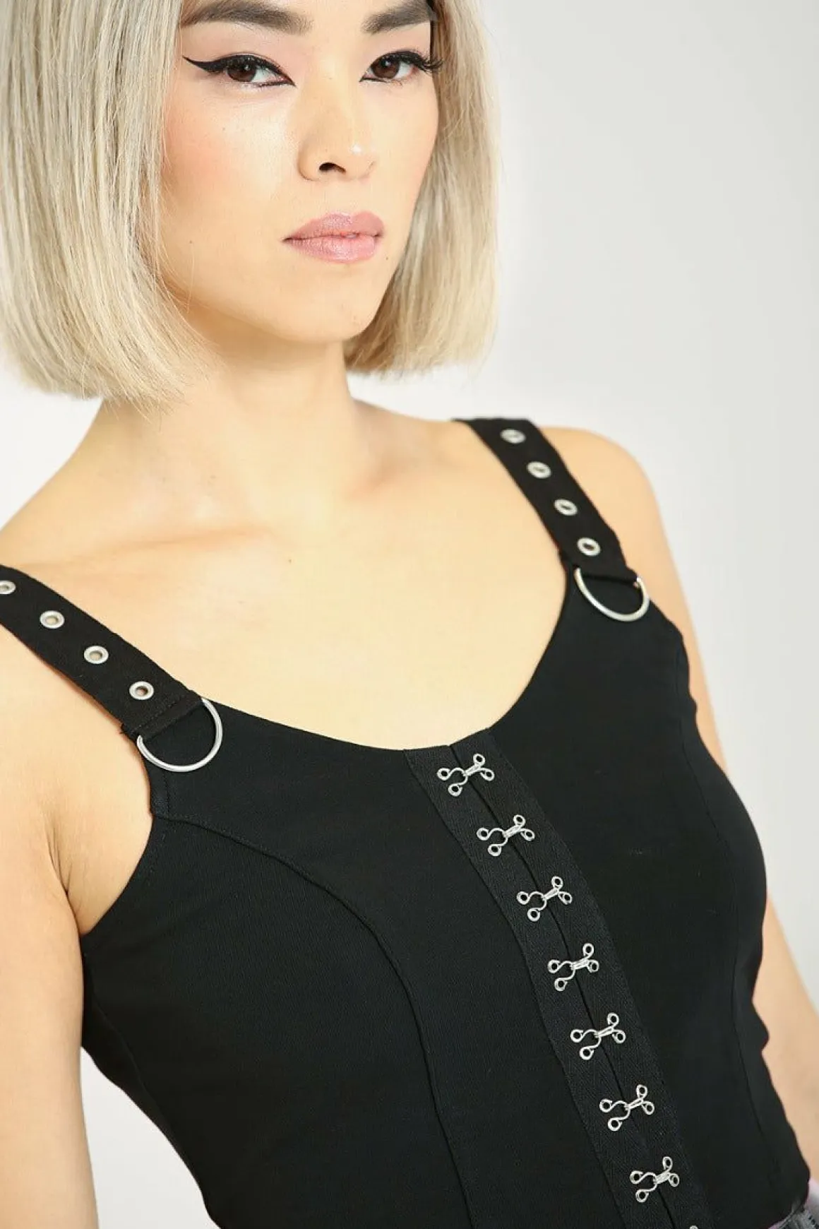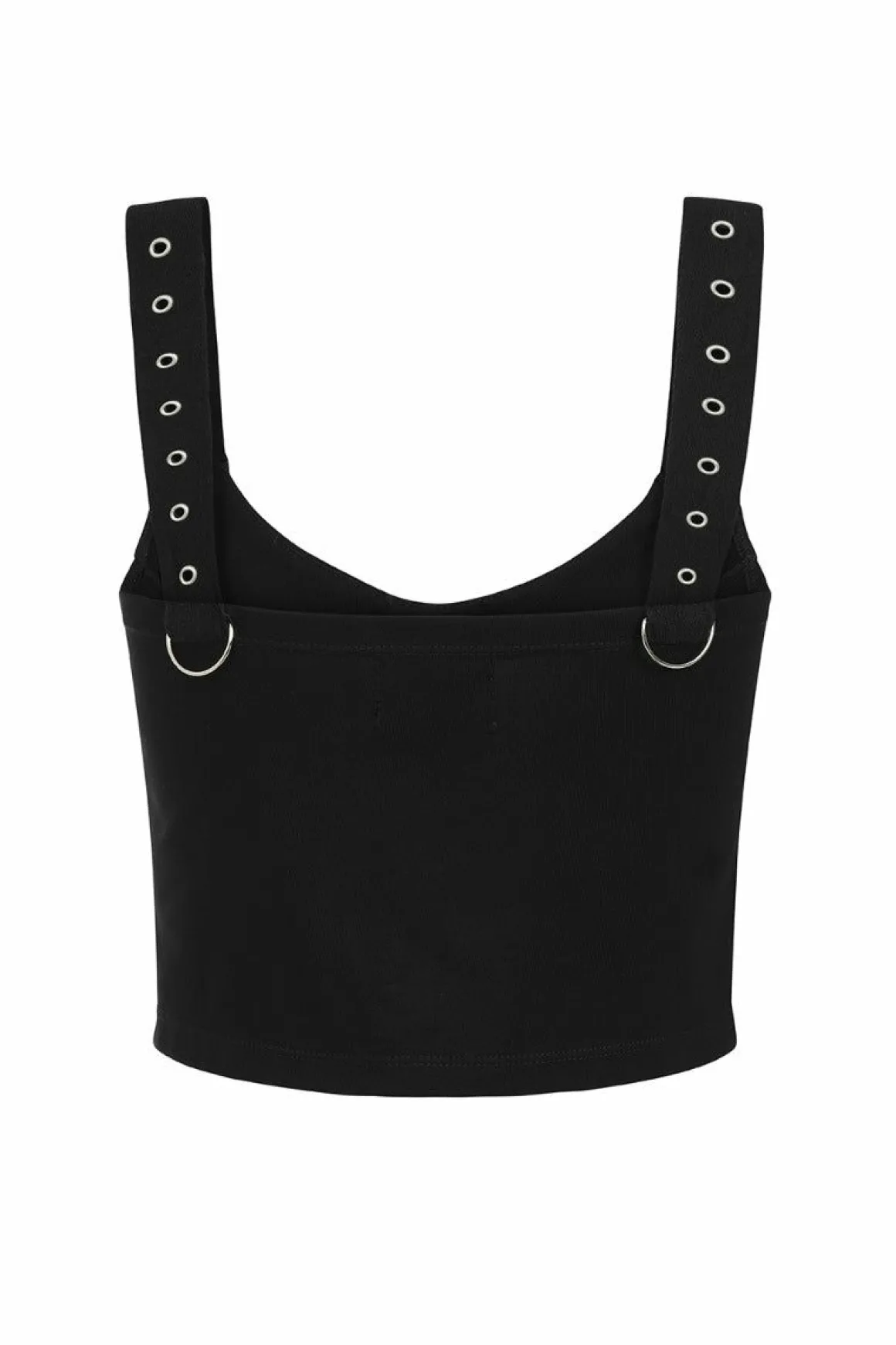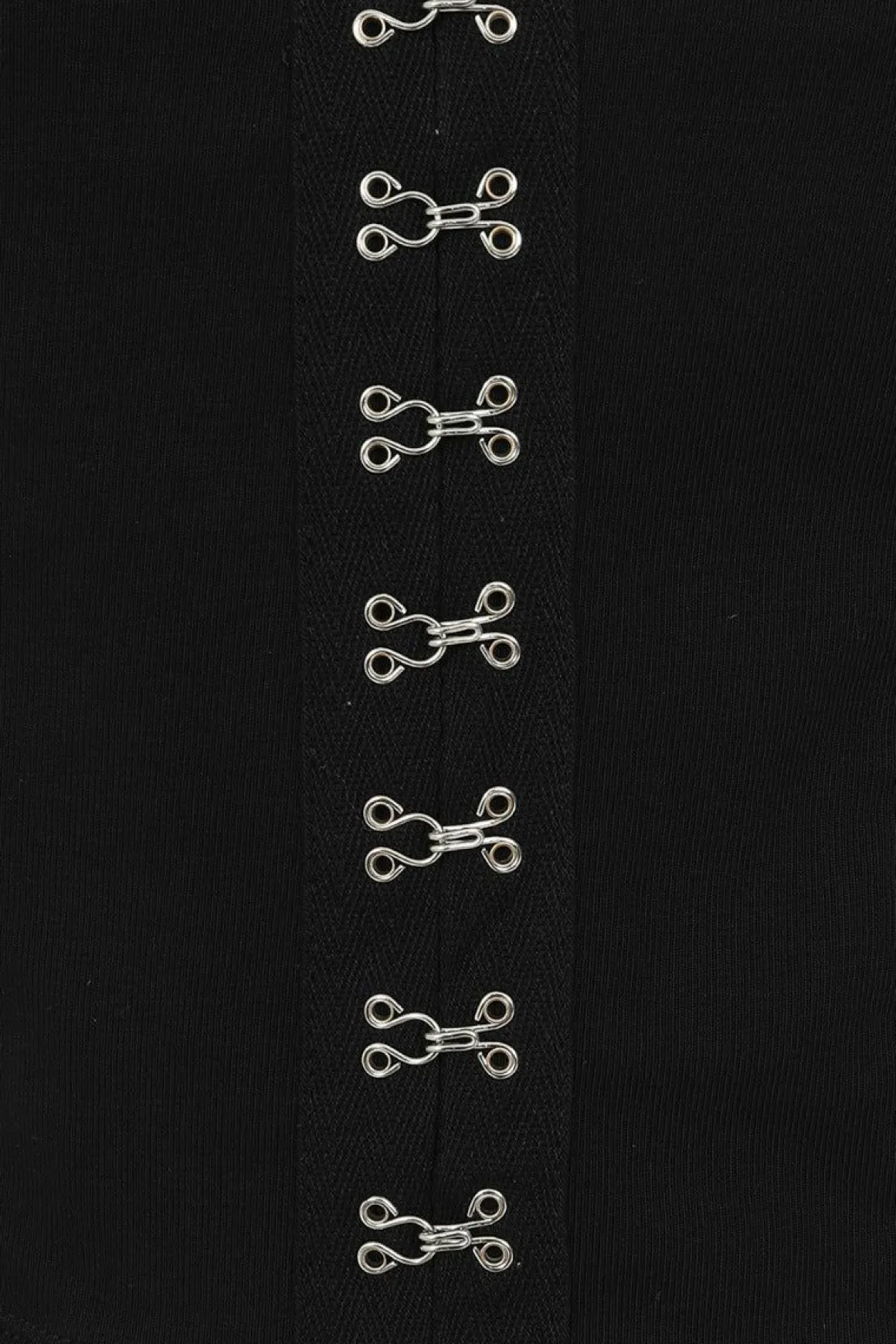 - Black Fitted Crop Top With Silver Link Detailing Down The Front For Added Grunge