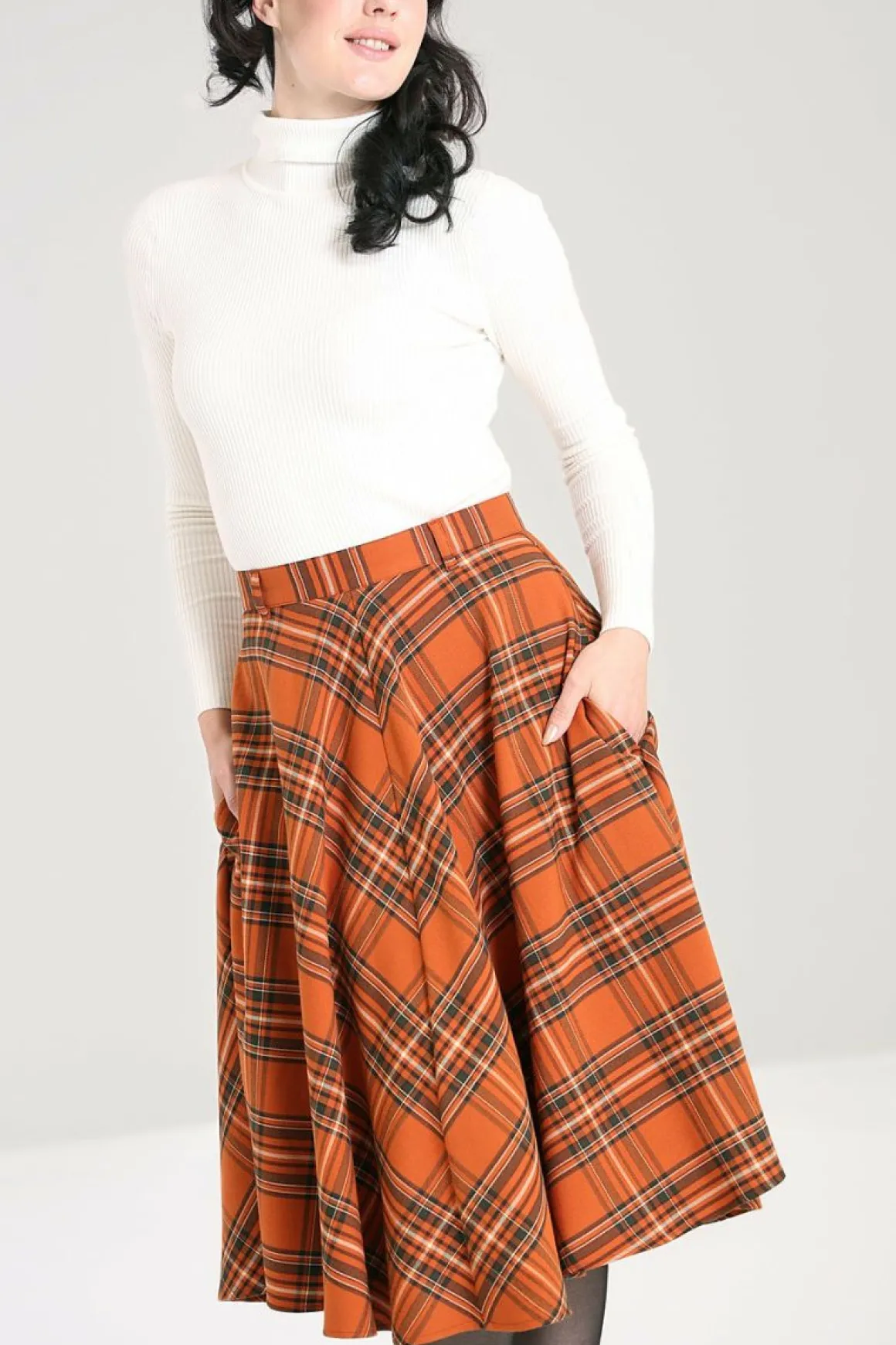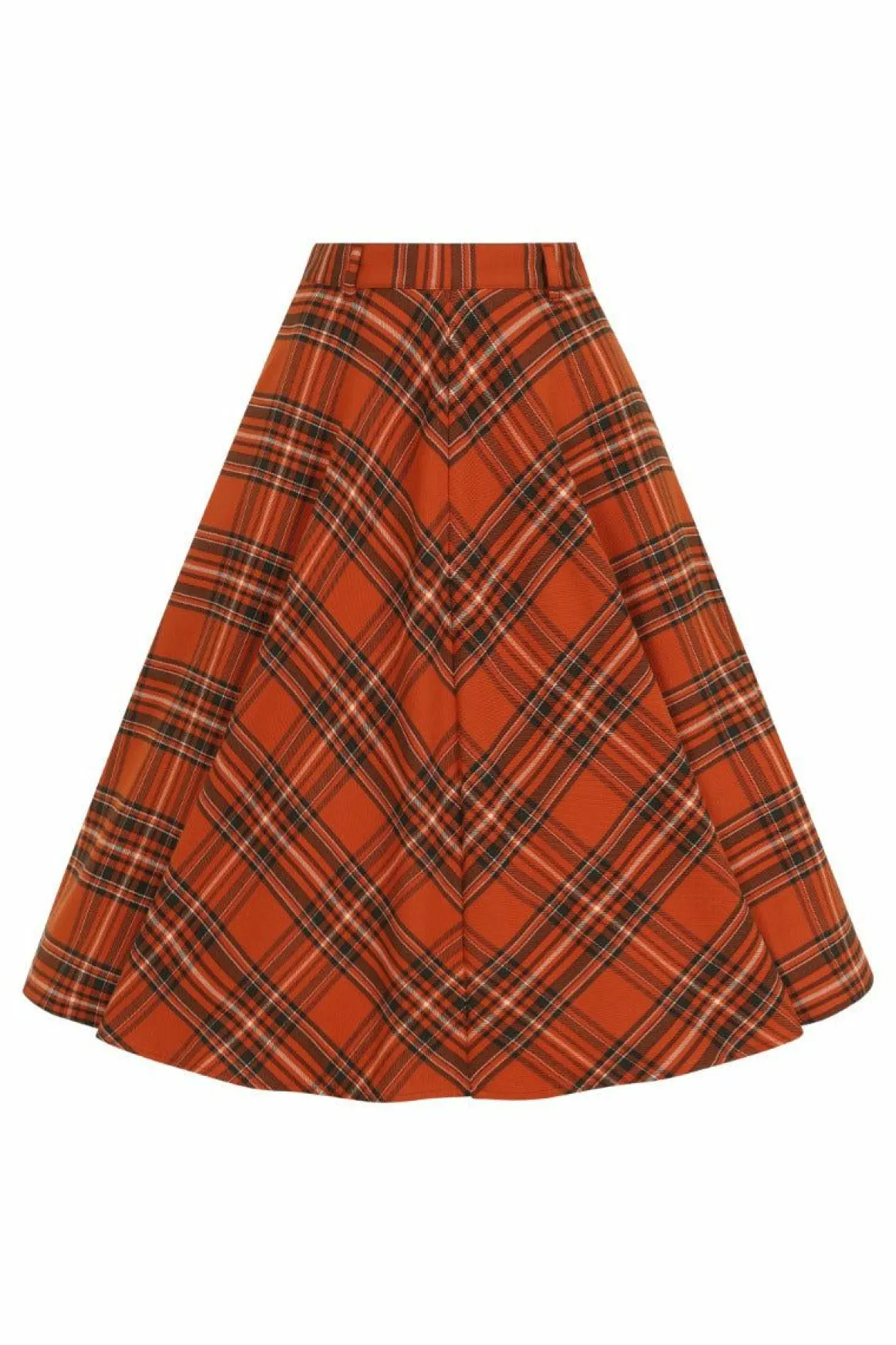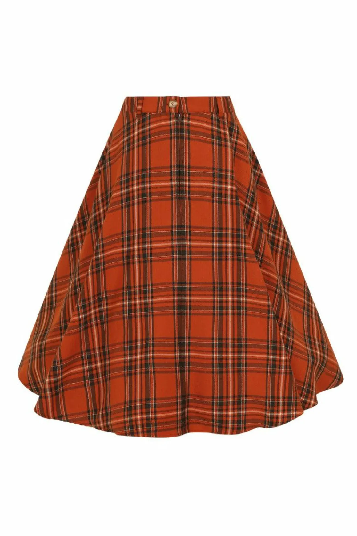 It Doesn’T Get More Autumnal Than Our Vintage Style Tawny Skirt.Orange And Brown Tartan Fit-And-Flare Skirt High Waist W…
