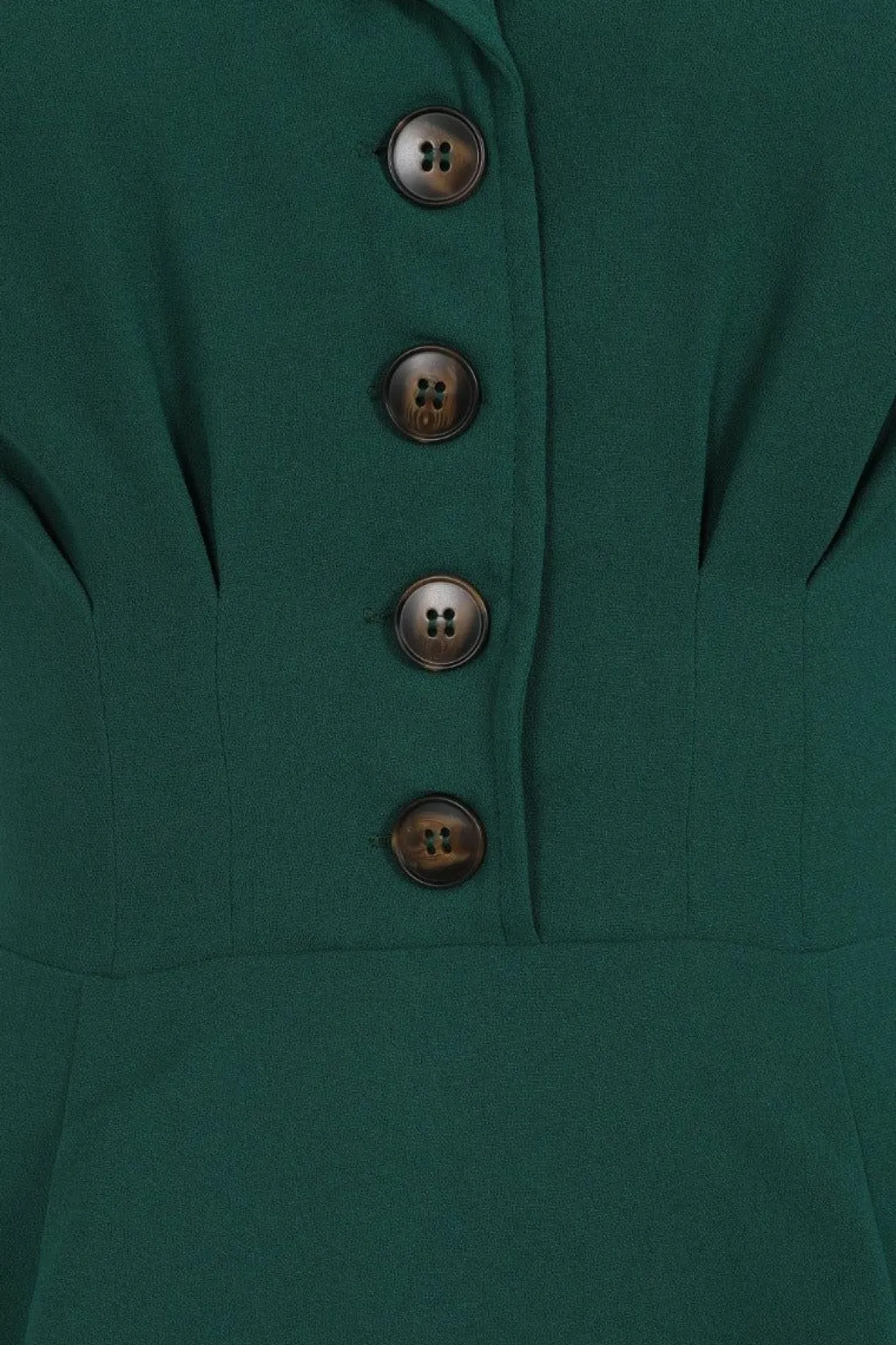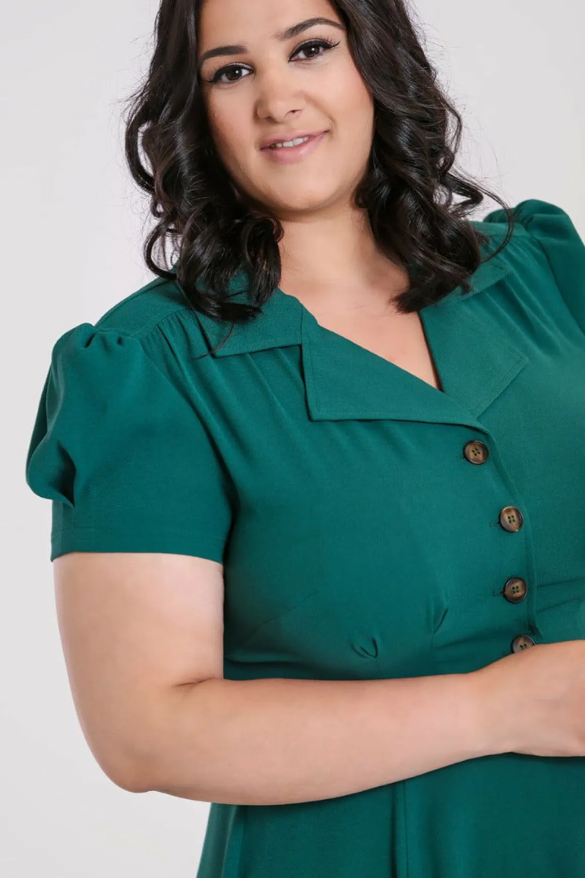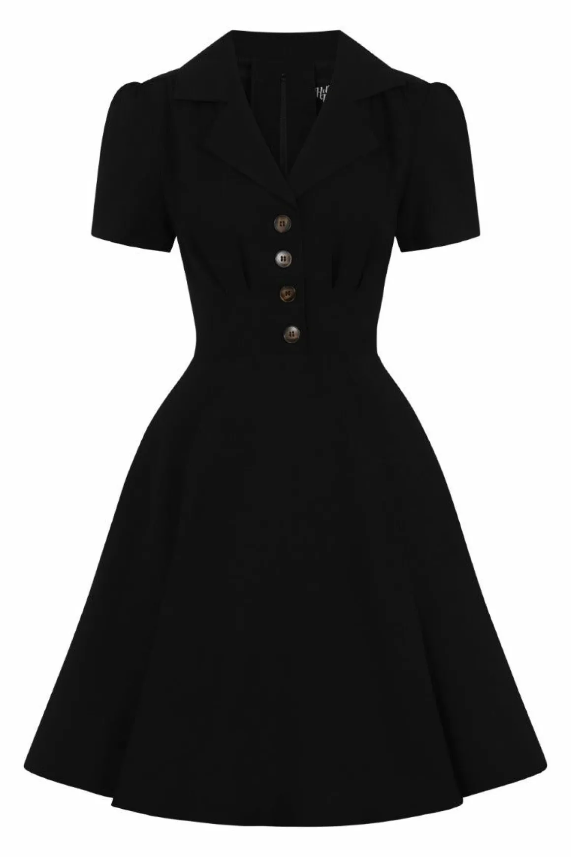 Plain Colored Mid DressAvailable In 2 ColoursButton Up Bodice With Large Tortoise Effect ButtonsPointed Collar With V Ne…