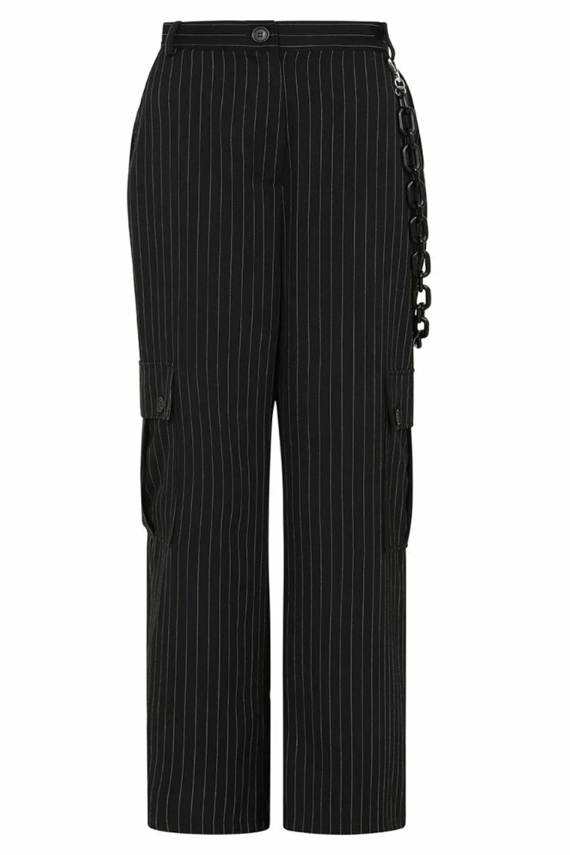 - Large Pockets On Both Mid Legs With Button Fastening And Pleat Front