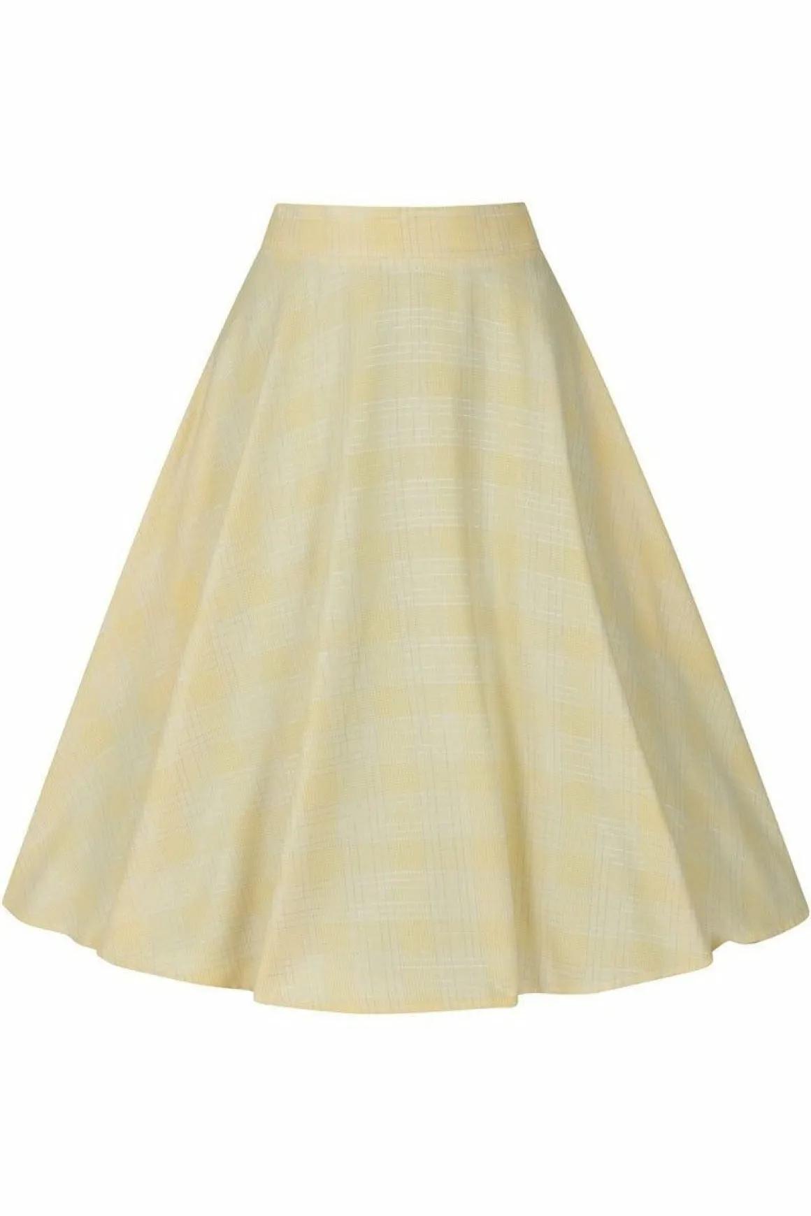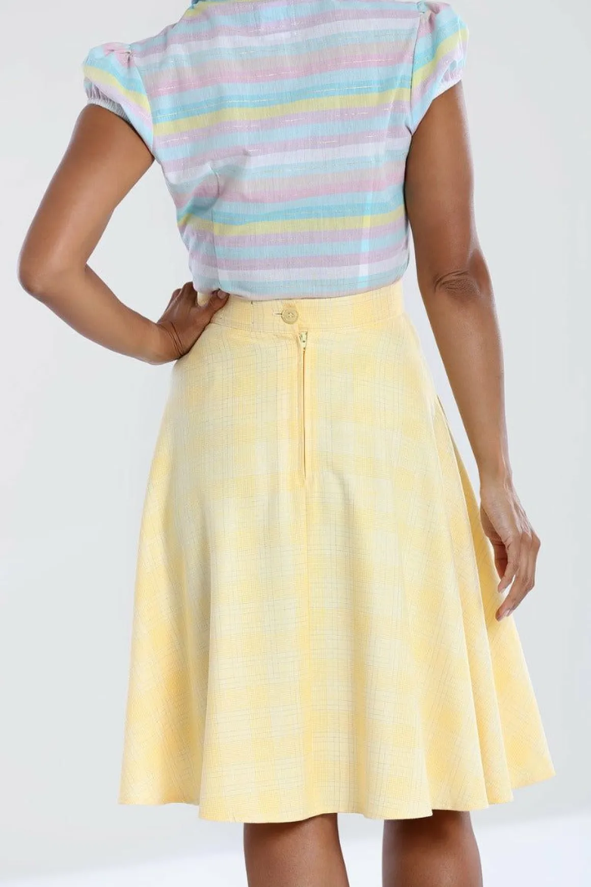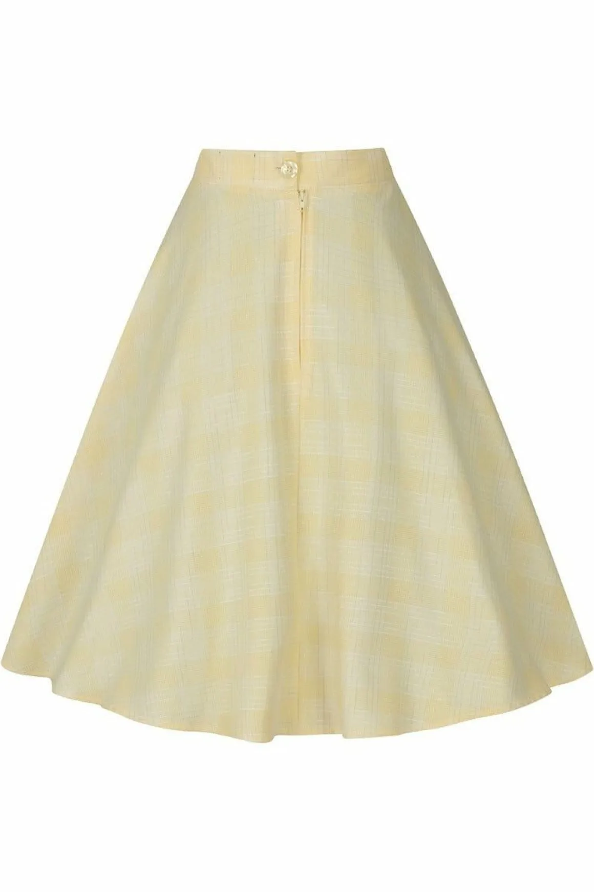 Yellow & White Check Skirt With Sparkly Lurex Details. Button & Zip Fastening At Centre Back. Fitted At The Waist & Flar…