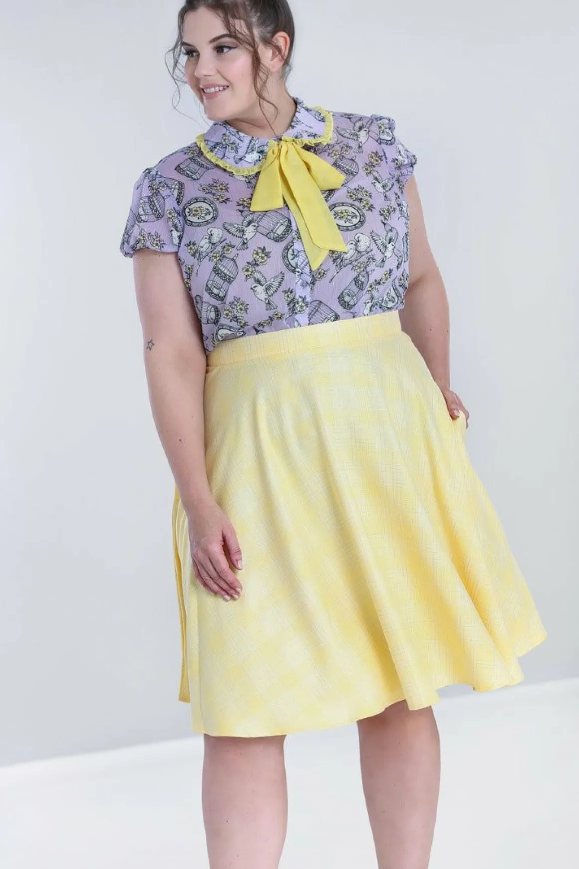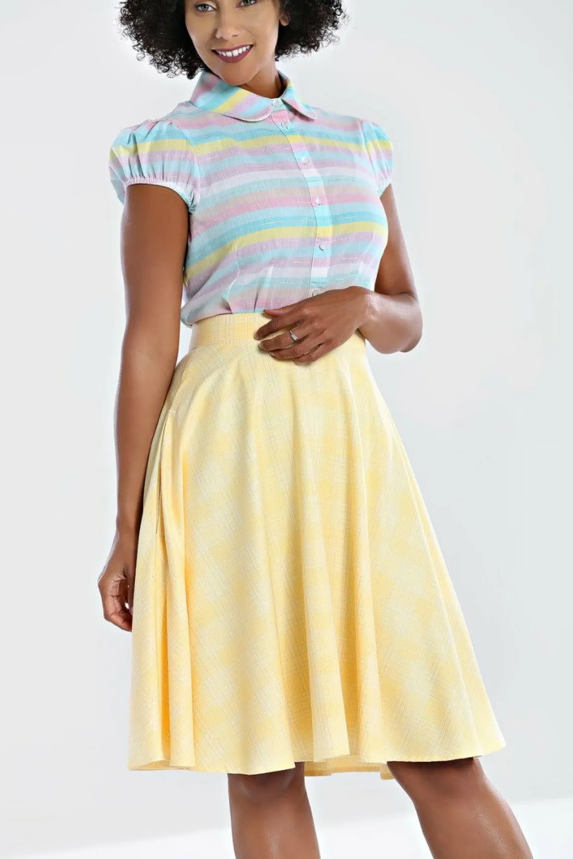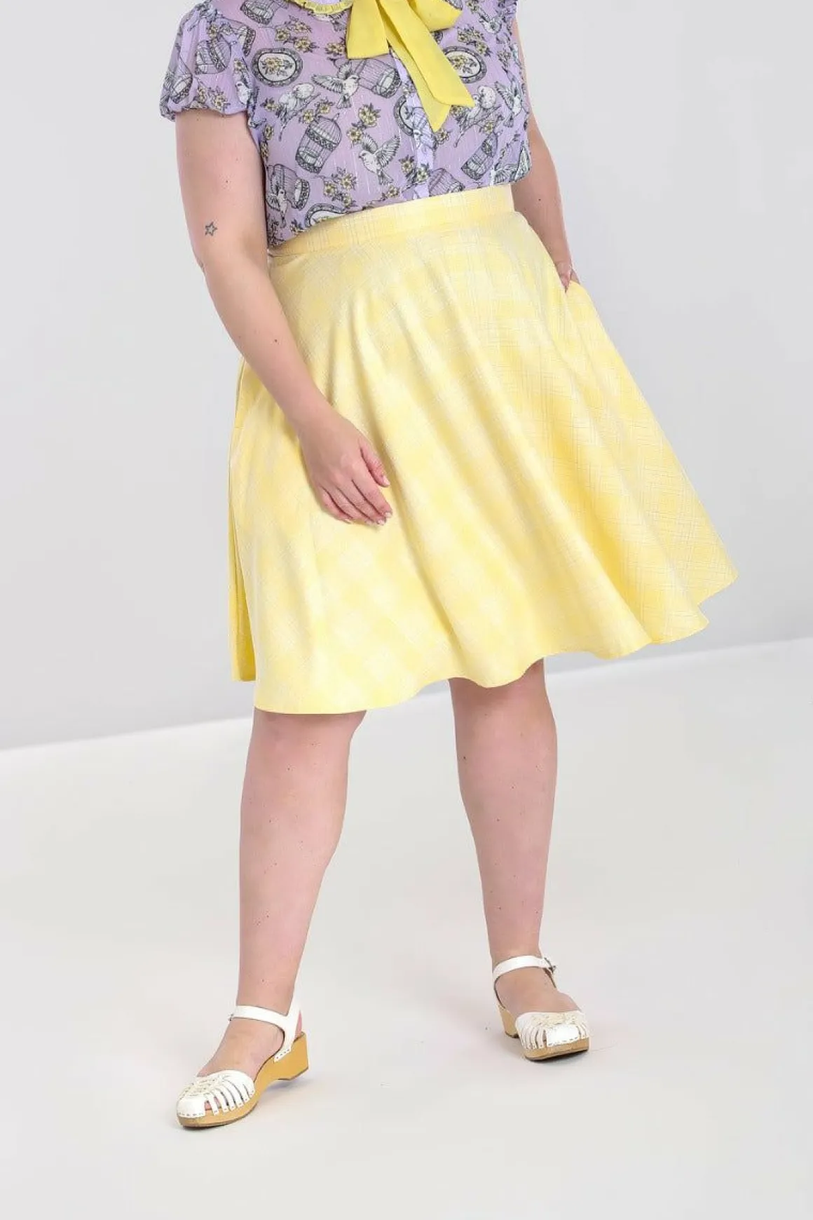 Yellow & White Check Skirt With Sparkly Lurex Details. Button & Zip Fastening At Centre Back. Fitted At The Waist & Flar…