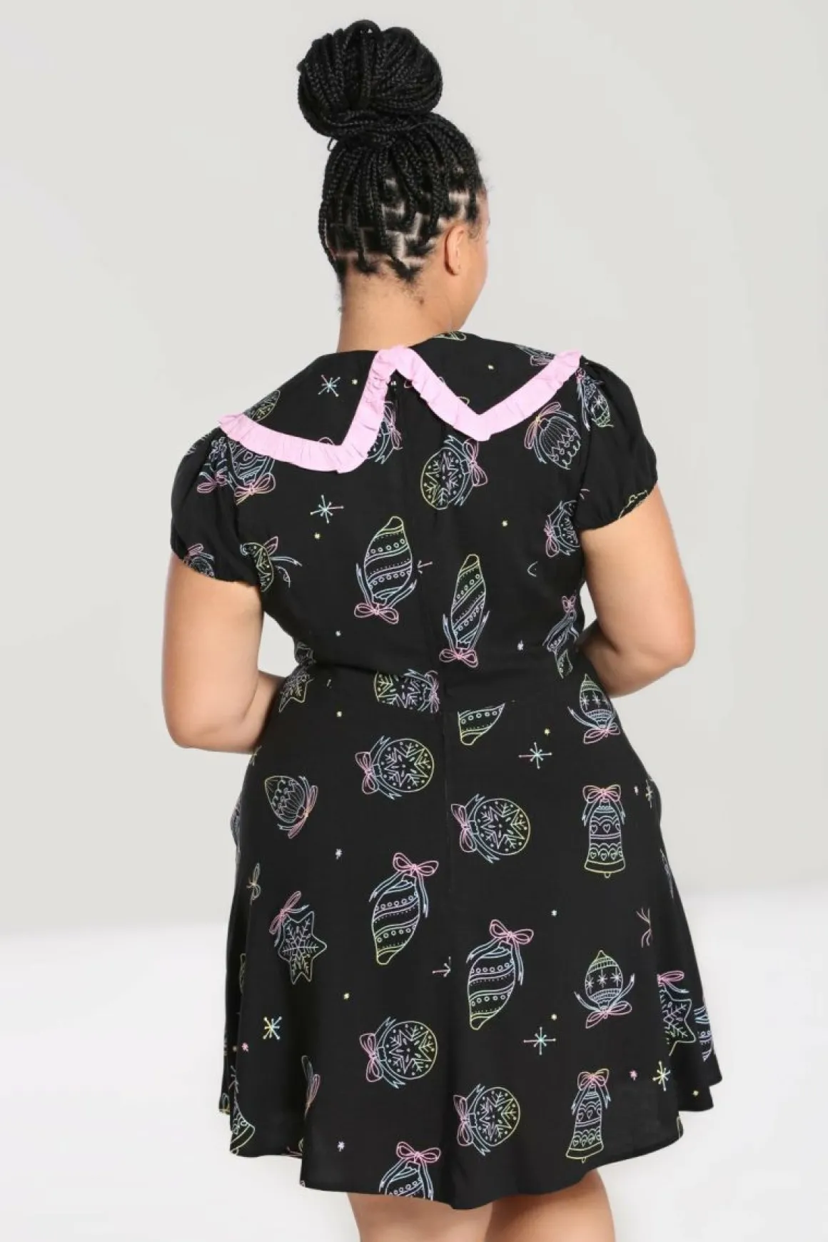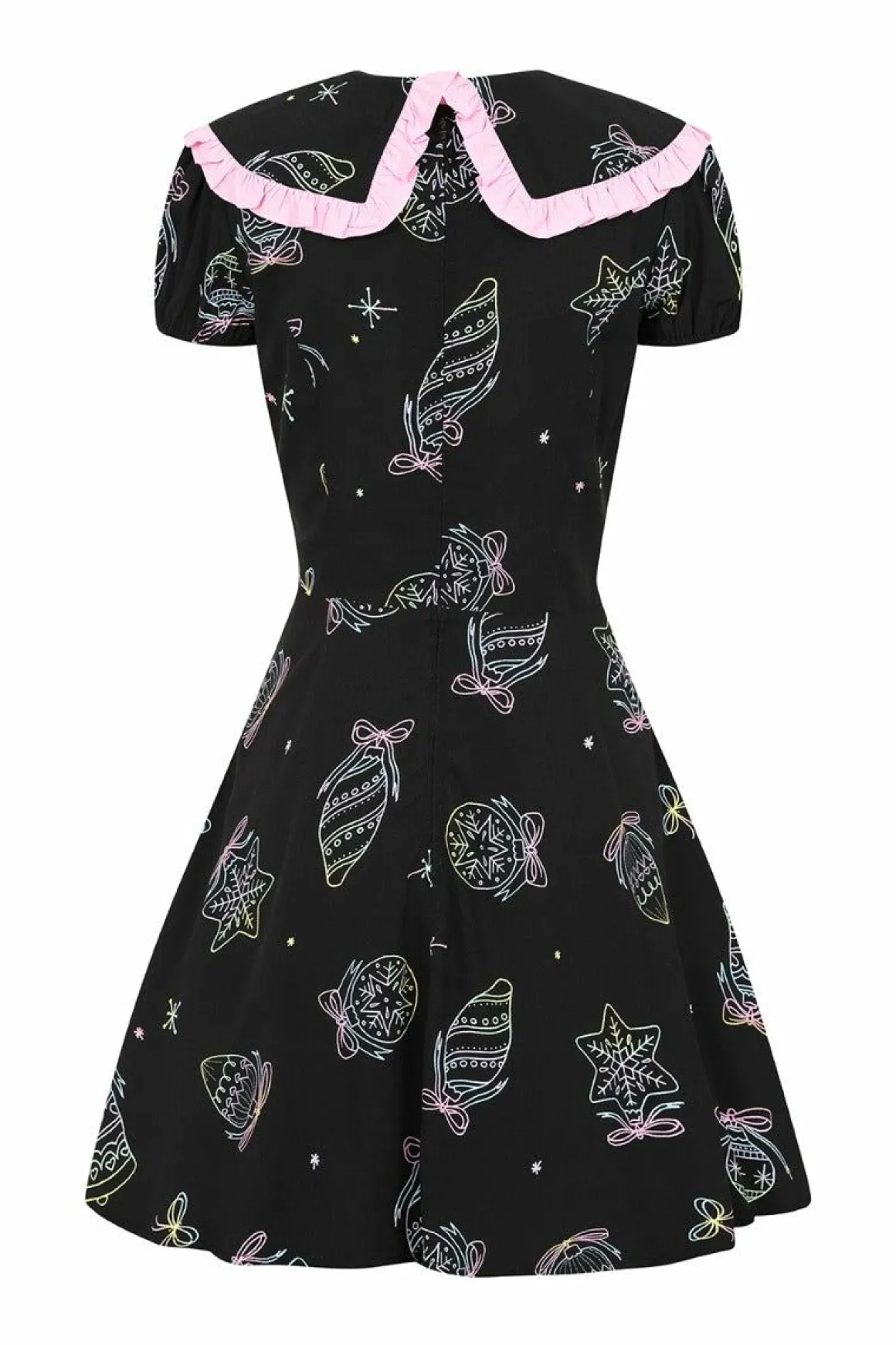 Always Merry & Bright In Our Merry Mini Dress.Black Fit-And-Flare Mini Dress Printed With Pastel Festive Illustrations F…