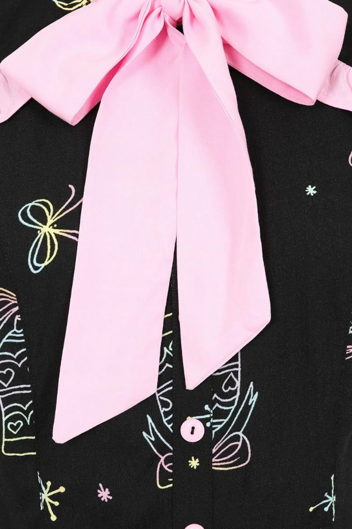 - Black Fit-And-Flare Mini Dress Printed With Pastel Festive Illustrations