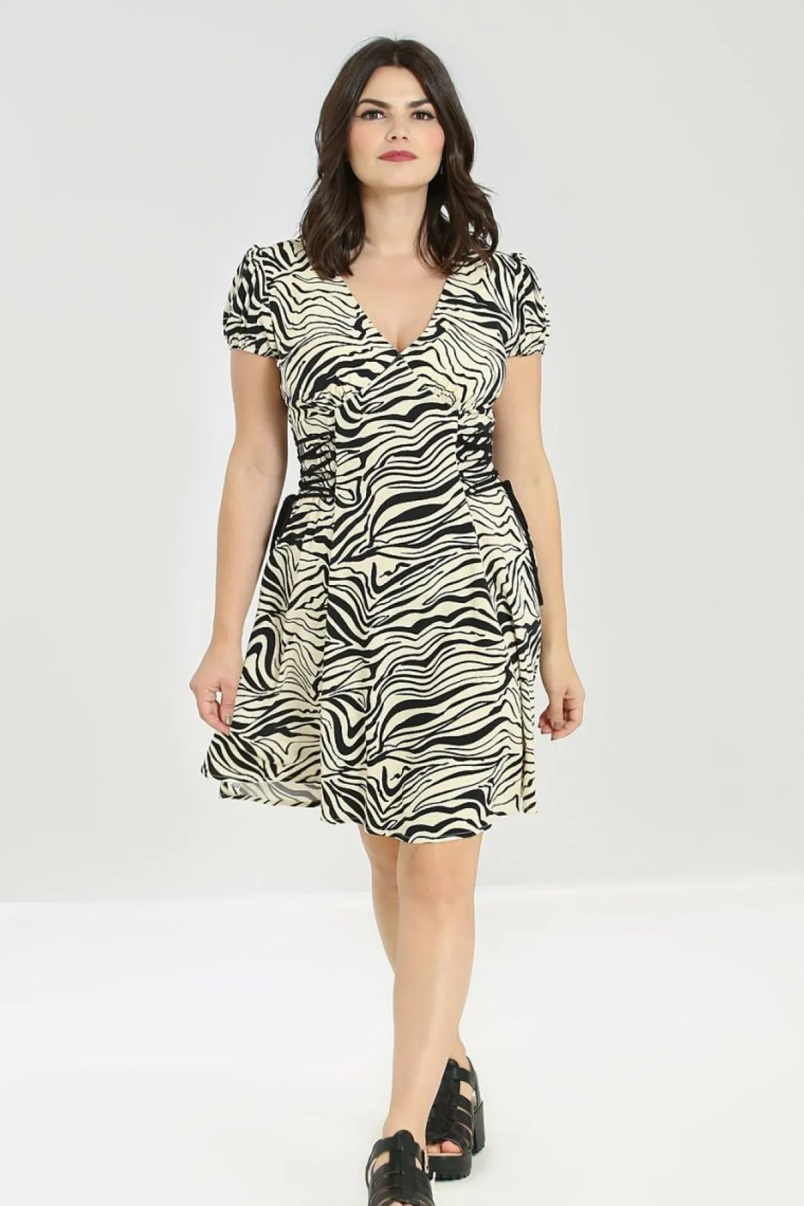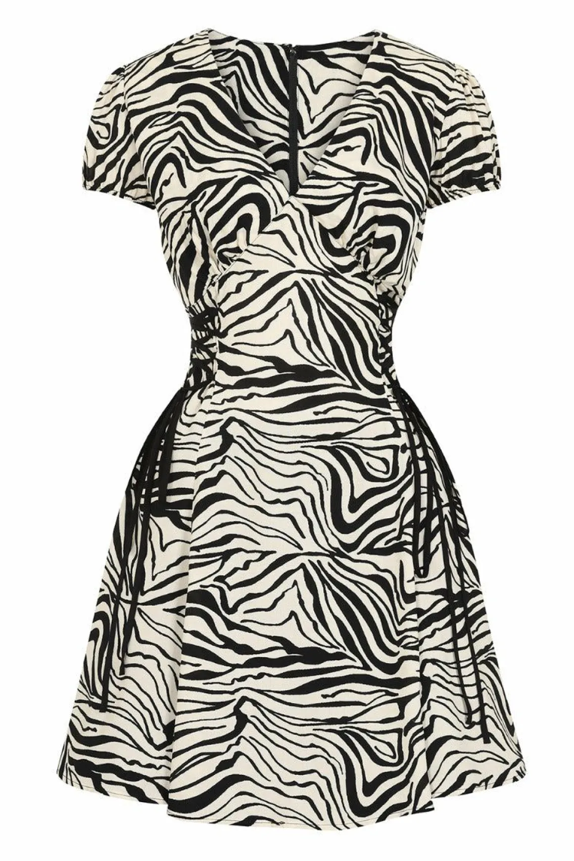 - Black & Cream Zebra Print Mini Dress Featuring Black Lace Up Detailing On Either Side