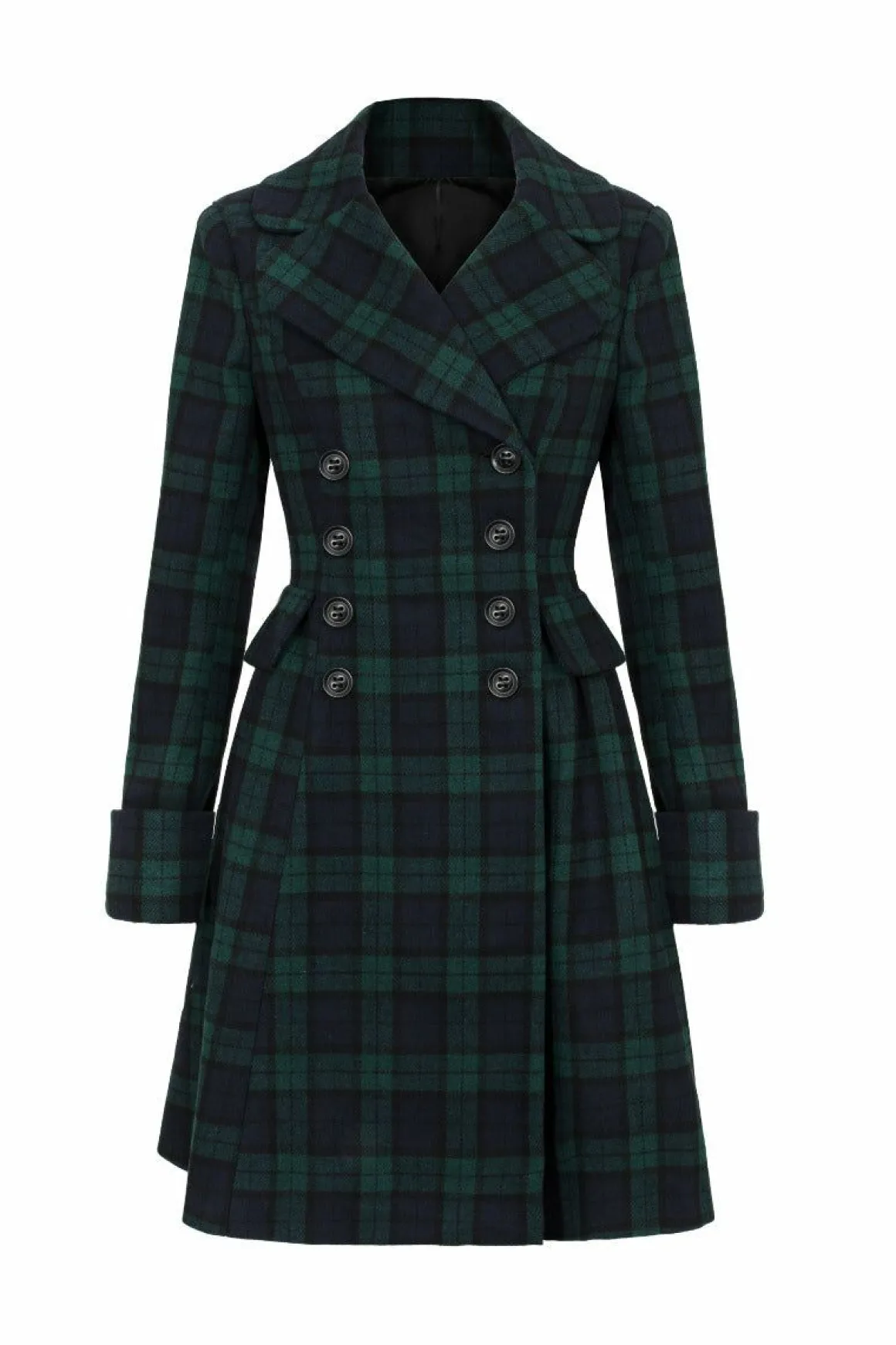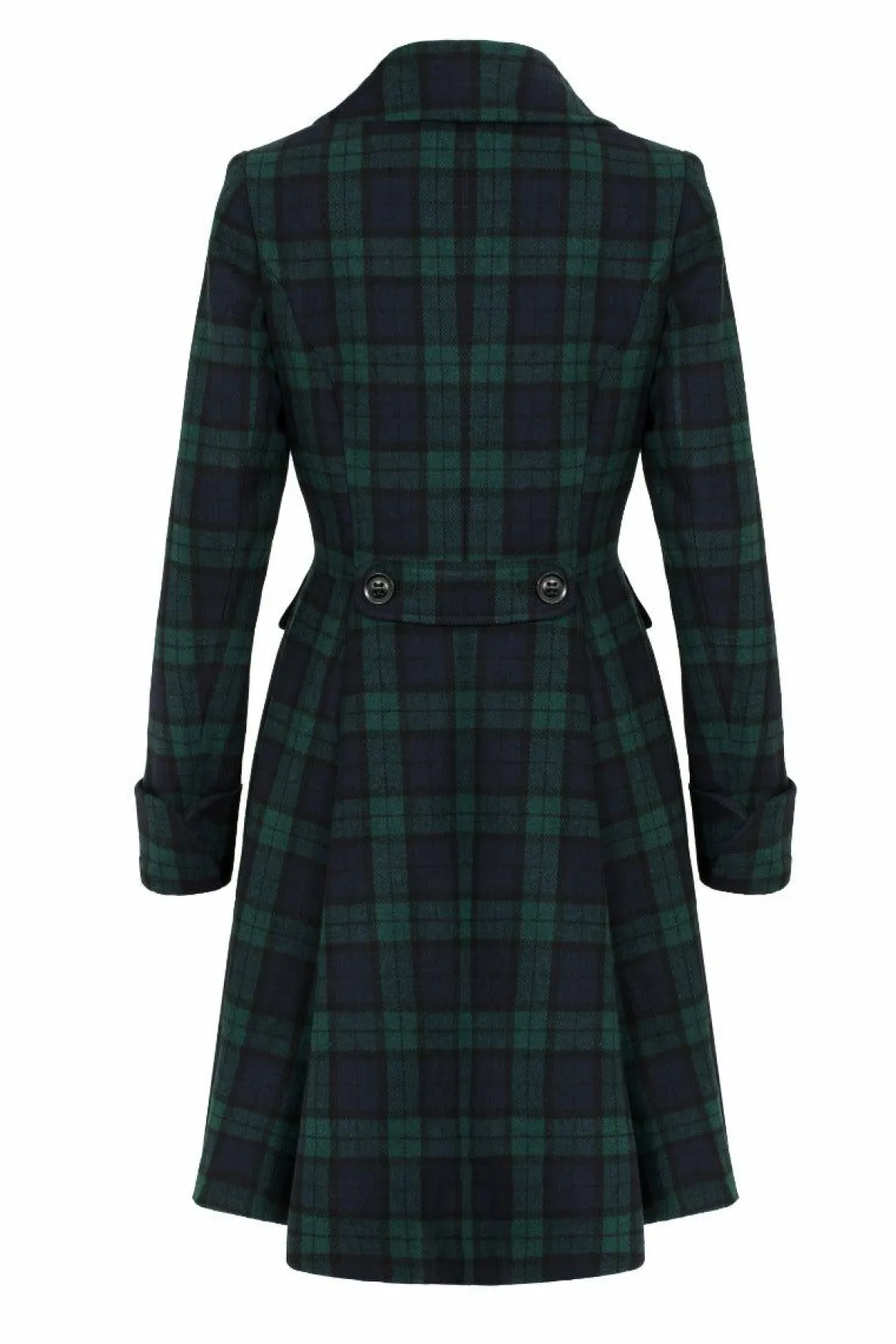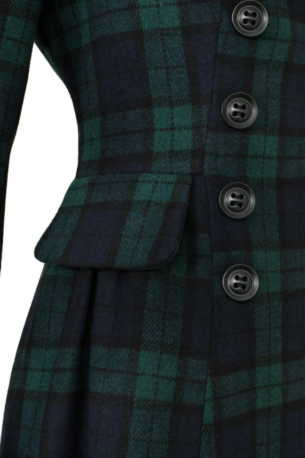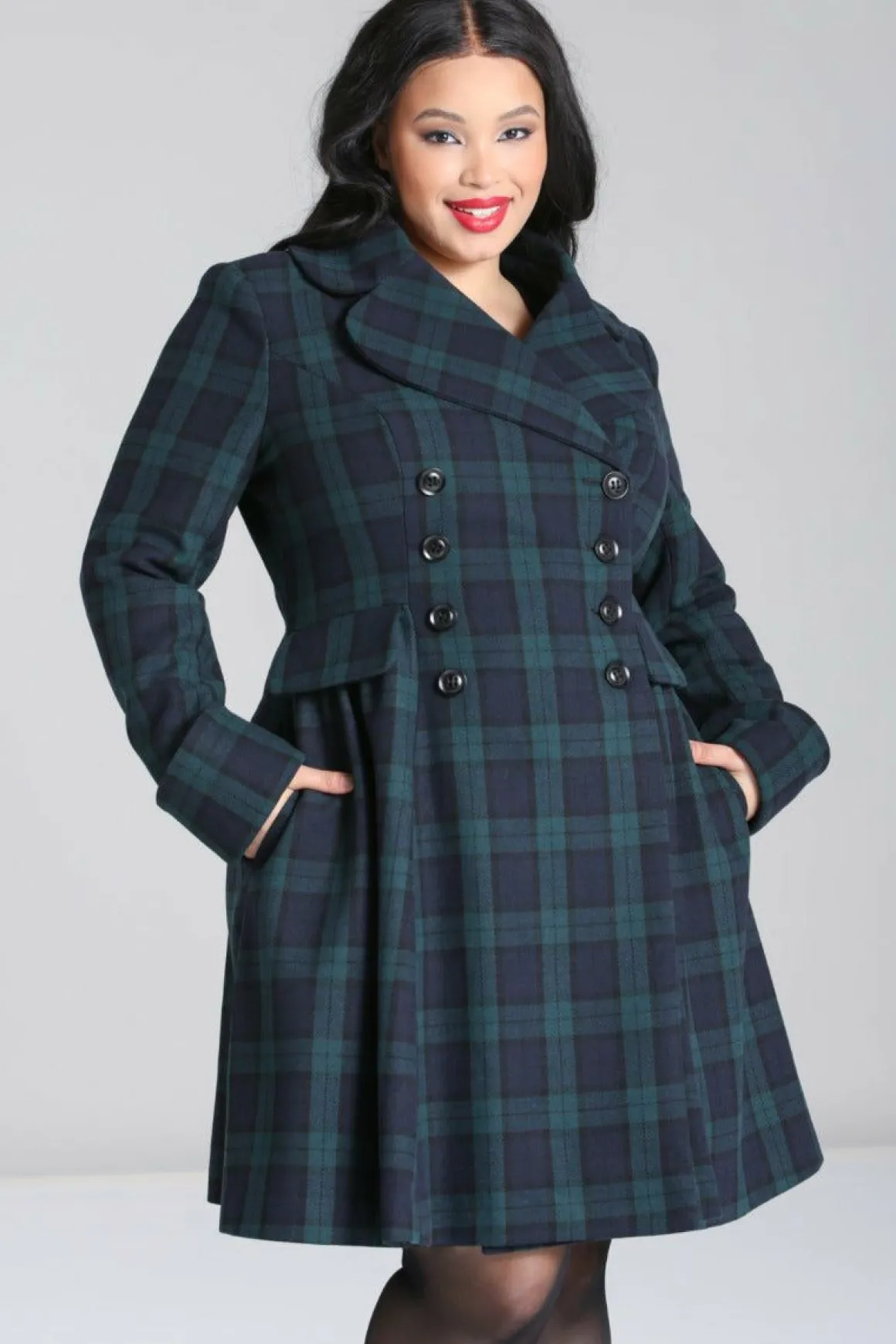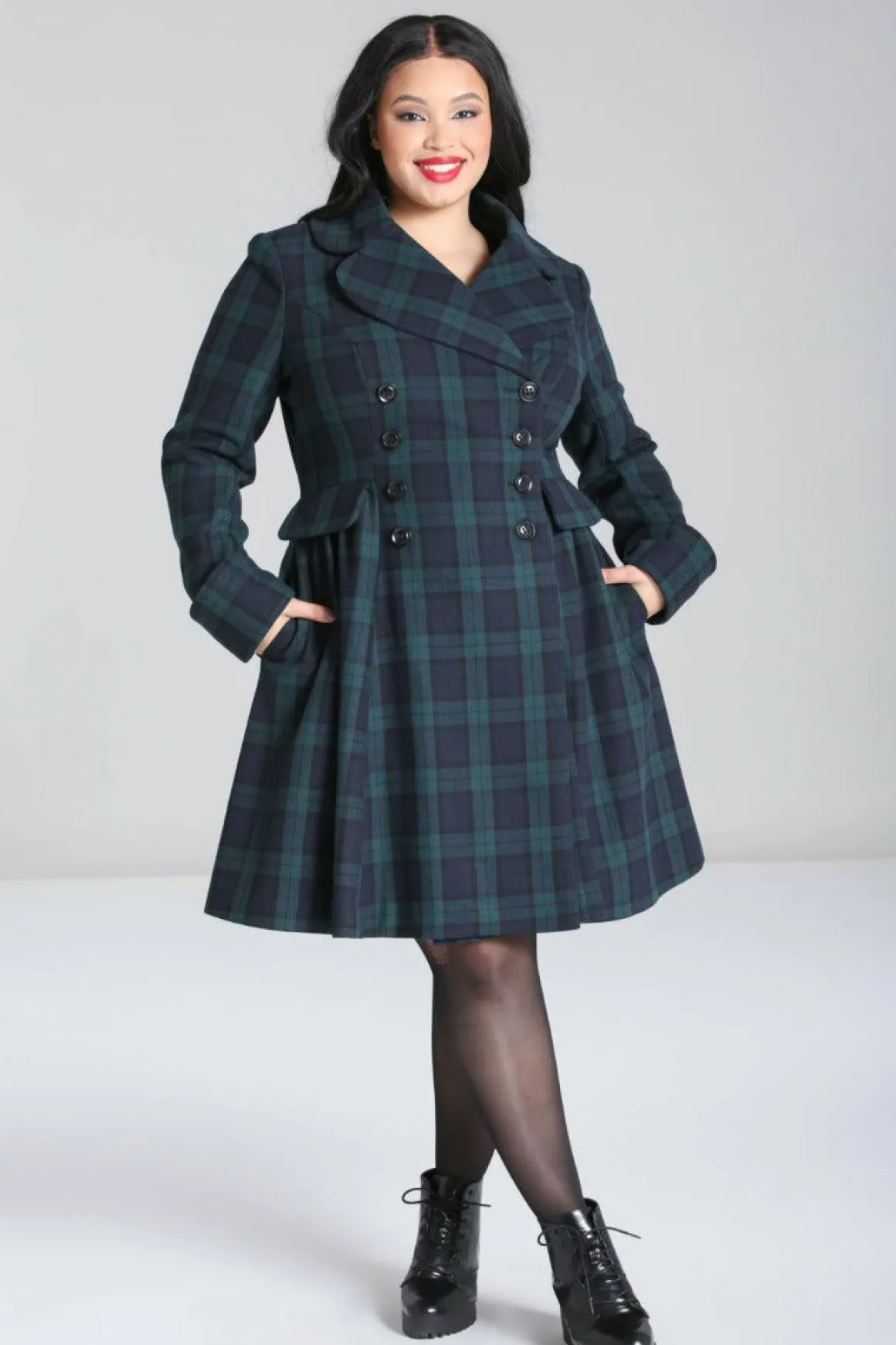 Navy & Green Tartan CoatFully LinedLarge Collar In Self FabricDouble Breasted Button Up FrontFake Pockets On The Front W…