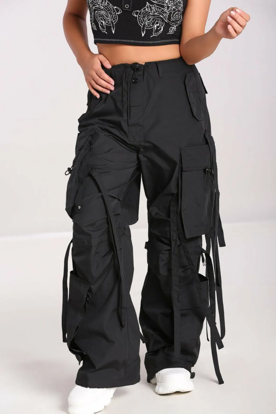 - 2 Large Cargo Style Pockets On Both Legs With Hanging Ribbon Detailing