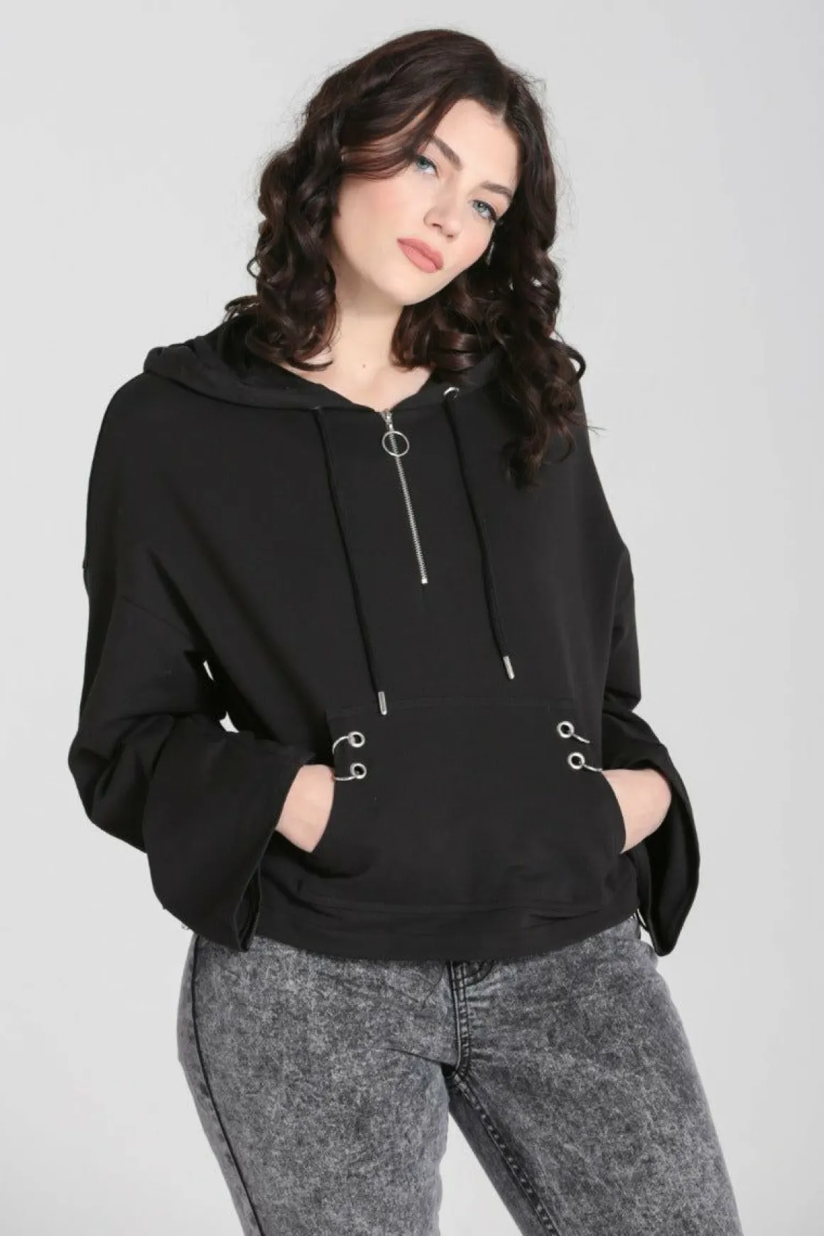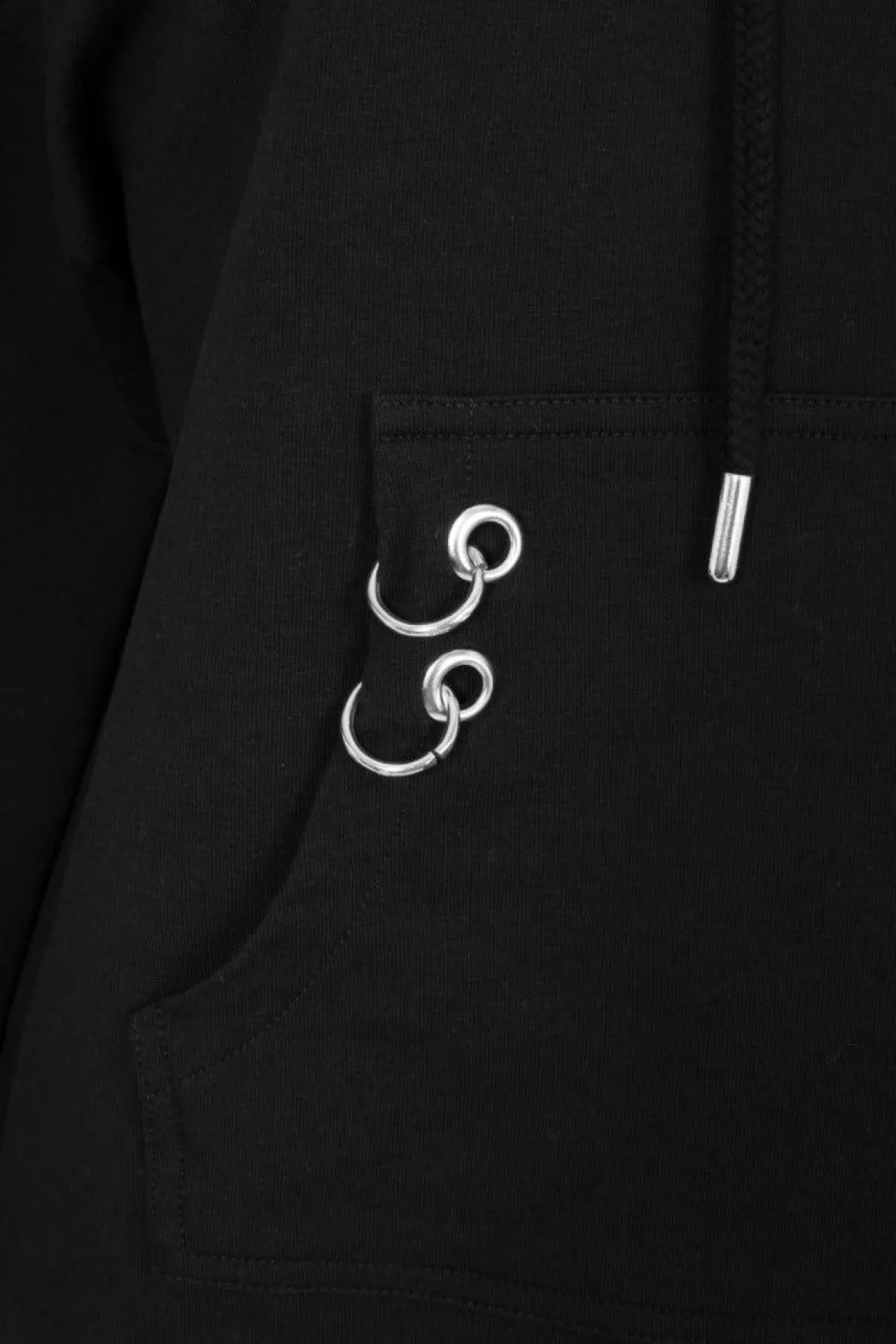 Black Hoodie Drawstring Hood In BlackSilver Exposed Zipper Detail On Chest With Ring PullerFront Central Pocket With 4 S…