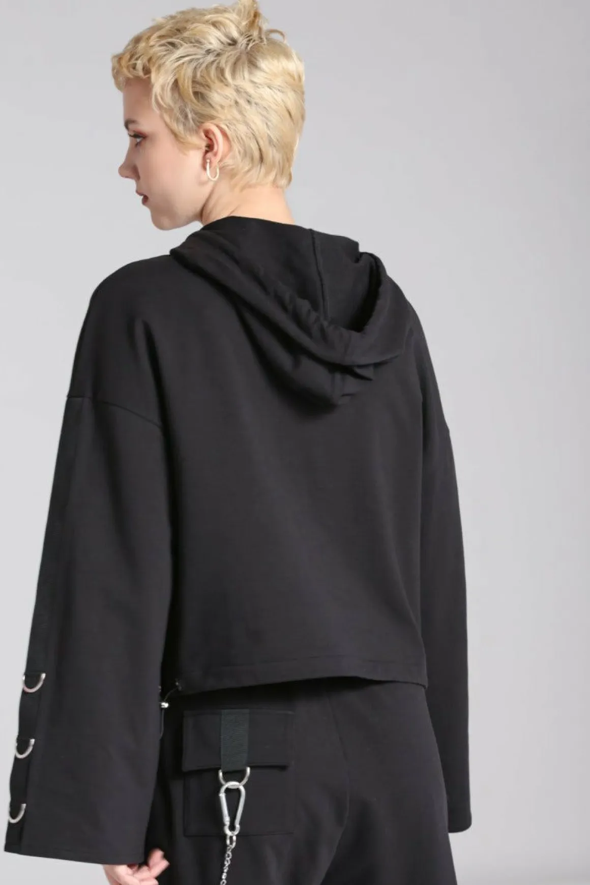 - Long Wide Hem Sleeves With Wide Ribbon Down Arm With Large Silver D-Rings