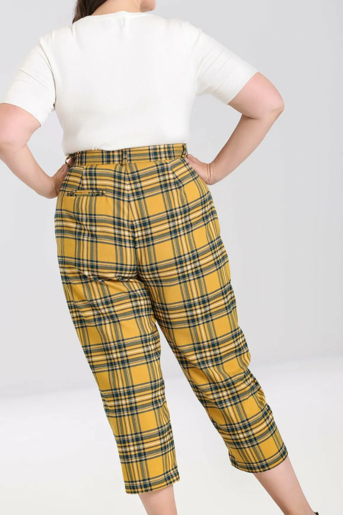 - Mustard Tartan Cropped Trousers With Tapered Leg
