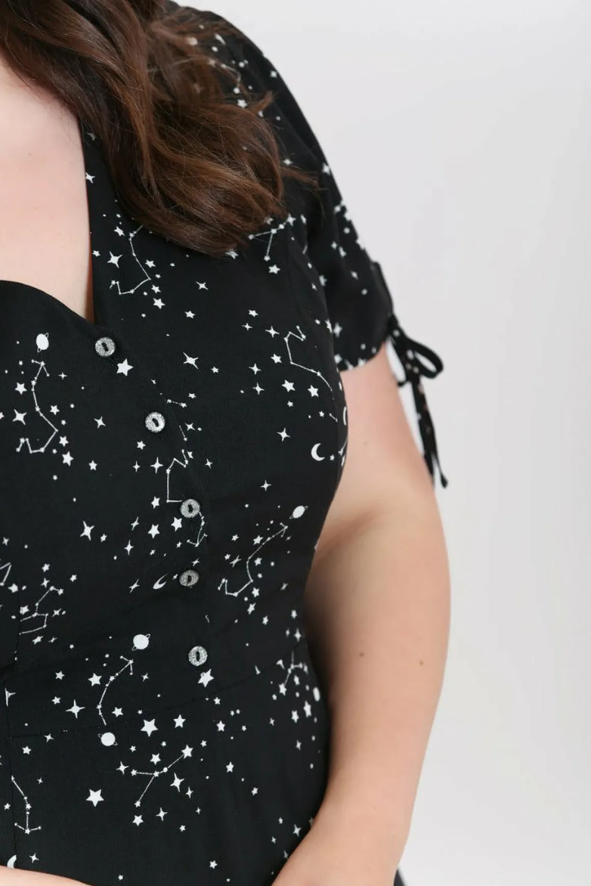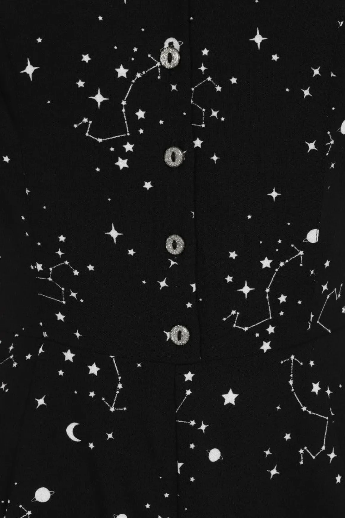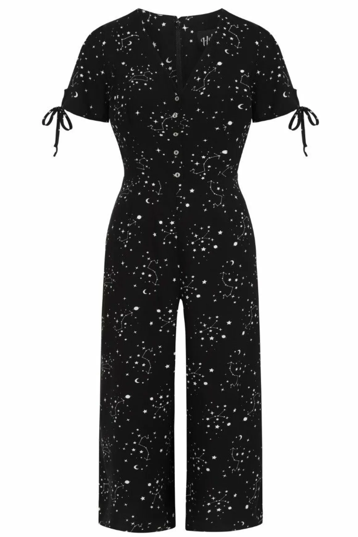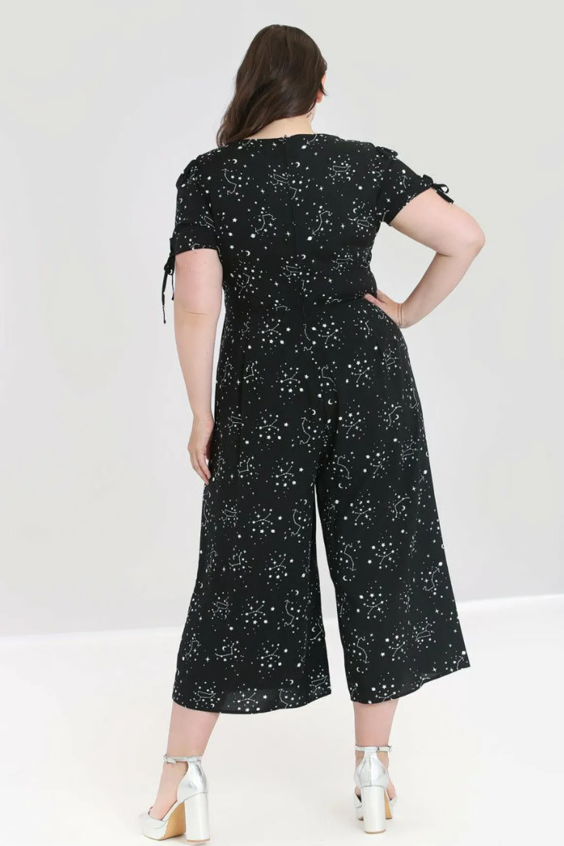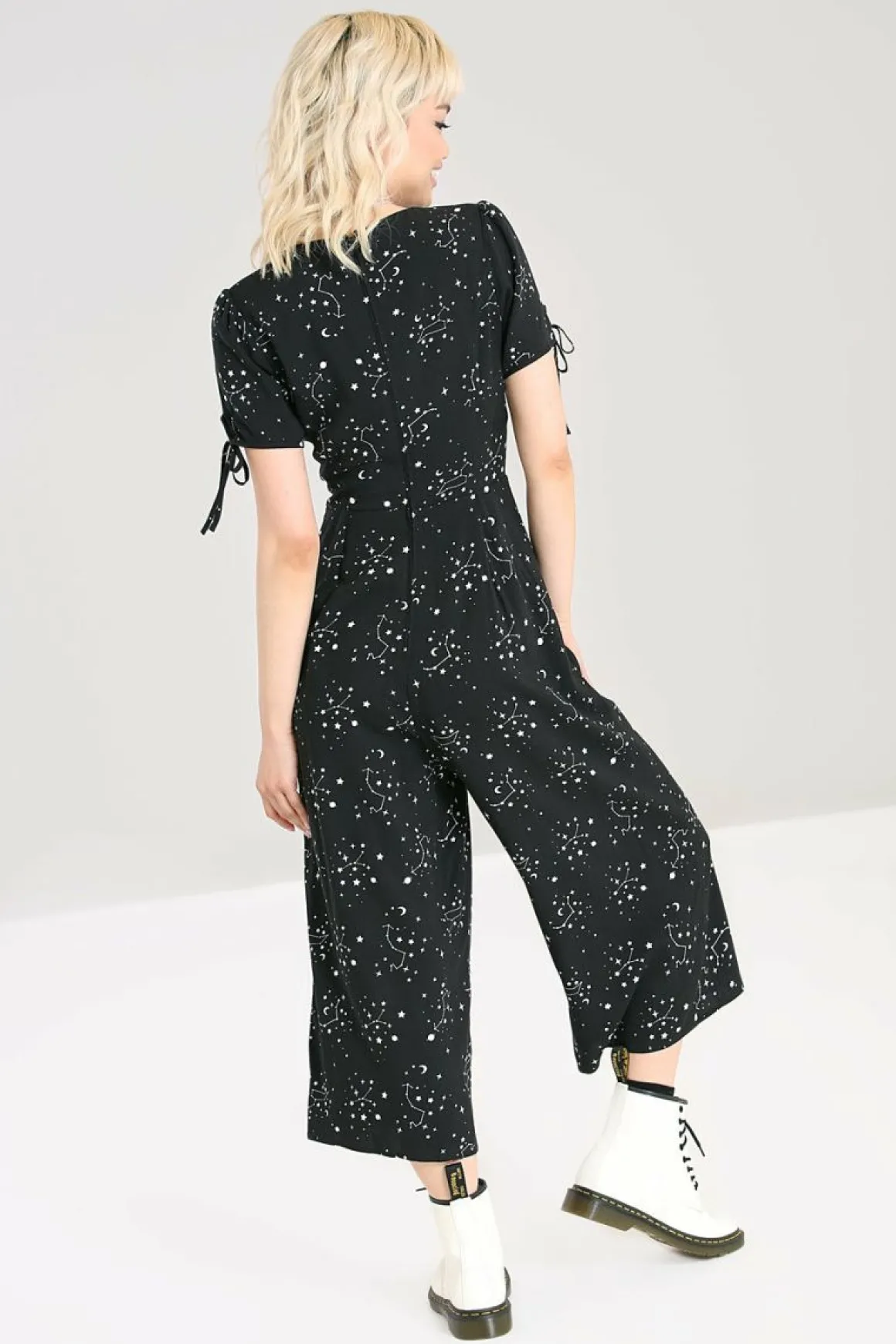 - Black Jumpsuit Printed With Contrasting White Celestial Stars