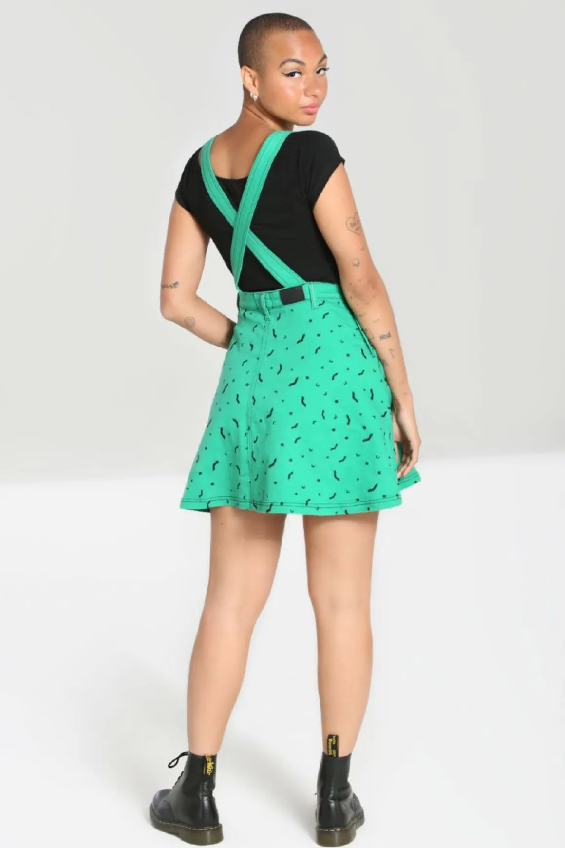 Black Pinafore DressBats & Moons Embroidery All Over In Contrasting Colour Pocket On Front PanelCross Over Adjustable St…