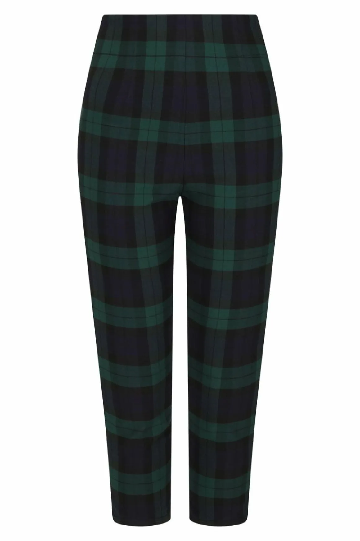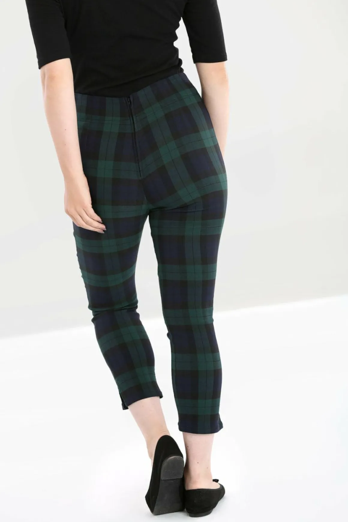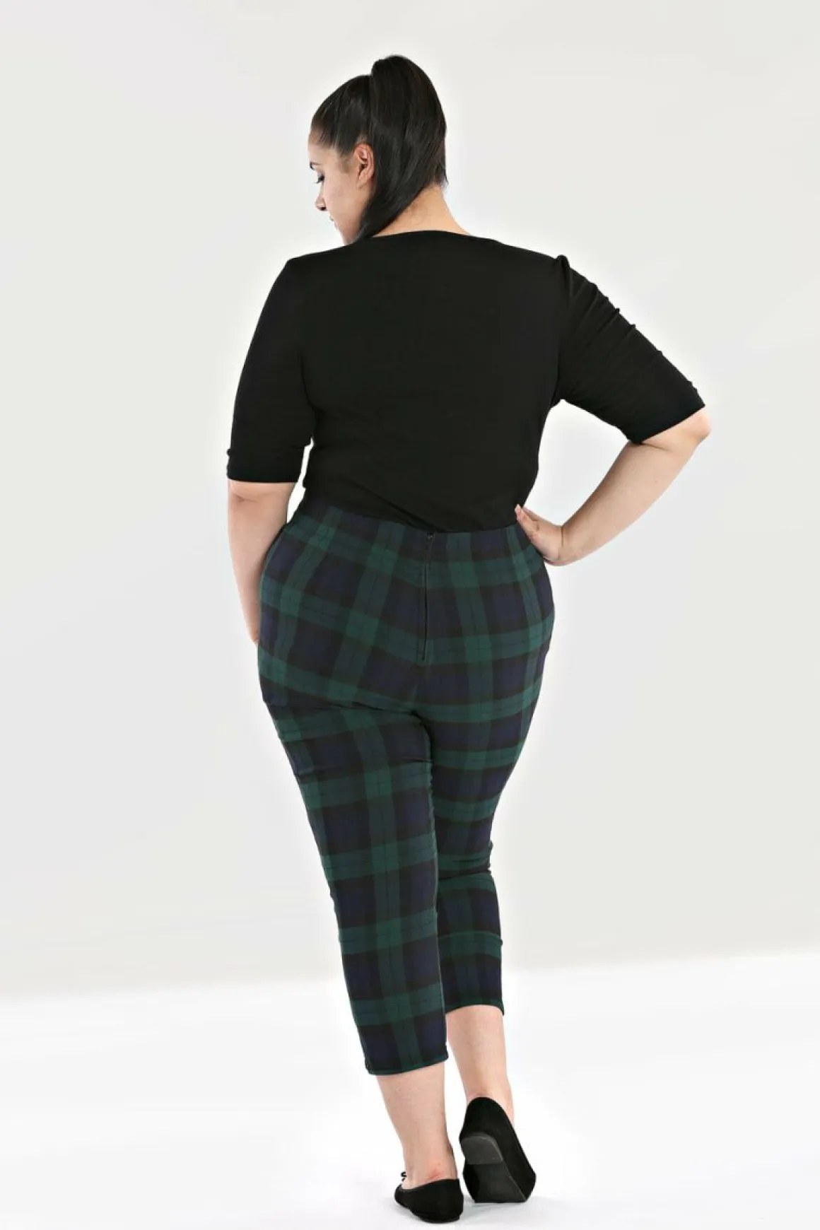 Fitted Capri Trousers In Navy/Green Tartan.Self Fabric Waistband.Darts In The Front To Shape.Centre Seam On The Back.V-S…