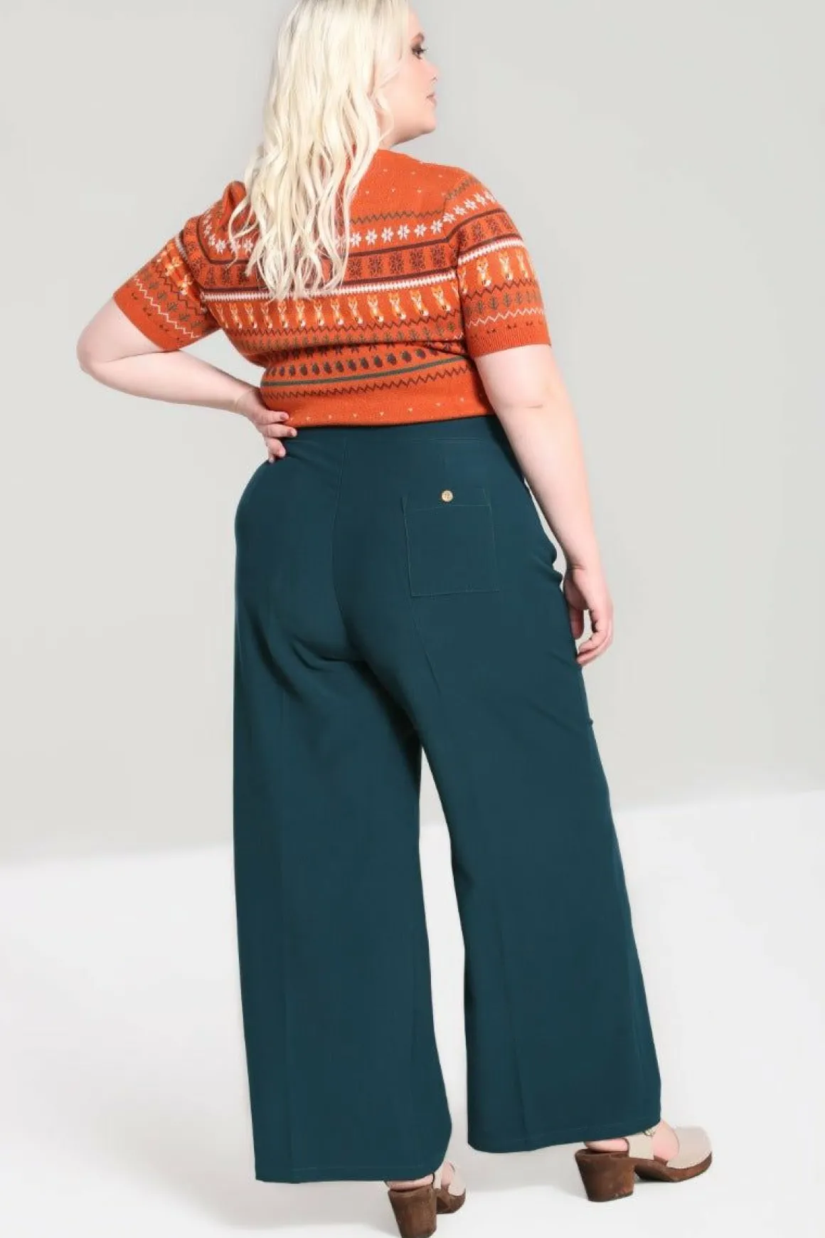 - Wide Leg, Full Length Trousers Available In Brown And Teal