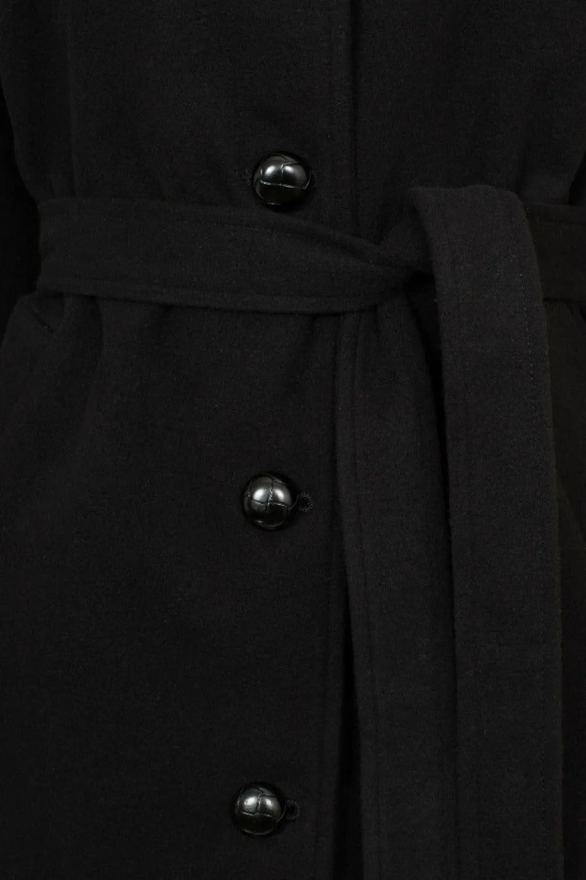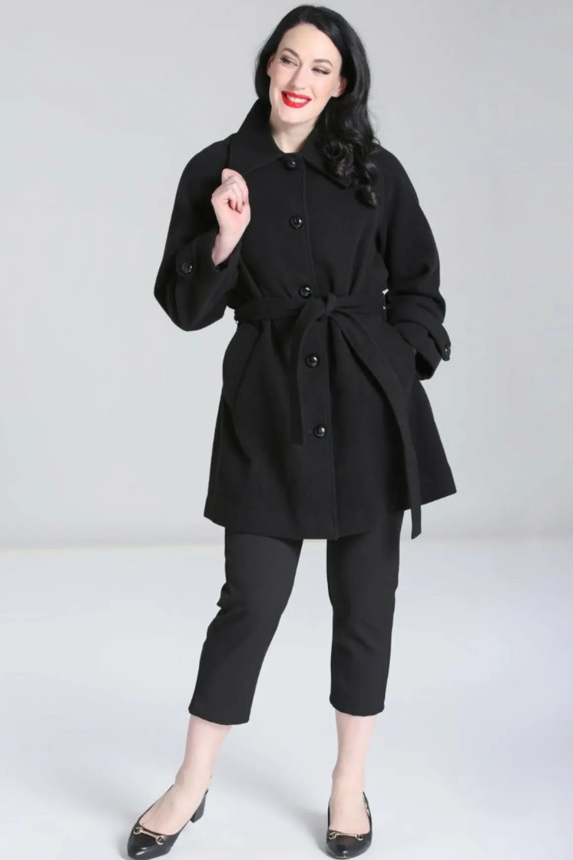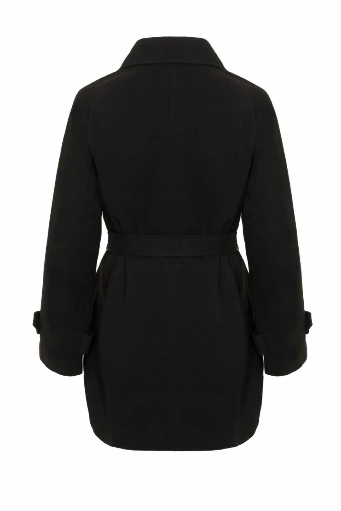 Black CoatFully Lined Large Pointed Collar In Self Fabric Black Button Up Centre Loose Fit Large Tab Detail In Self Fabr…