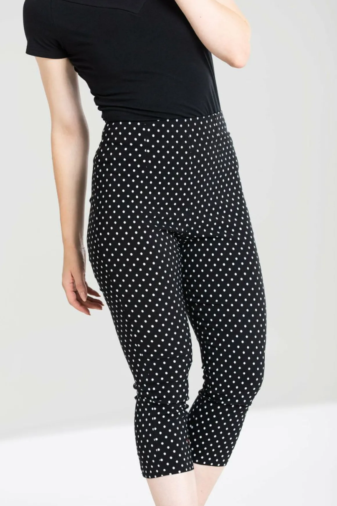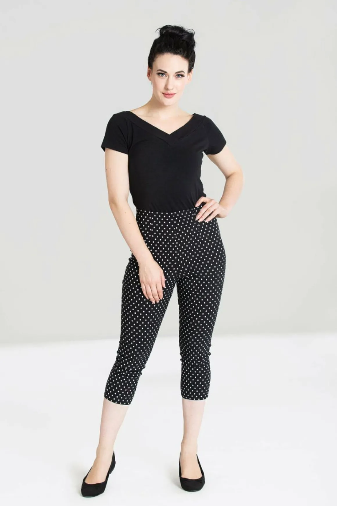 Fitted Capri Pants/Pedal Pushers.Black And White Polka Dot.Self Fabric Waistband.Darts In The Front To Shape.Centre Seam…