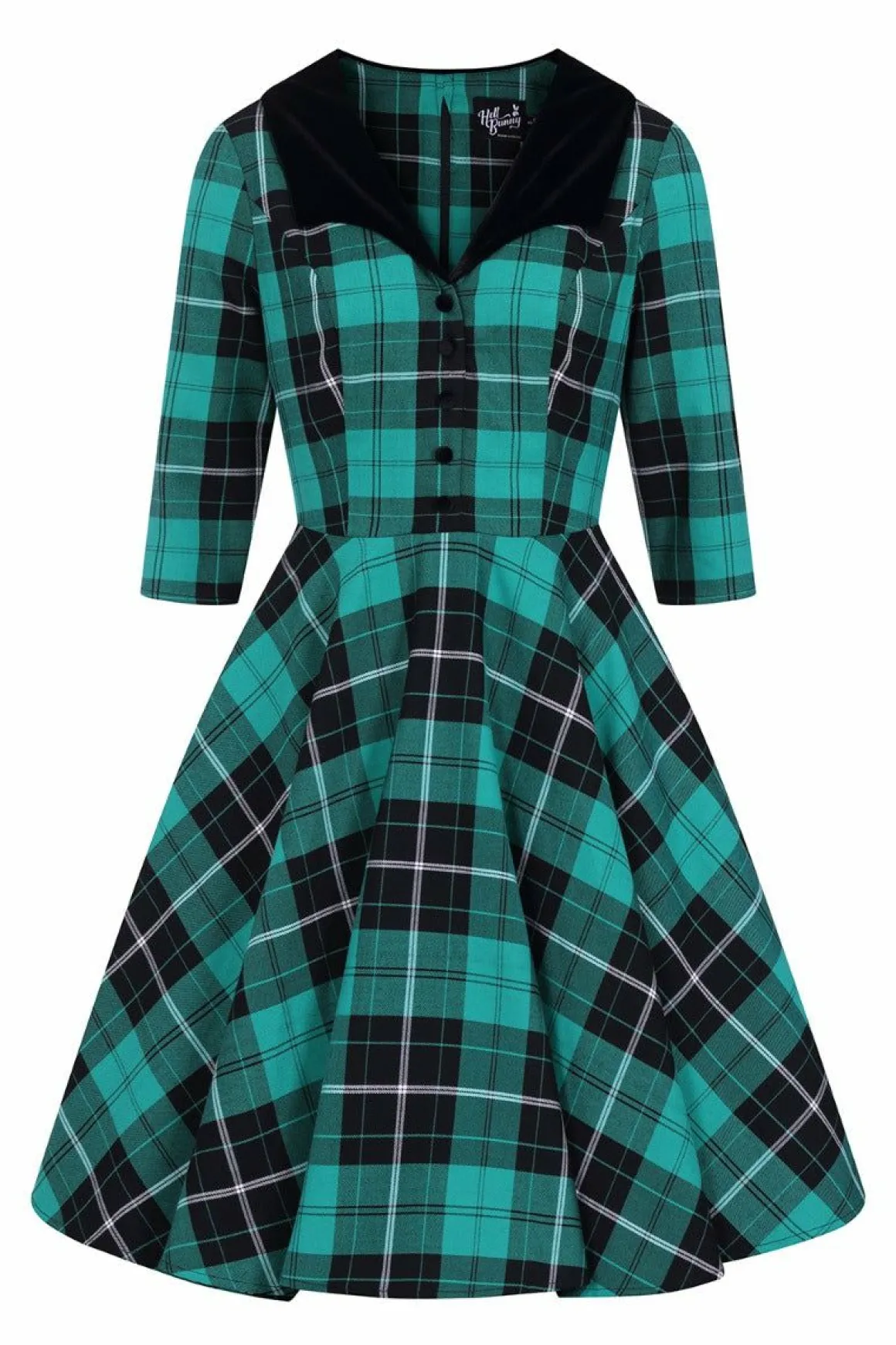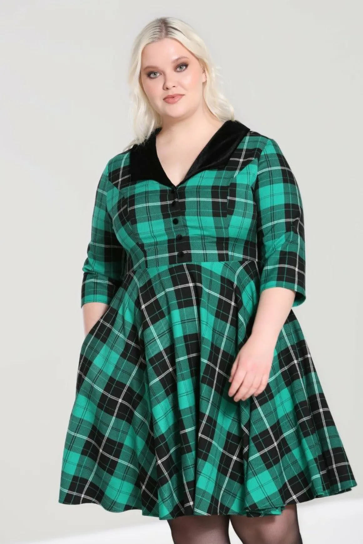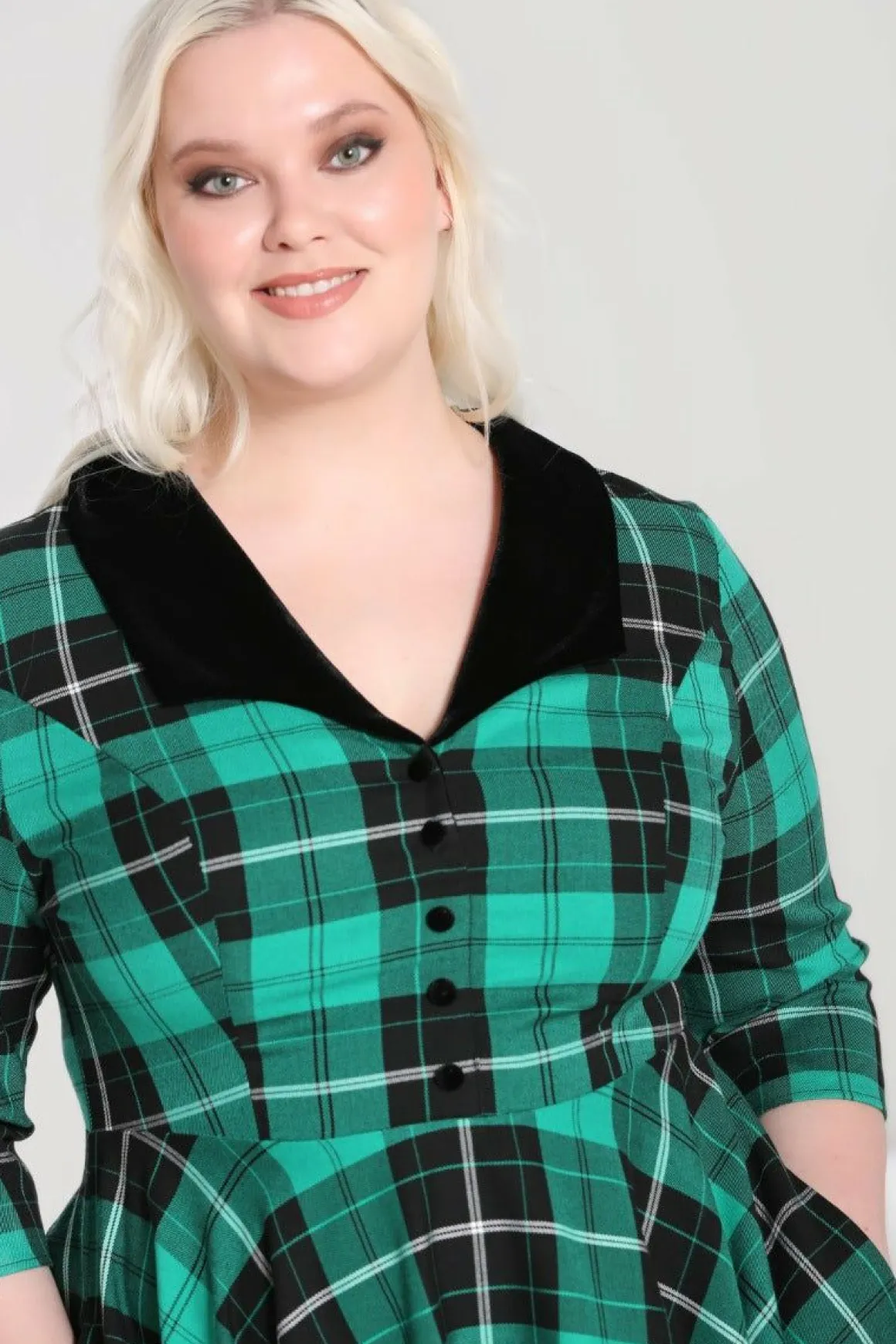 - Green And Black Tartan Fit-And-Flare Mid Dress