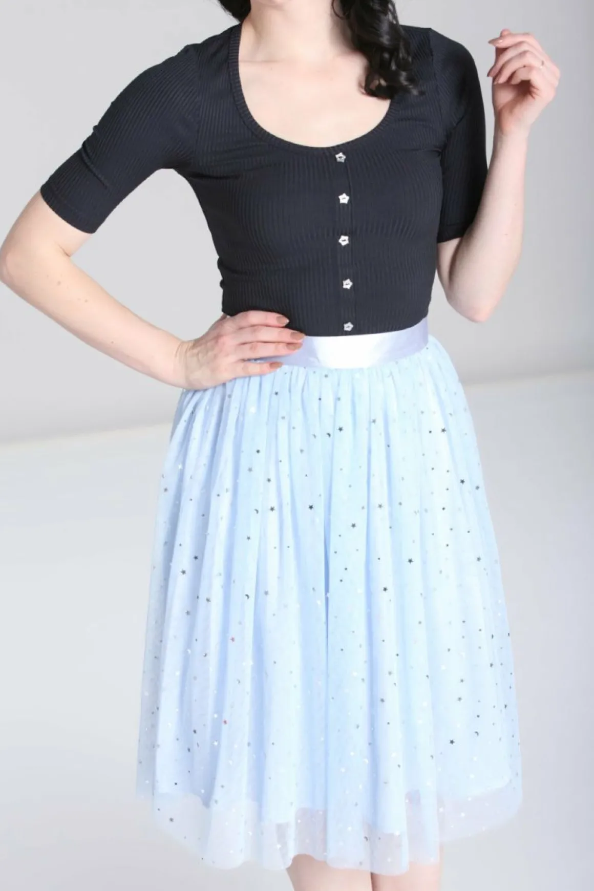 Tulle Skirt In Black Or Pastel BlueSparkley Stars & Moons On The Tulle Outer LayerSkirt Is Lined With Matching Satin Lik…