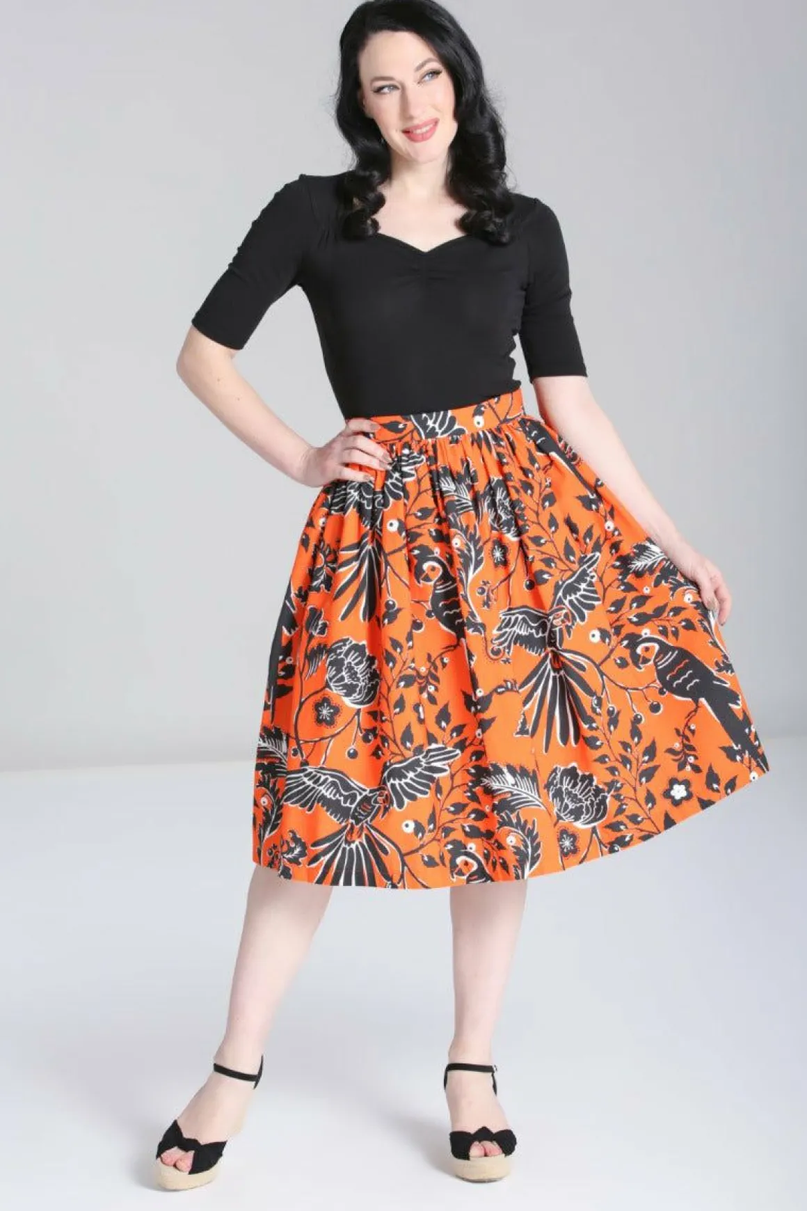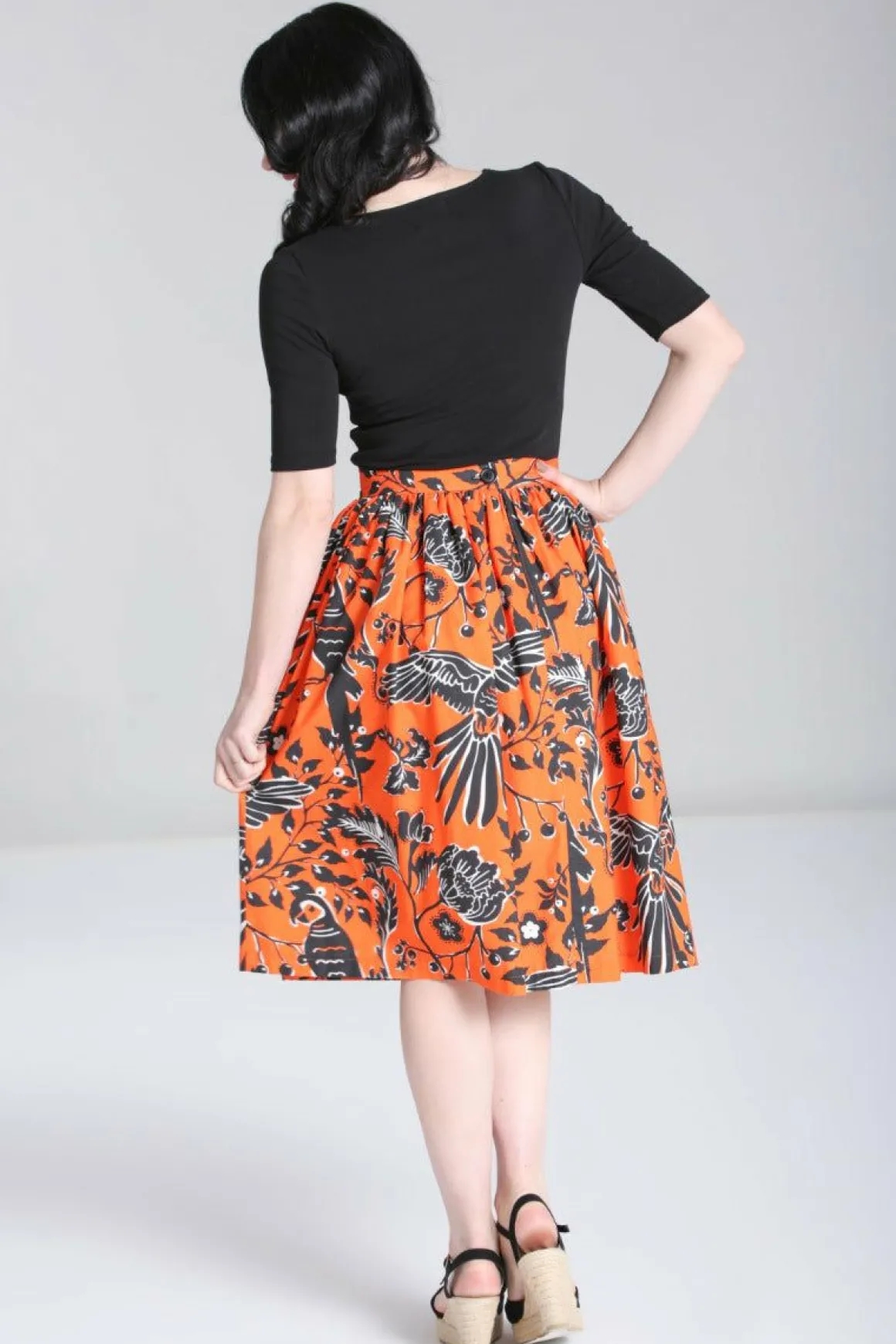 Printed Cotton SkirtPrint Is Of Large Parrots And Floral In Black And White On A Orange BackgroundWaistband In Self Fabr…
