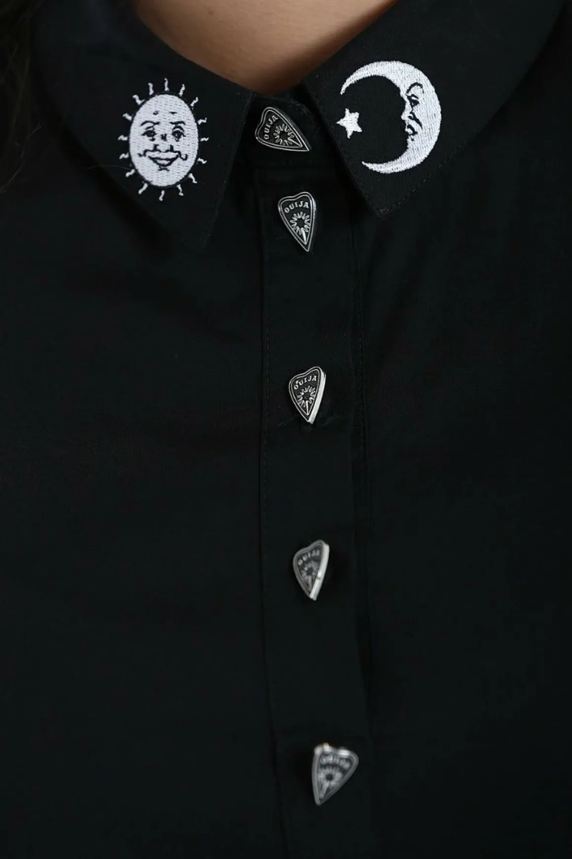 - Decorative Ouija Buttons On The Placket And Sleeves