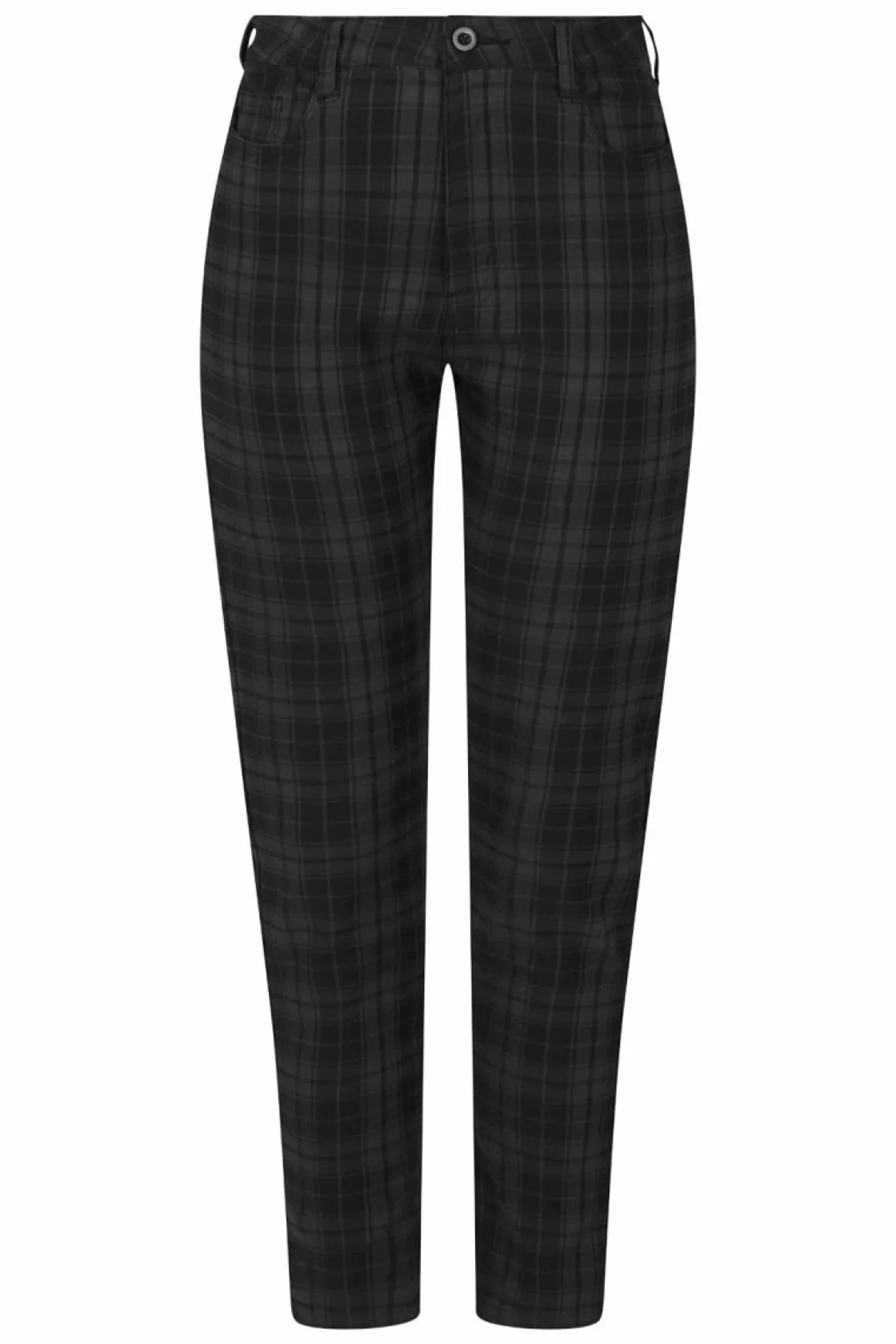 - Grey & Black Full Length Tartan Trousers With Zip And Button Fastening