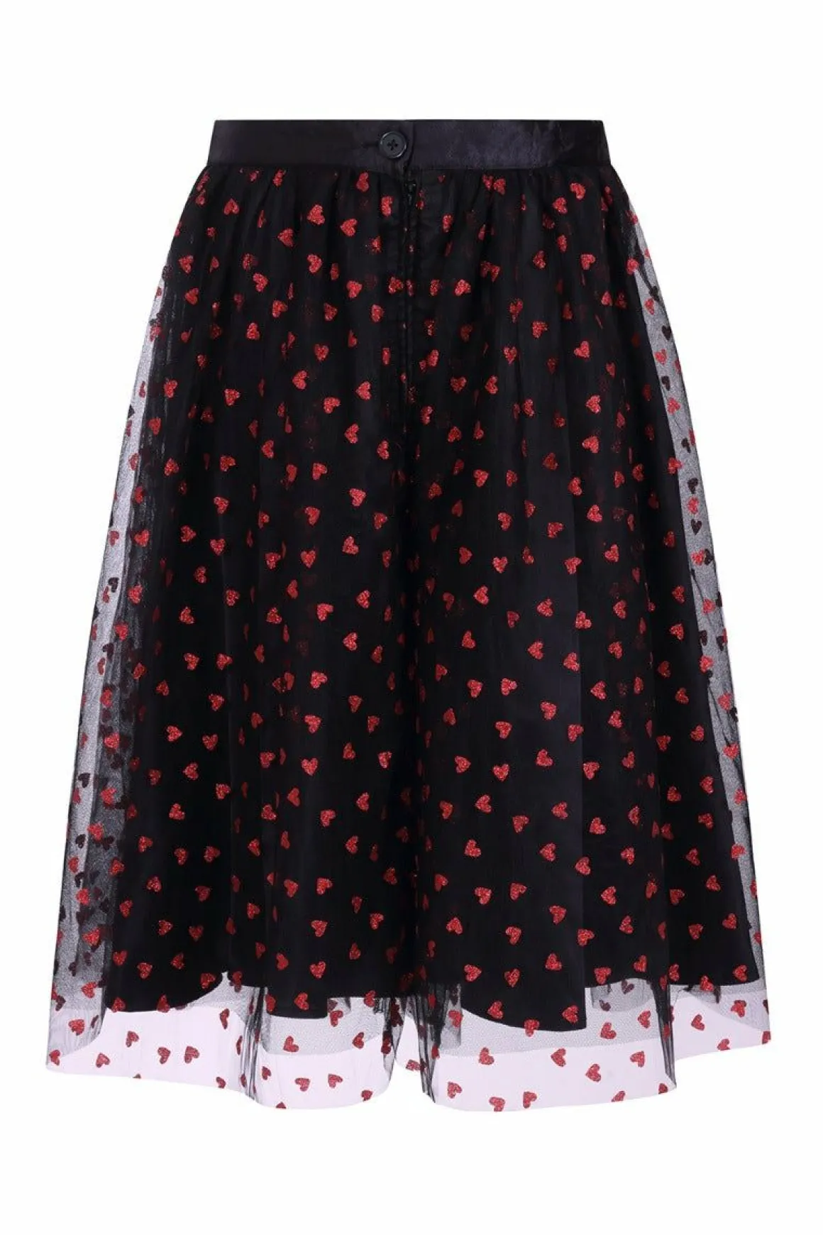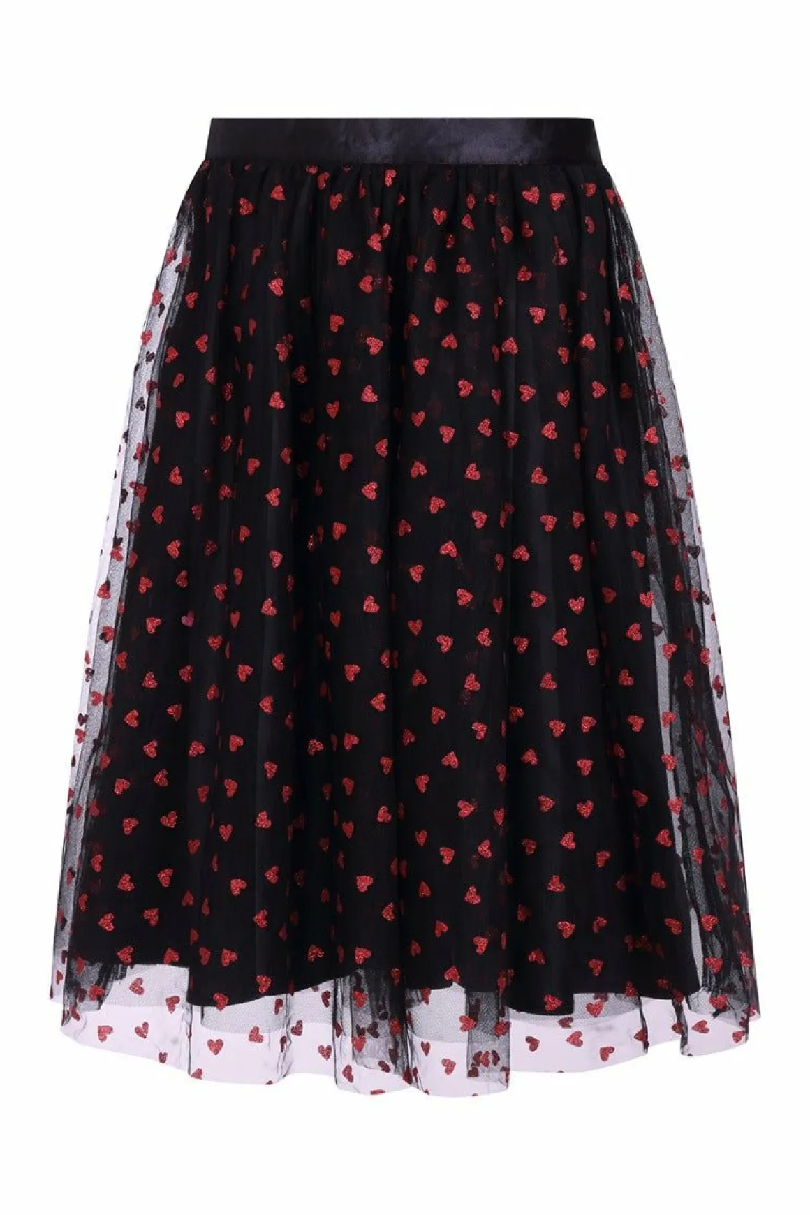Love Is In The Air With Our Super Sweet Bianca Skirt!Black Tulle Skirt Decorated With Scattered Red Glitter Hearts Flatt…