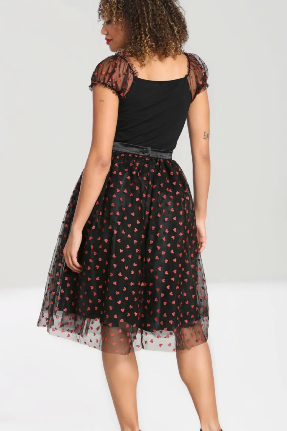 - Black Tulle Skirt Decorated With Scattered Red Glitter Hearts