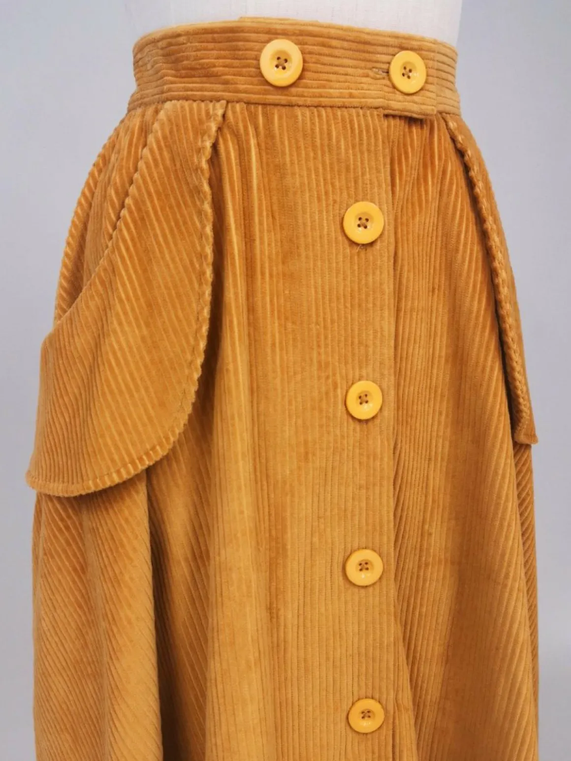 Chunky Corduroy Skirt, In Various ColoursA-Line Skirt To The CalfLarge Front Centre Placket With Button FasteningLarge P…