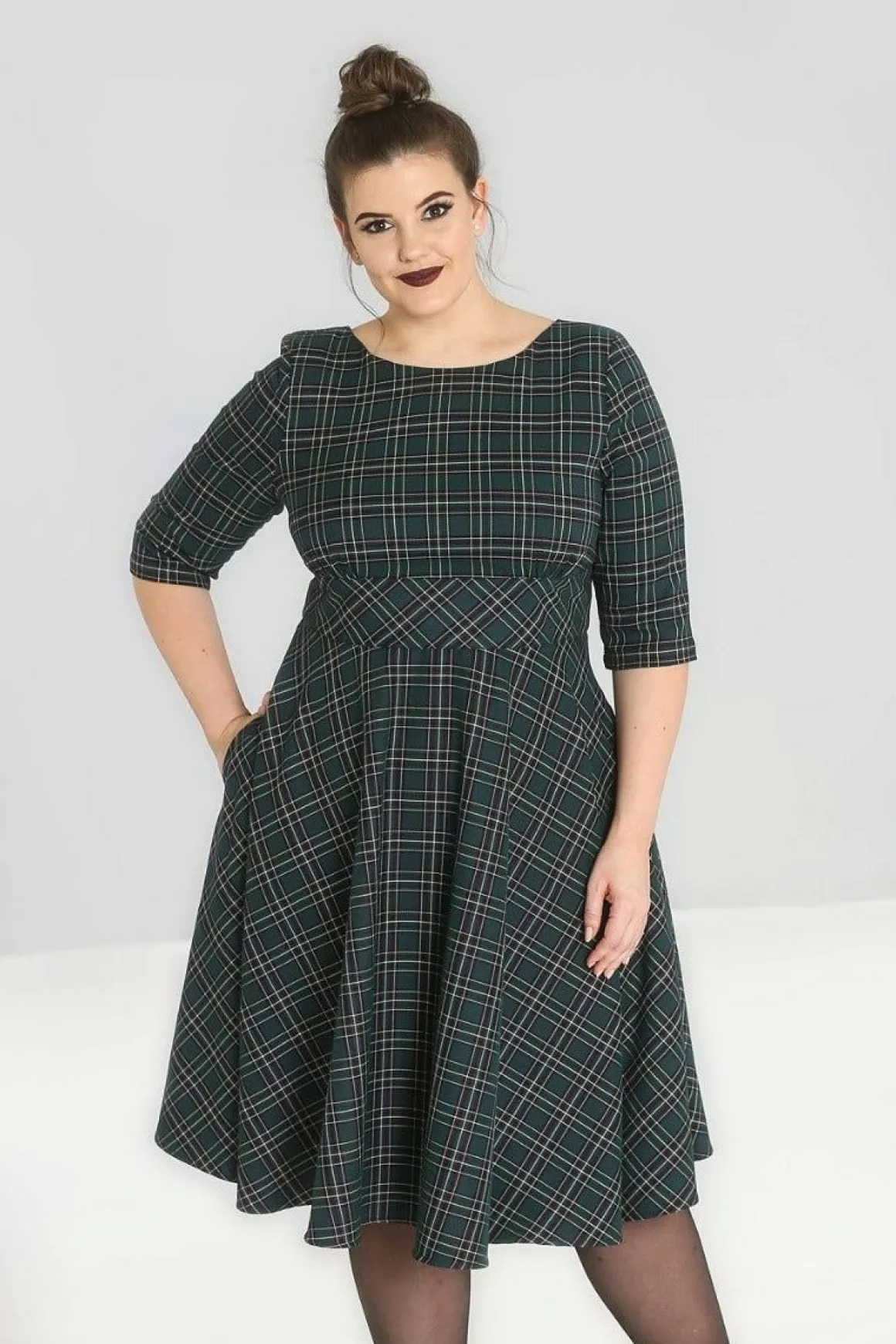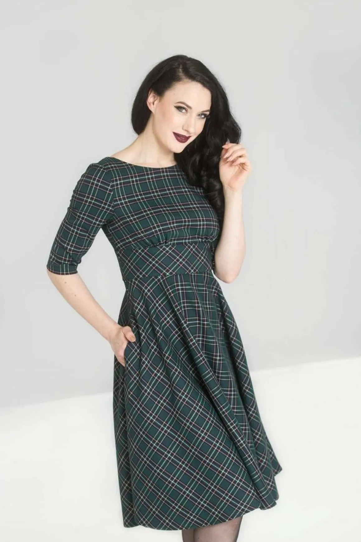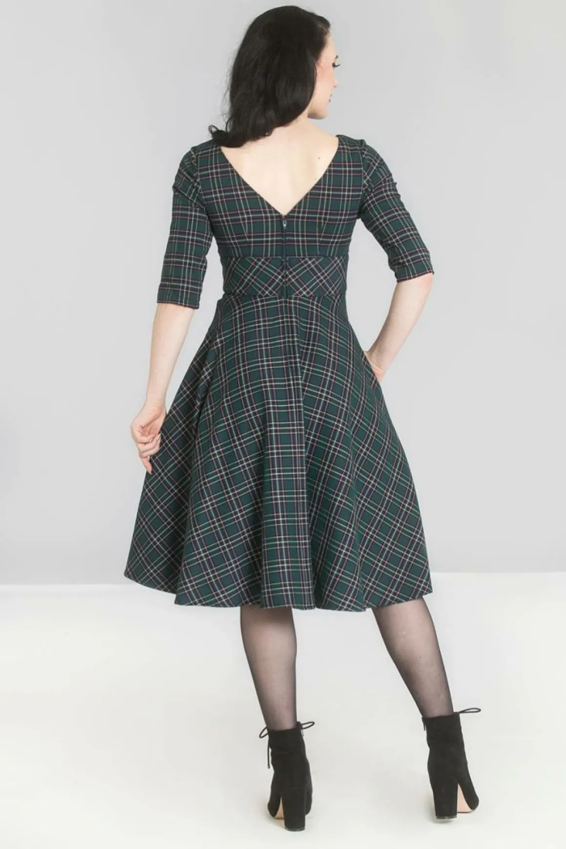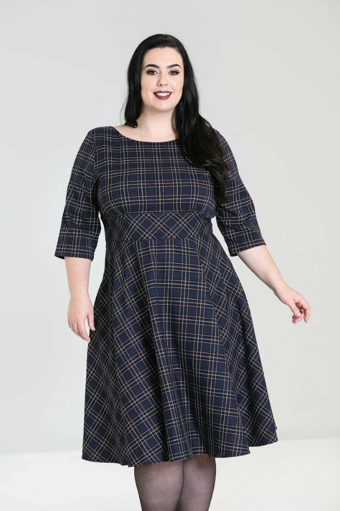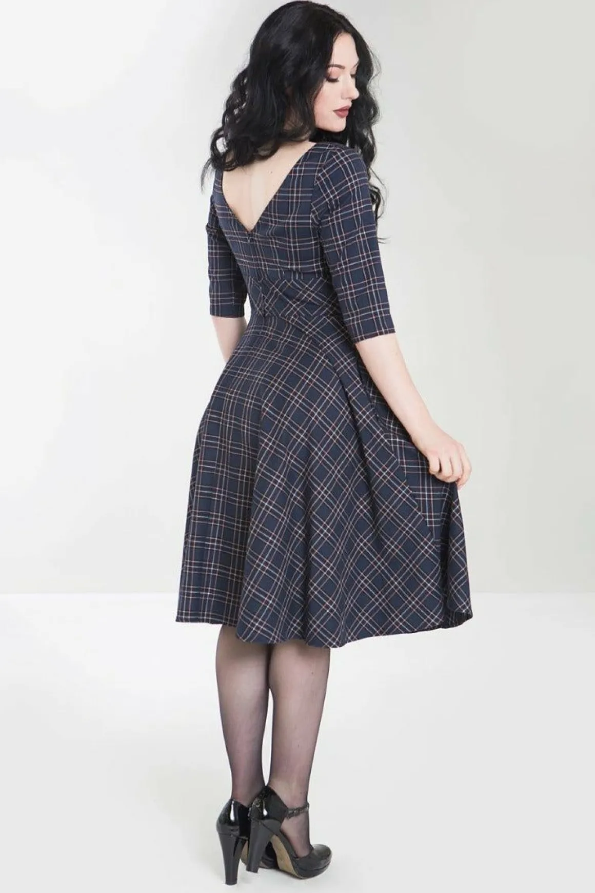 - 50’S Dress In Navy Tartan.