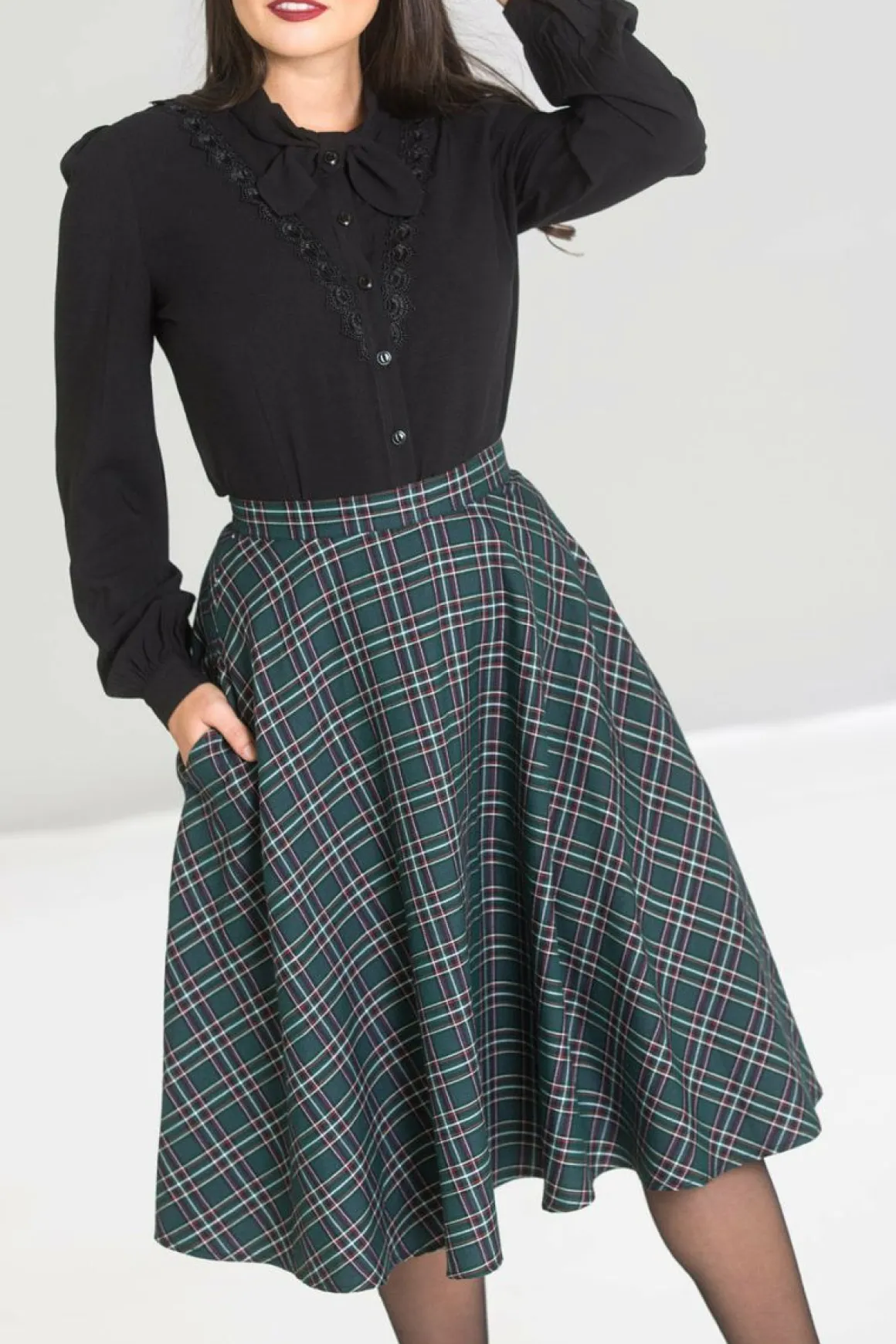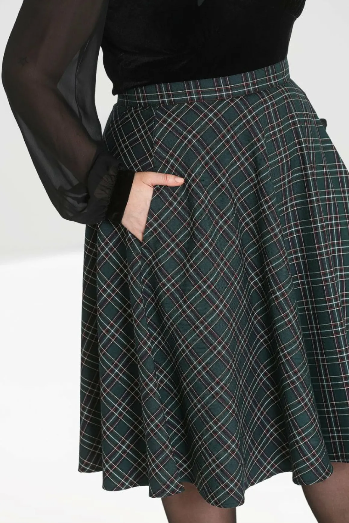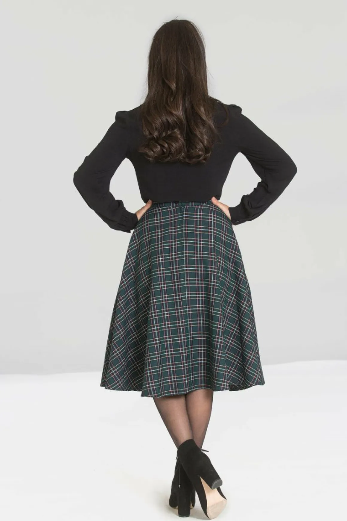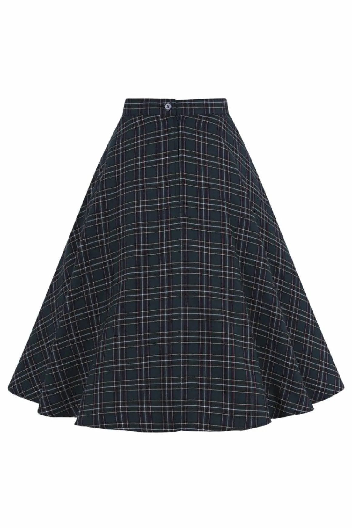 - 50’S Skirt In Green Tartan With White, Red And Navy Stripes.