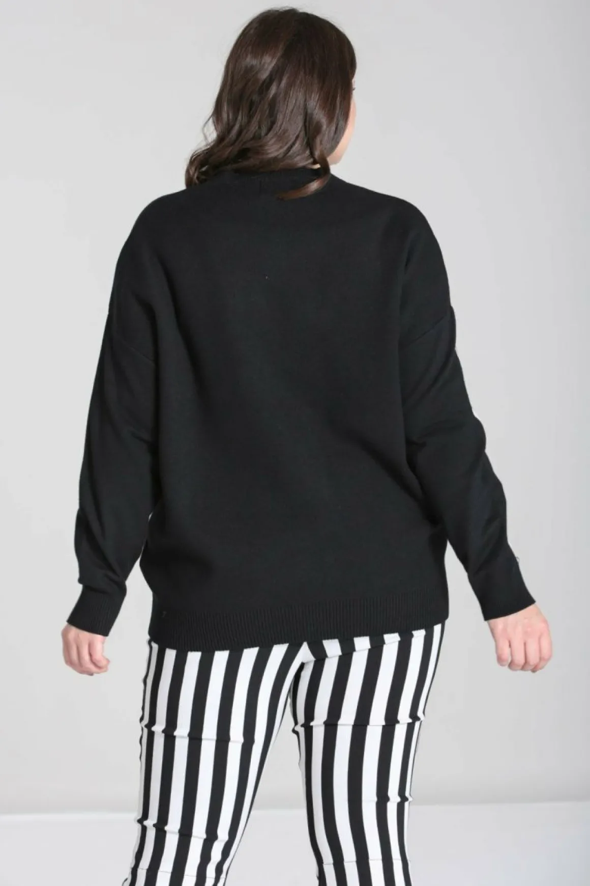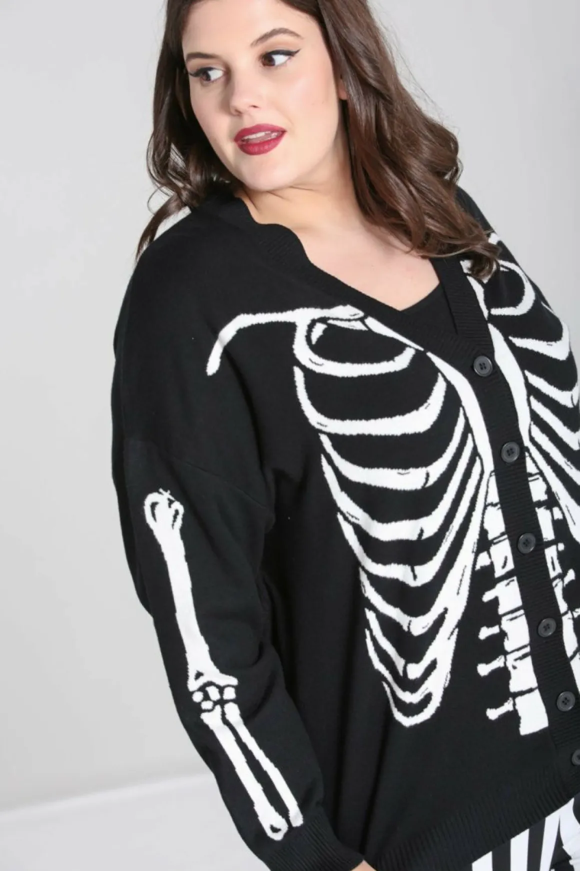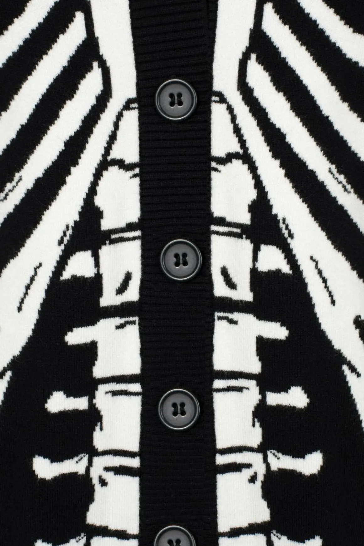 Black Base With White Skeleton Design On Front & Arms Oversized Cardigan Thick Chunky Knit Deep V Neck With Large Button…