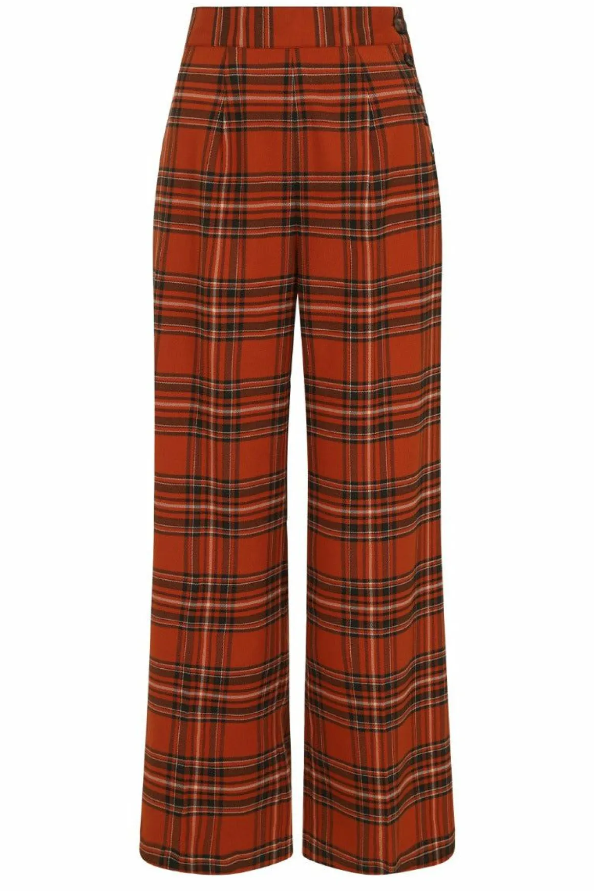 - Wide Leg Full Length Trousers In Orange And Brown Tartan