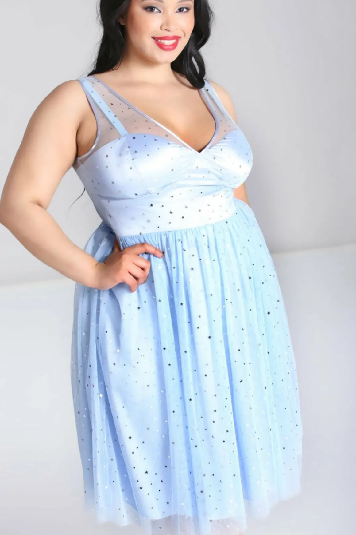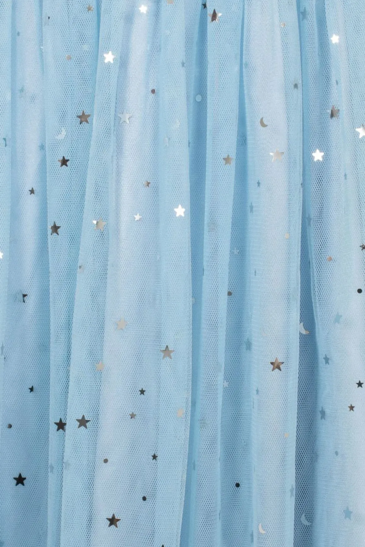 Tulle Dress InblueGold Sparkley Stars & Moons On The Tulle Outer Layer.Dress Is Lined In Black Fabric.Black Lining Attac…