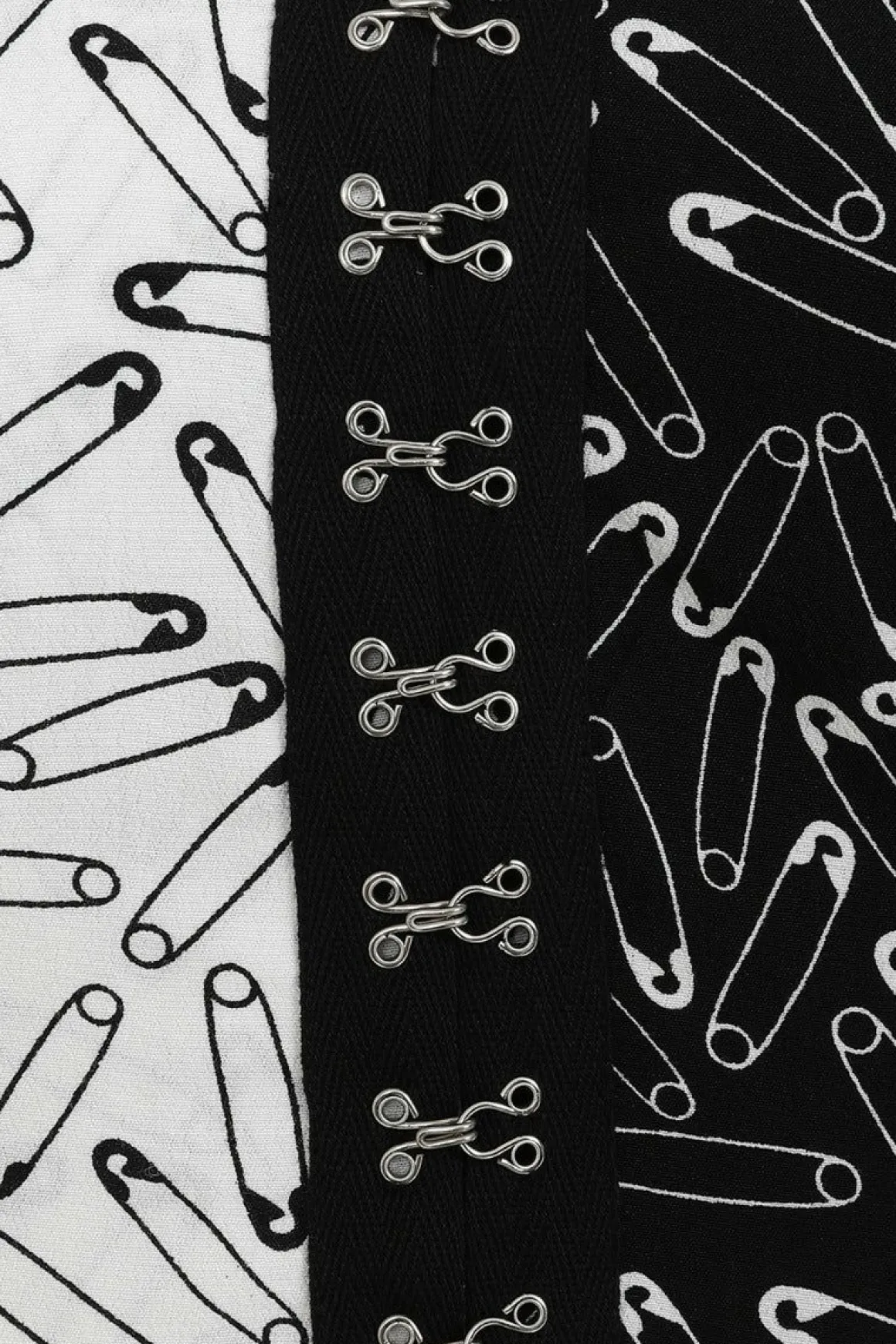 - Half Black & Half White Fabric With Contrasting Safety Pin Graphics